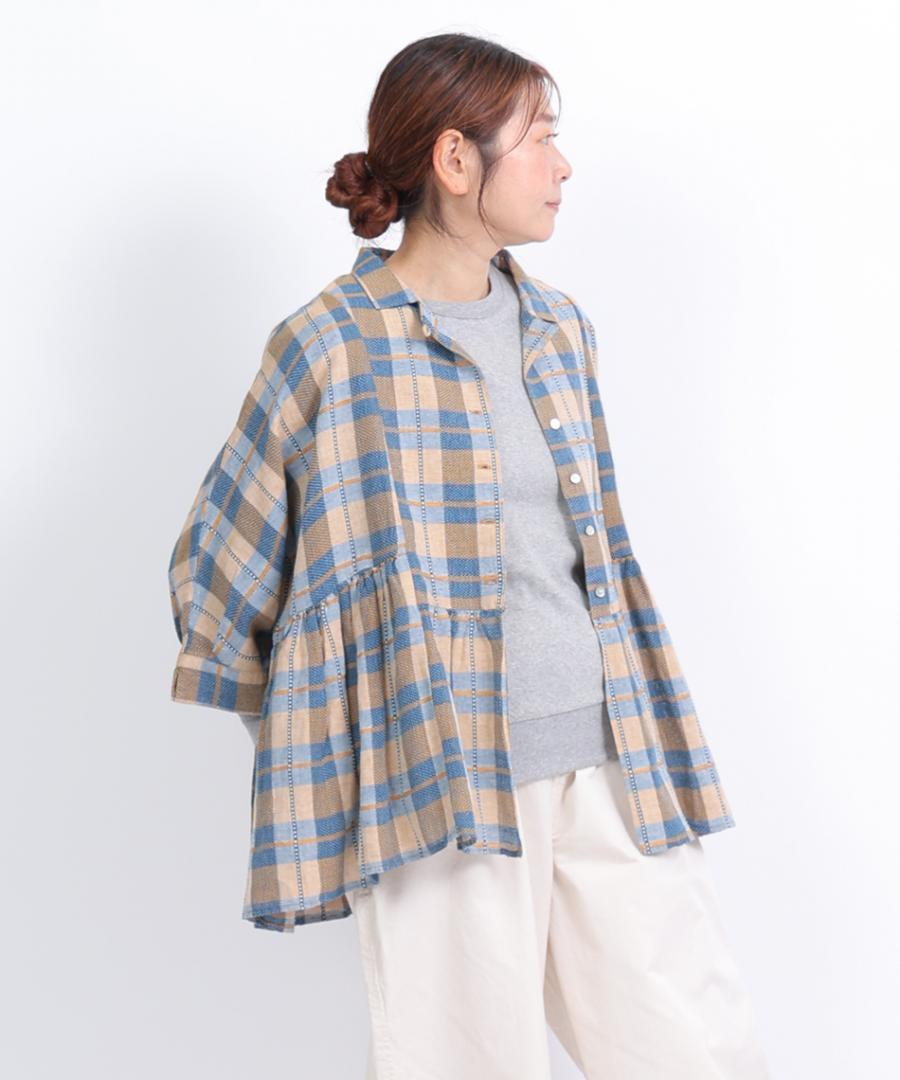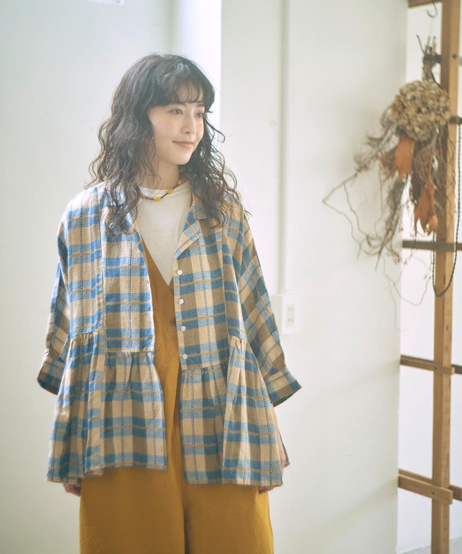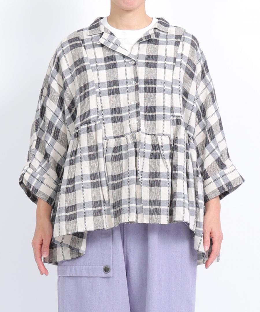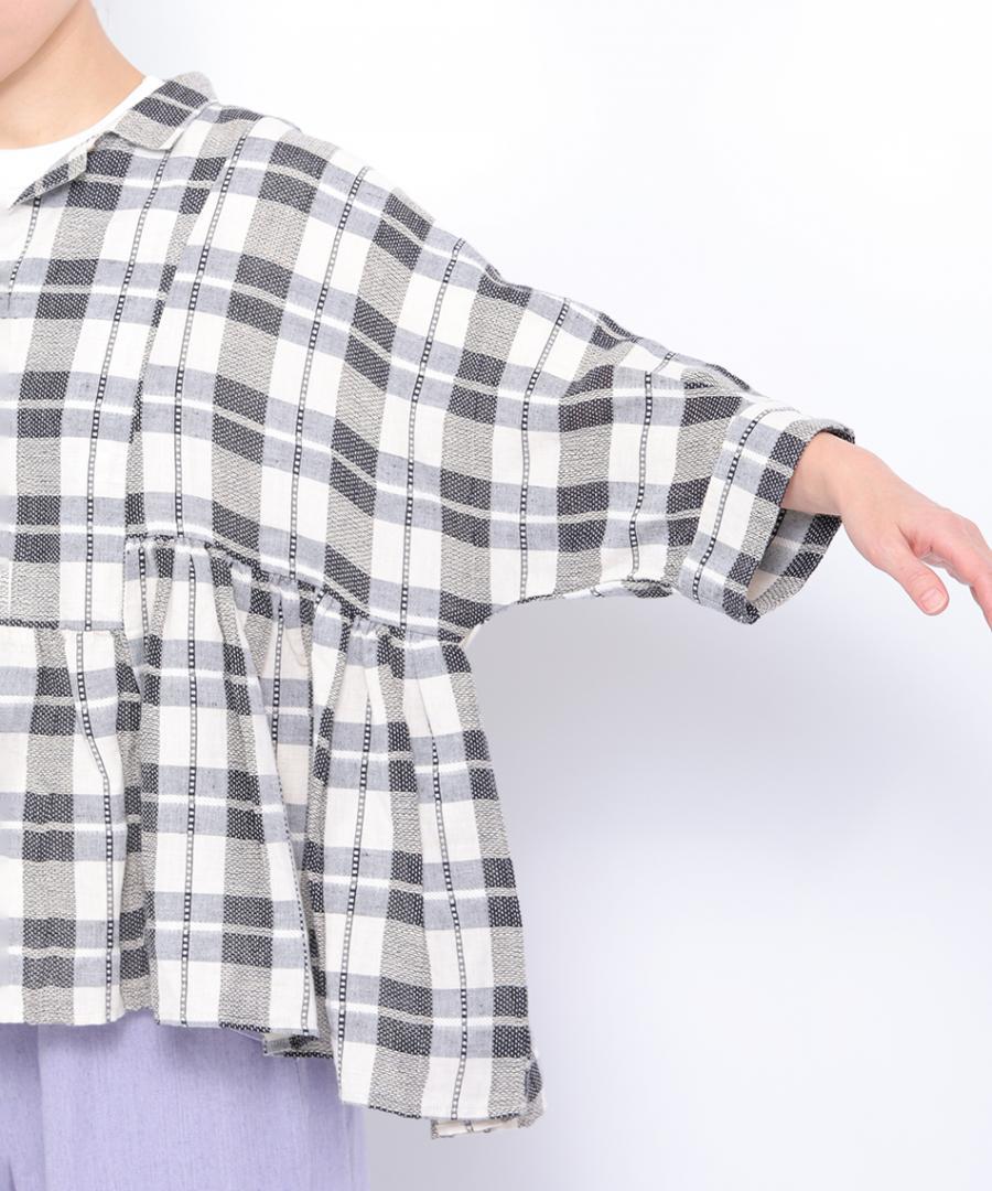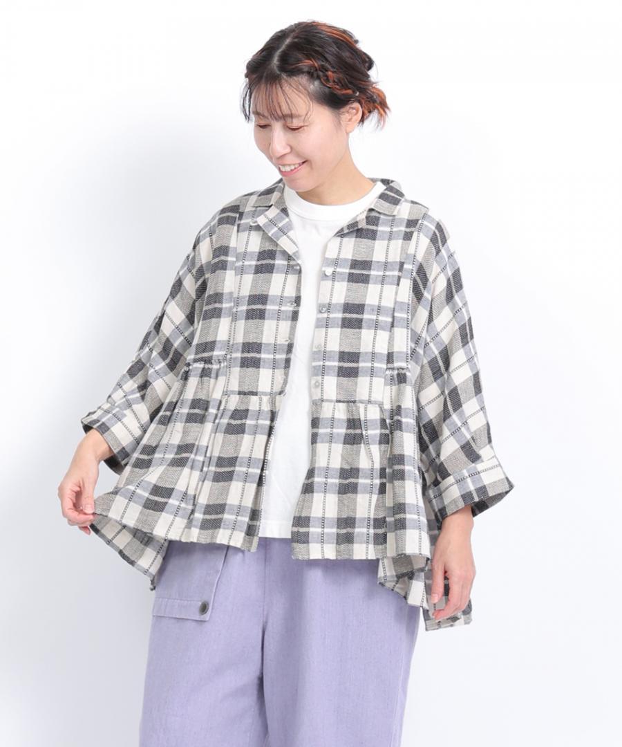 格子織り先染めチェック ブラウス