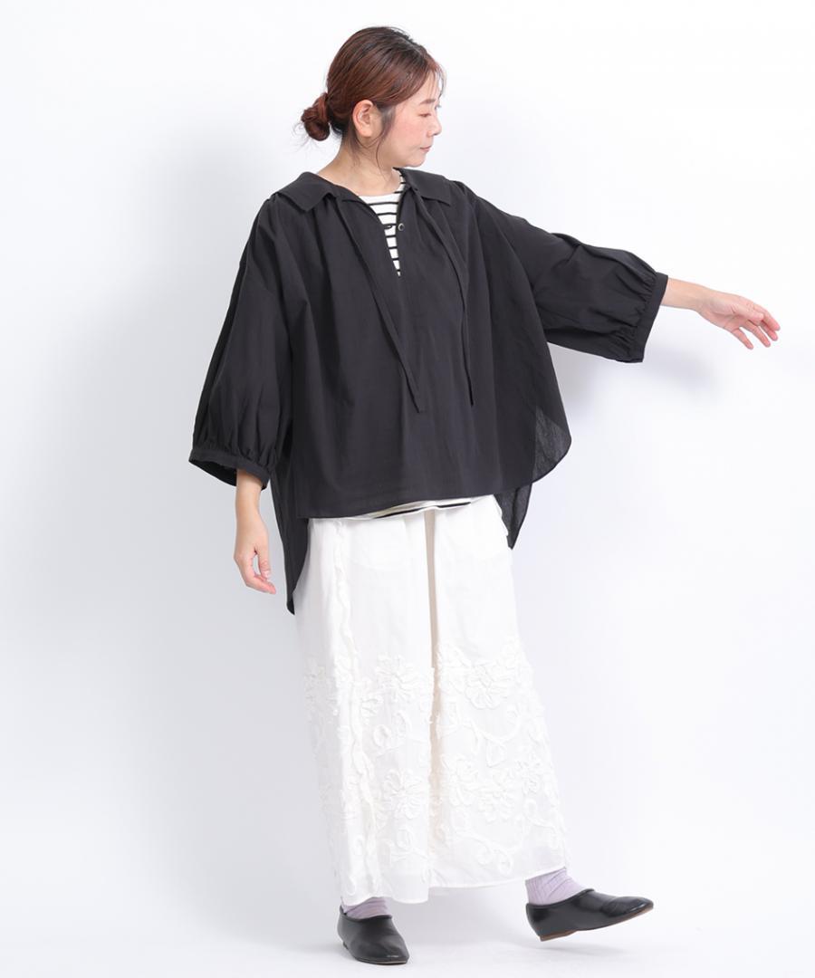 テープ刺繡コットンボイル パンツ