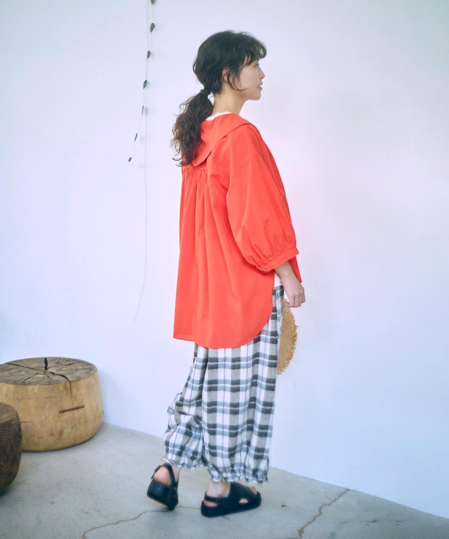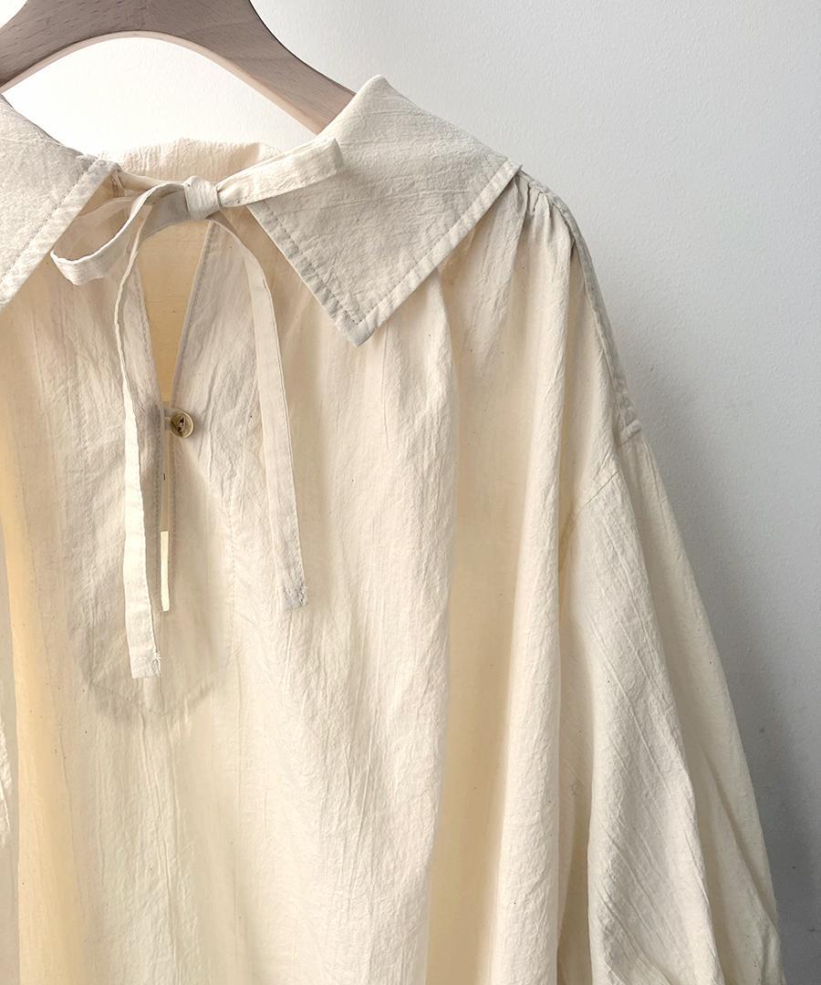 後ろは丸みのあるセーラーカラーデザイン、ぽわんとボリュームを持たせた袖も可愛いポイントです。