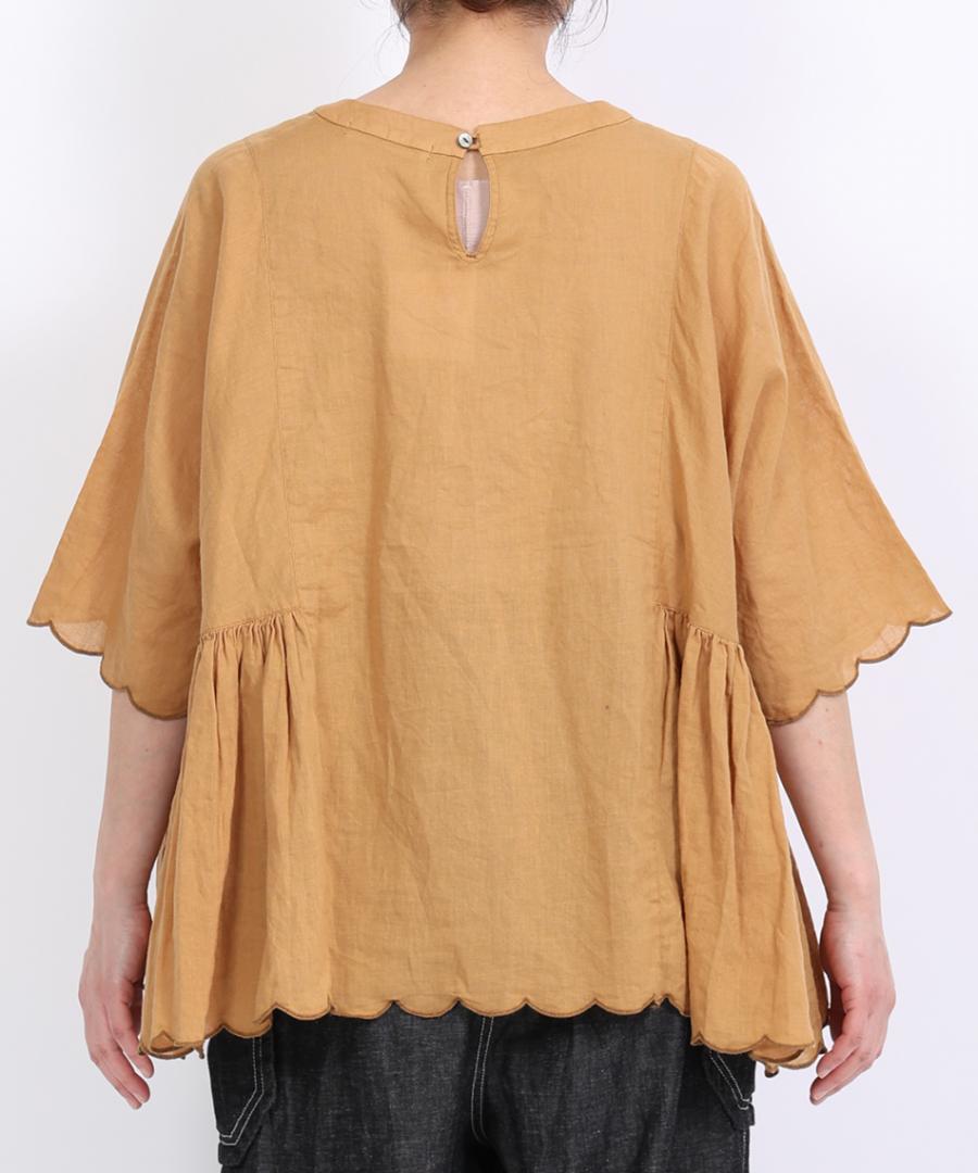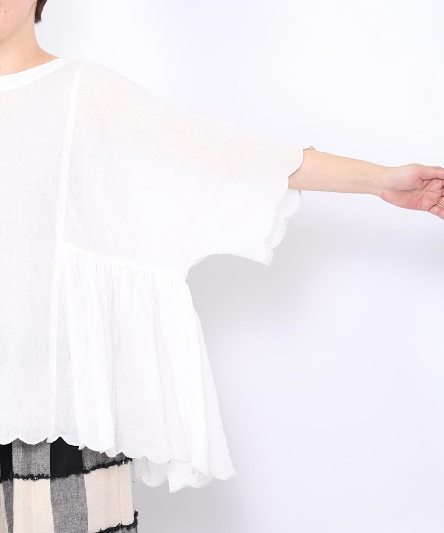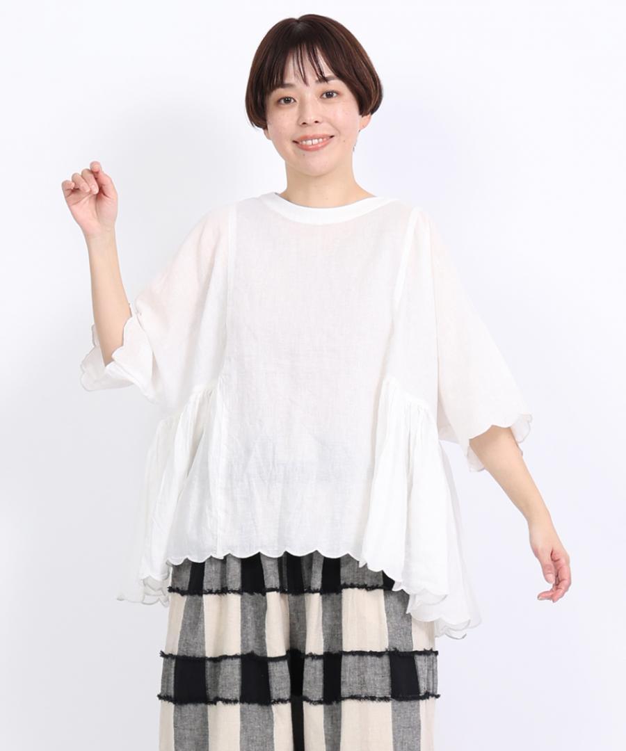 スカラップ刺繍コットンリネンボイル 5分袖プルオーバー