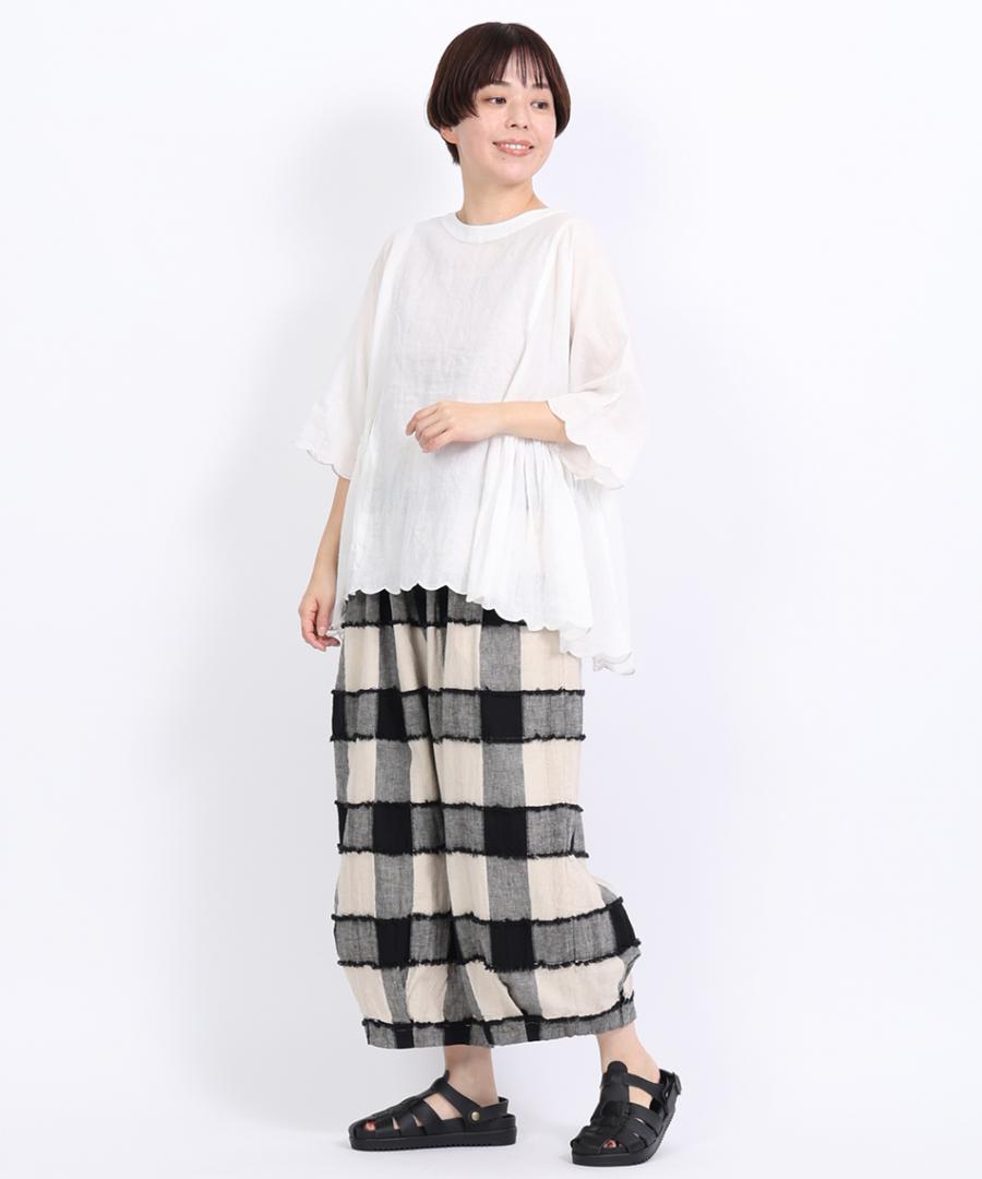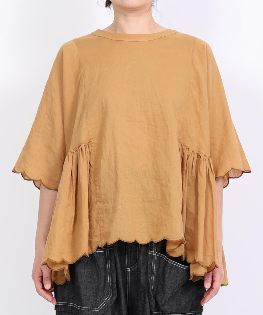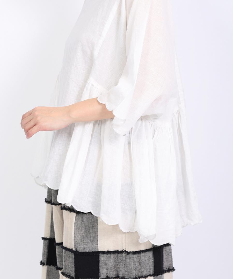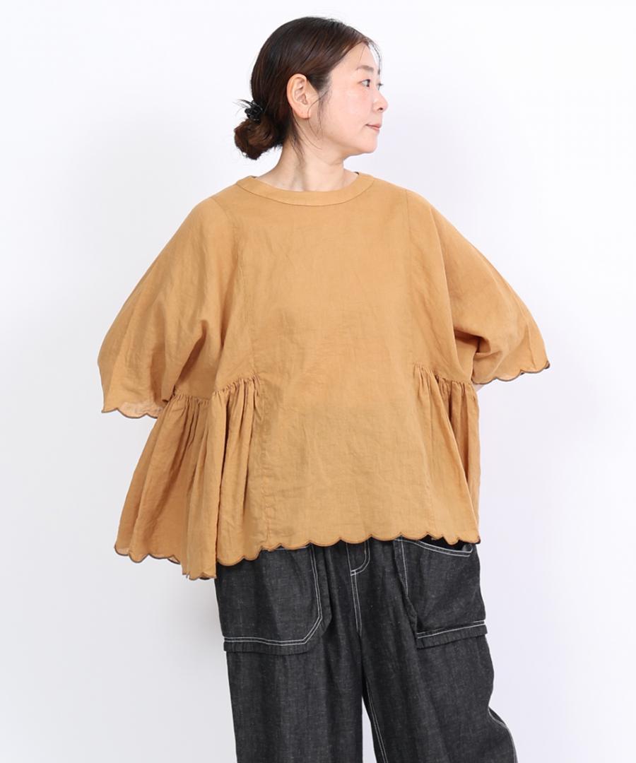 スカラップ刺繍コットンリネンボイル 5分袖プルオーバー