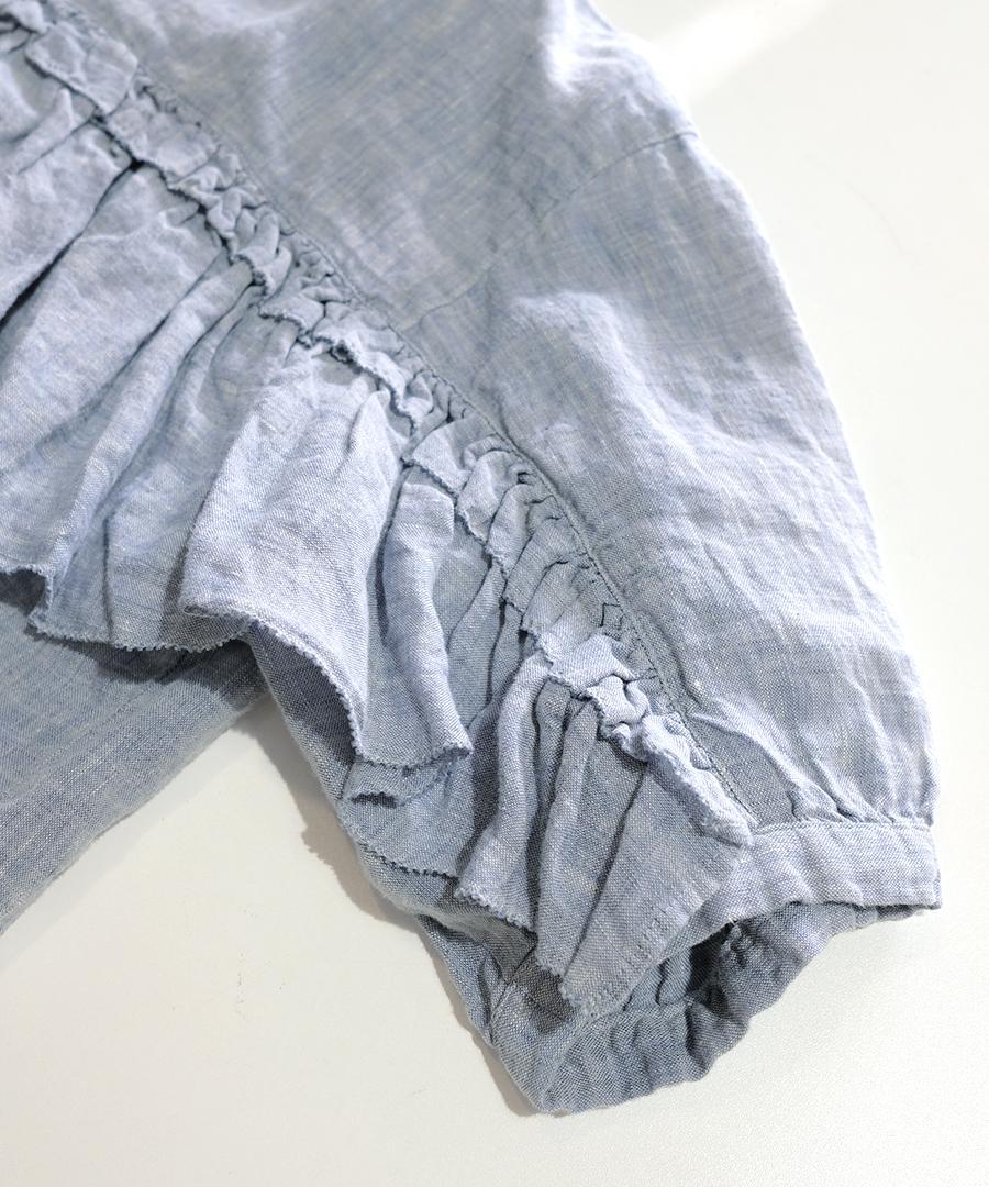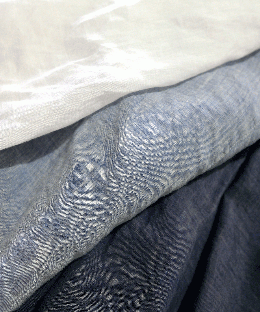 薄手のリネンシャンブレー生地に製品加工を施すことで、着心地の良さと独特な風合いに仕上がっています。