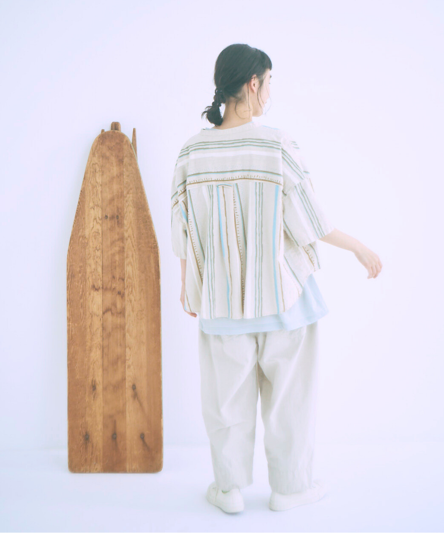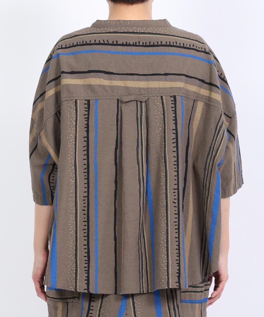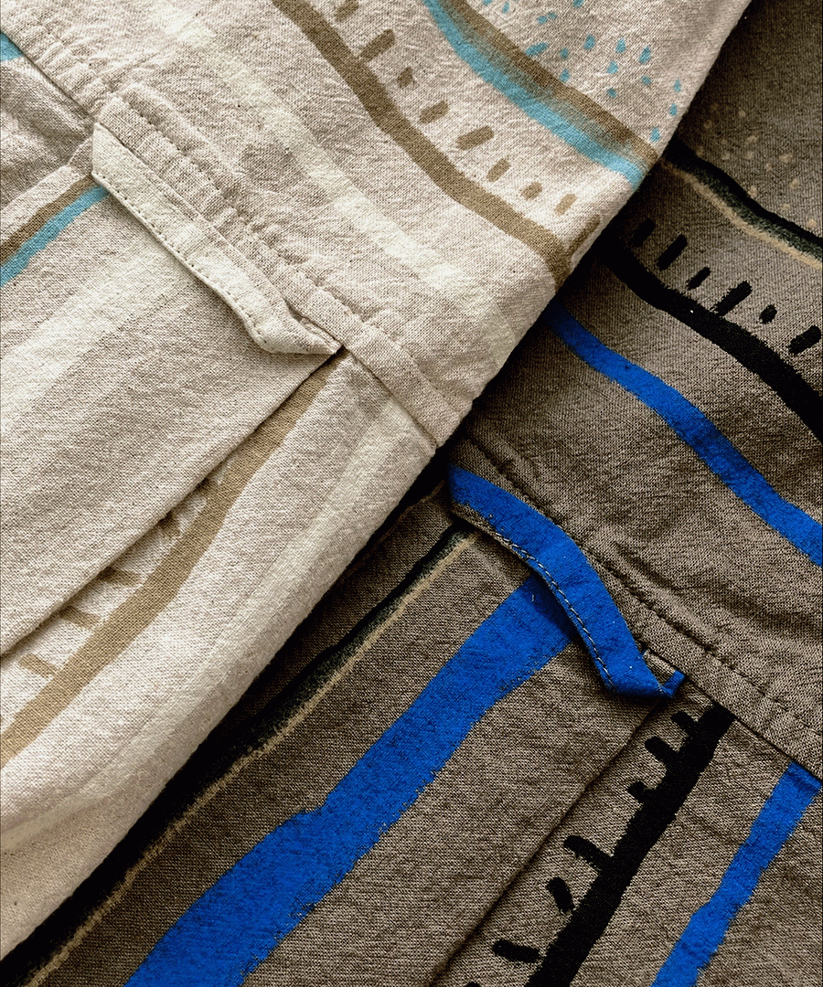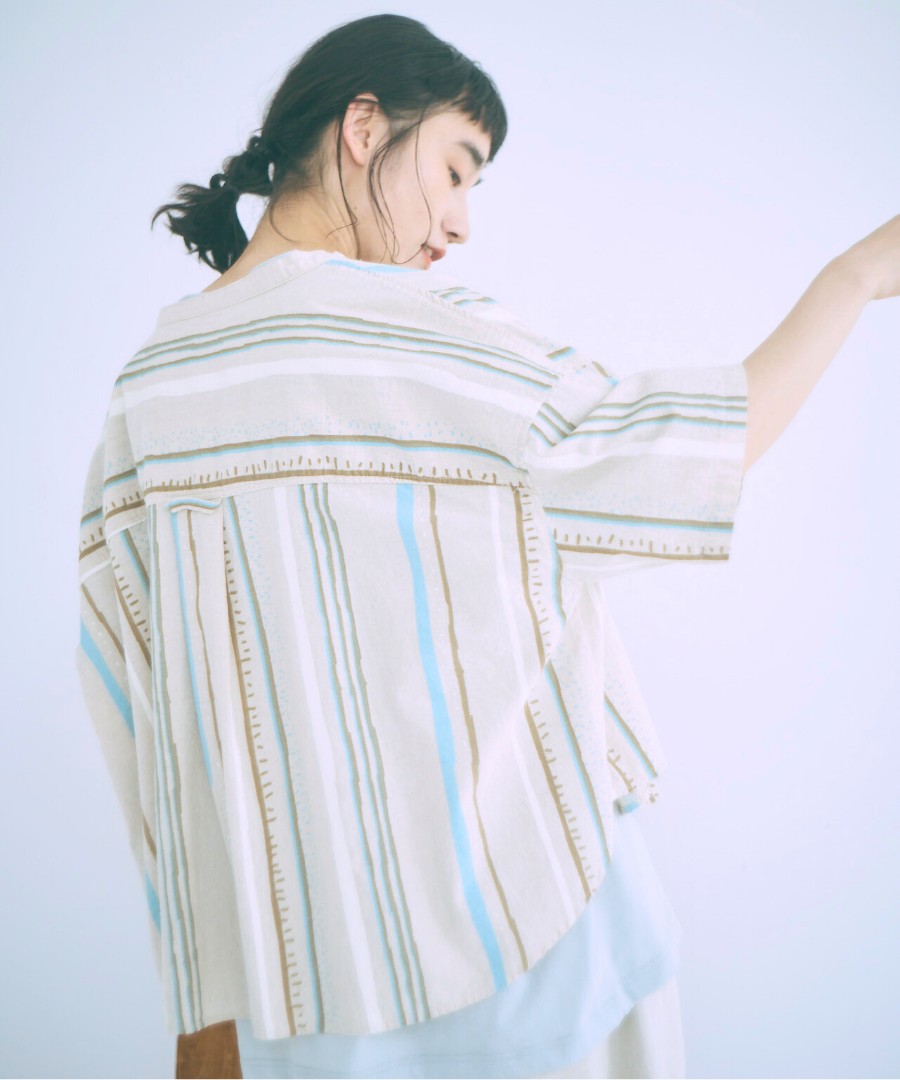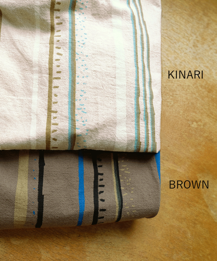 手書き風のストライプ柄プリントを施すことで、独特の風合いと個性的な雰囲気に仕上がりました。