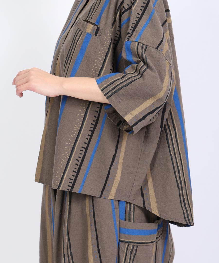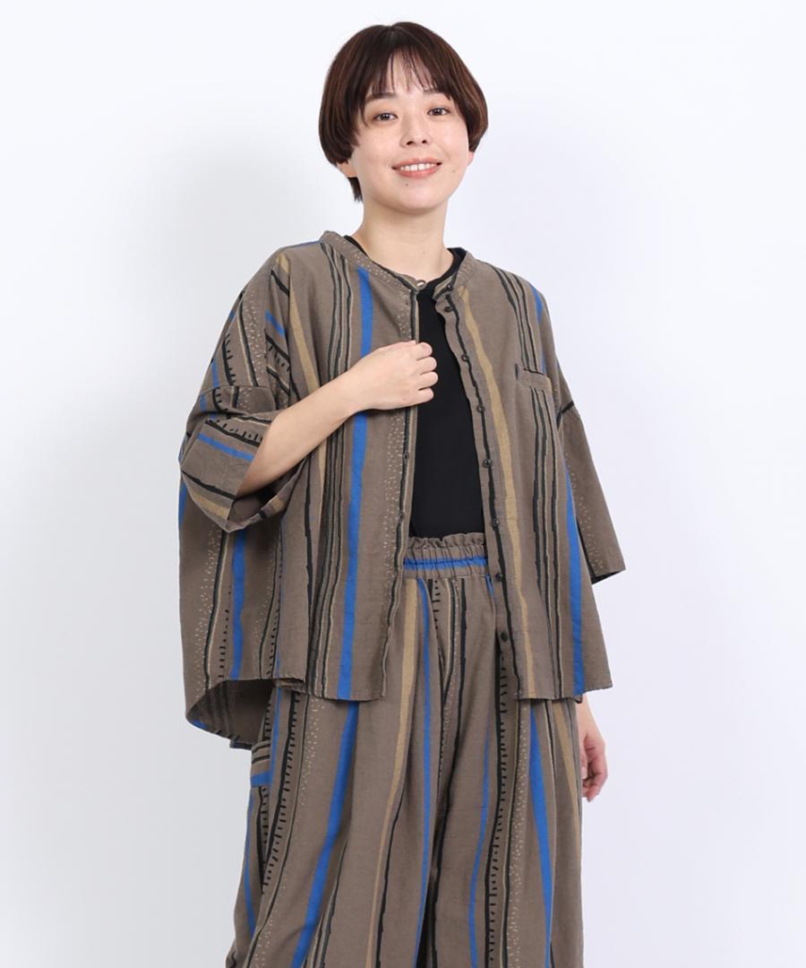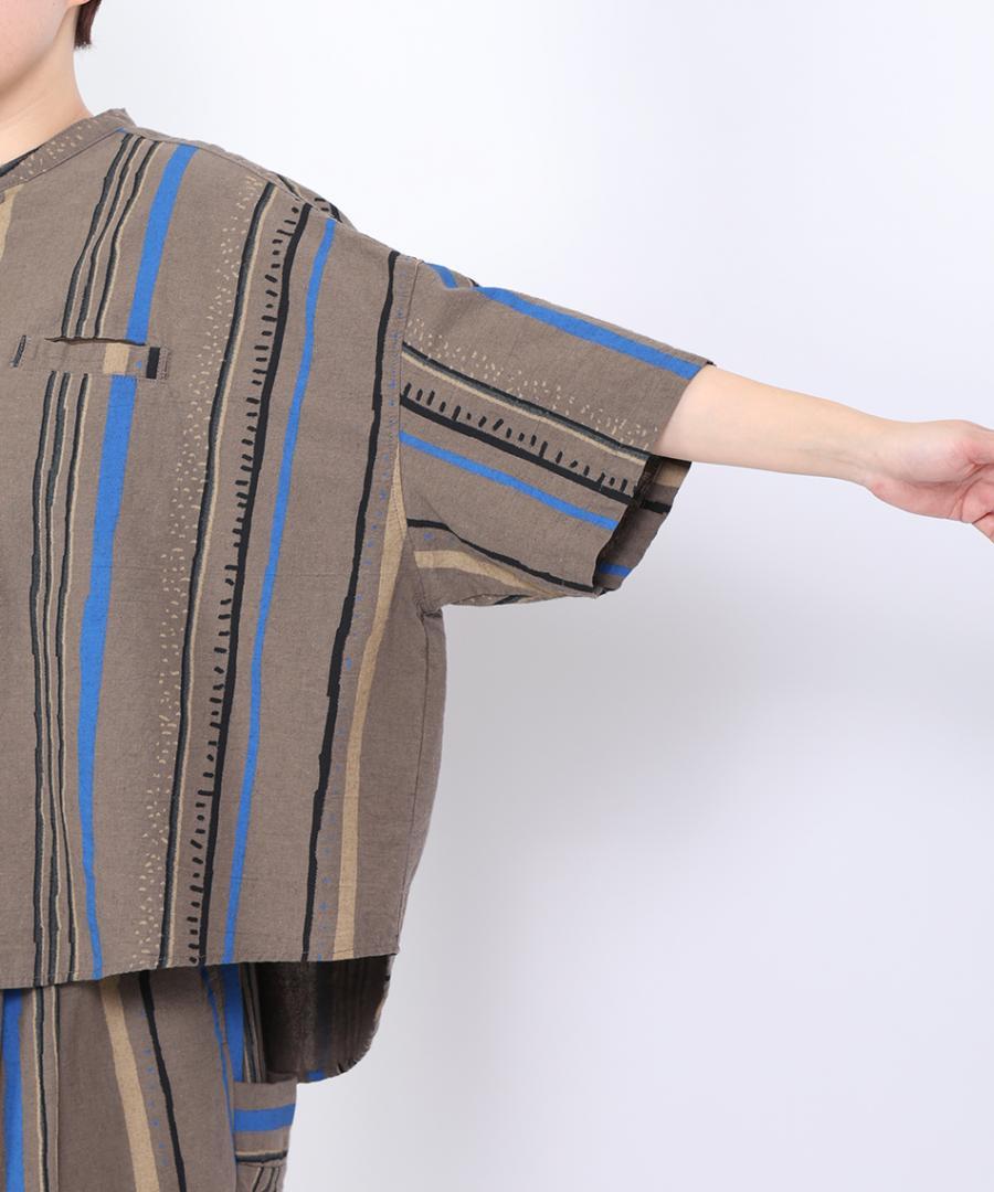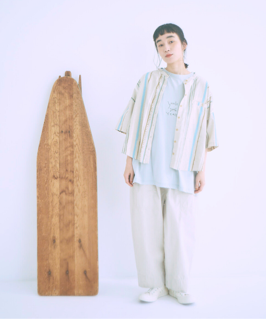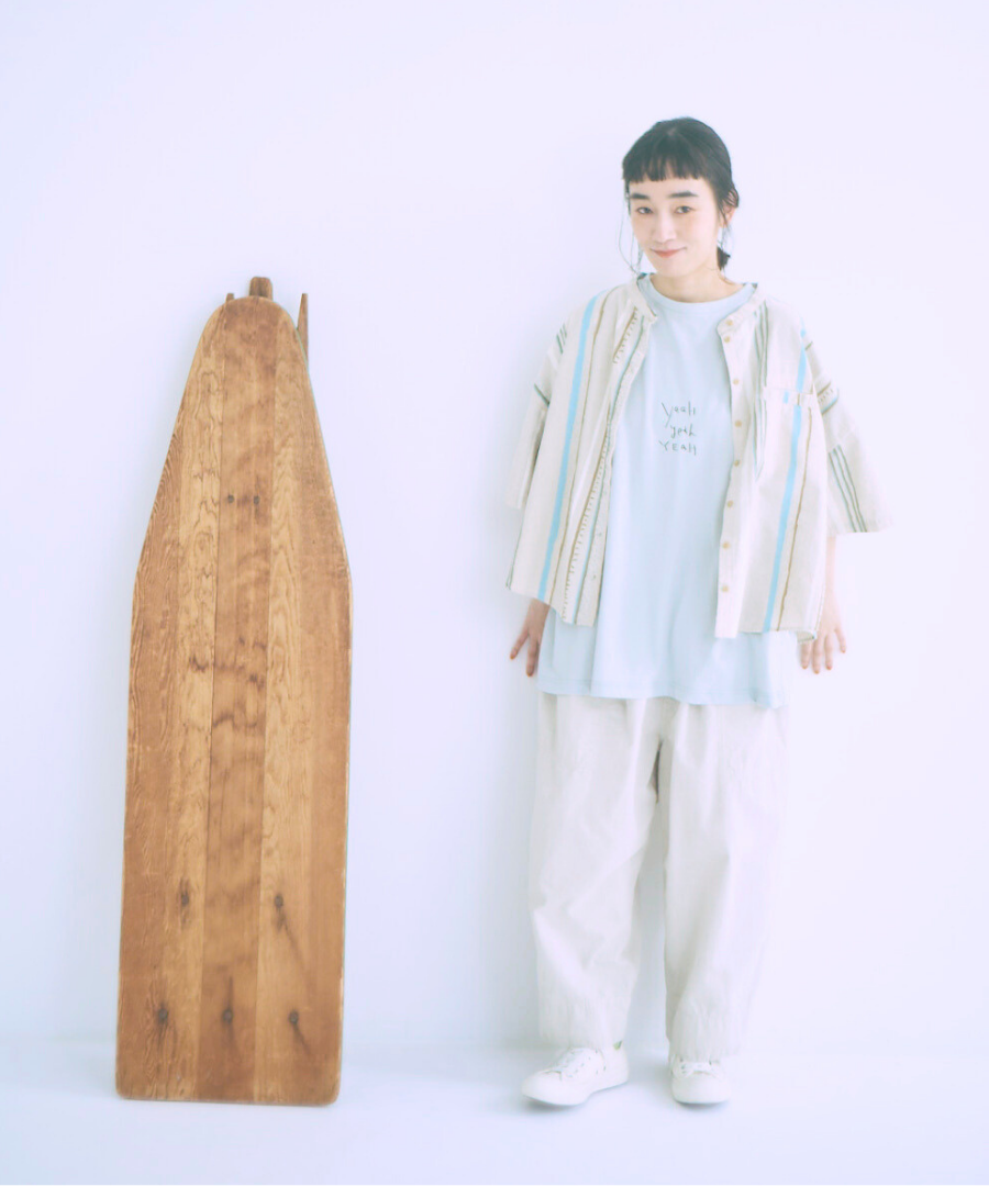 手書き風のストライプ柄プリントを施すことで、独特の風合いと個性的な雰囲気に仕上がりました。