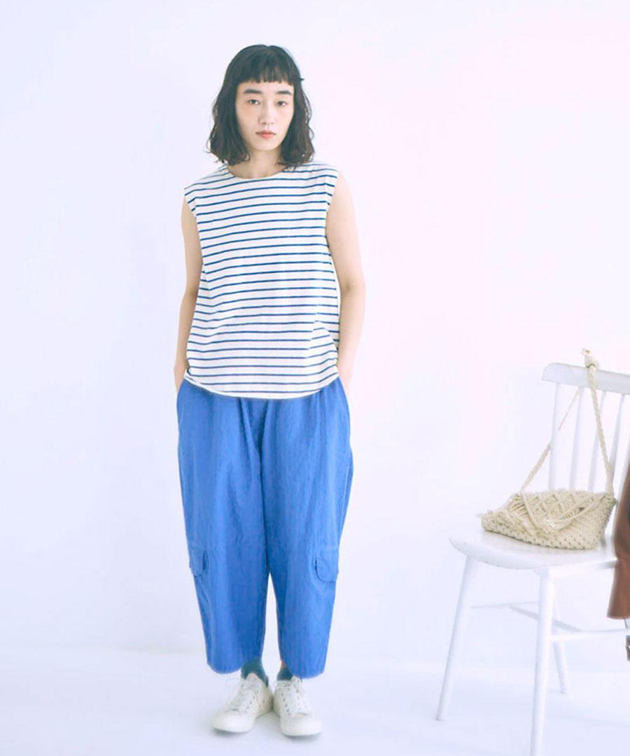スープレコットンボーダー天竺 裾ラウンドタンクトップ