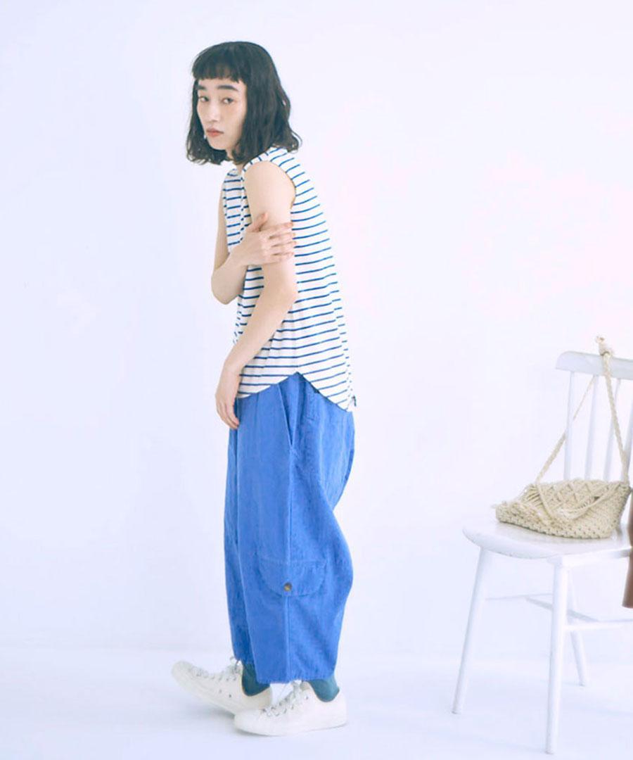 ティンカーパンツの特徴的なシルエットはそのままに、着丈を少し長くし、カーゴ要素を加えました。