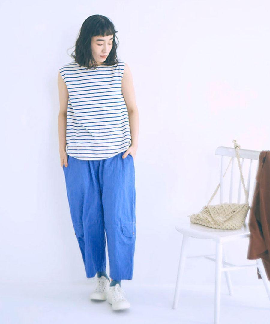 体のラインを拾わないゆったりとしたシルエットでリラックス感がありながらも、裾に向かって緩やかに細くなるテーパードデザインが、すっきりとした印象を与えます。