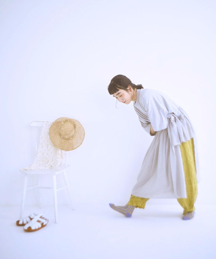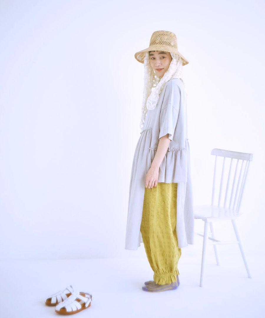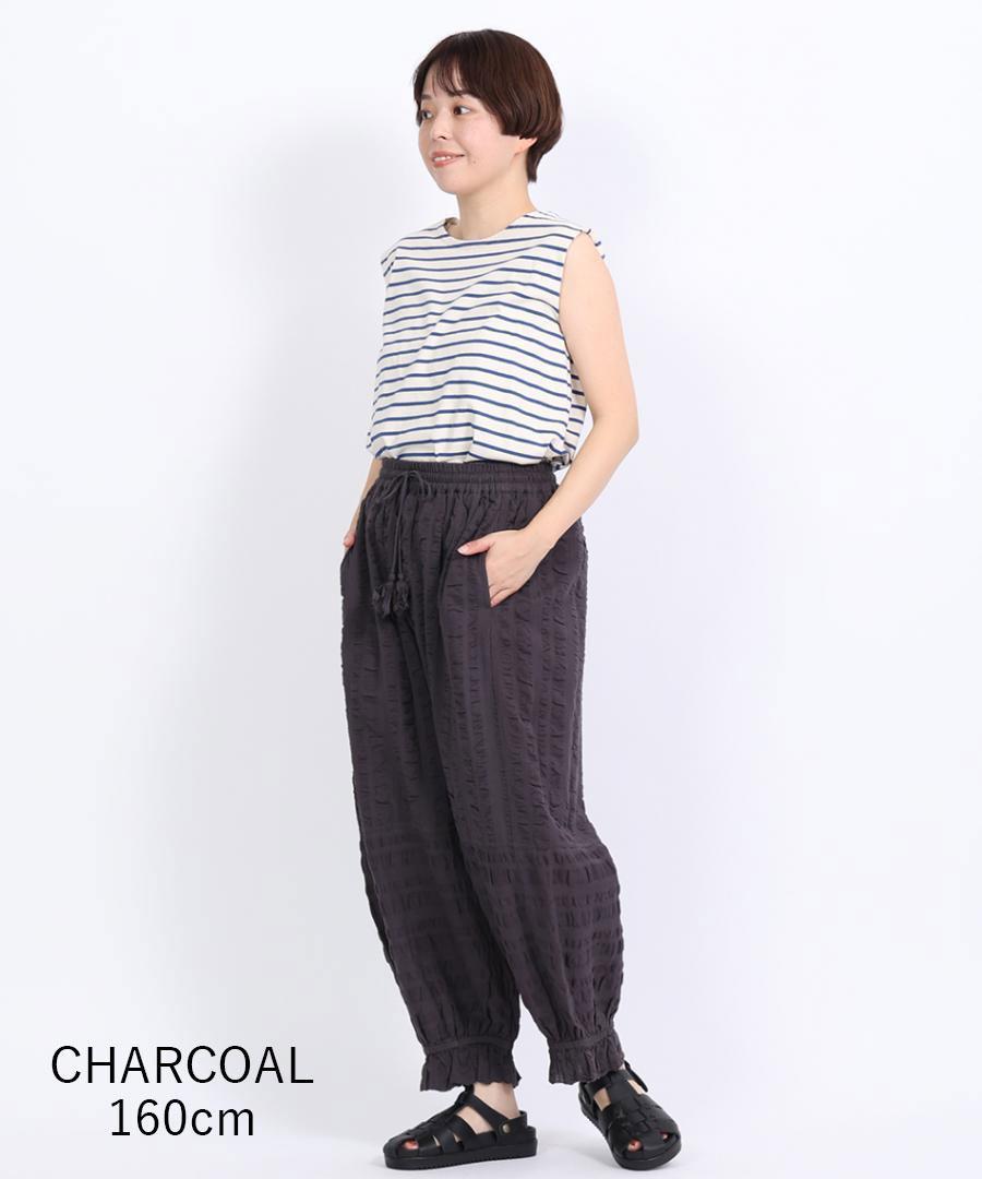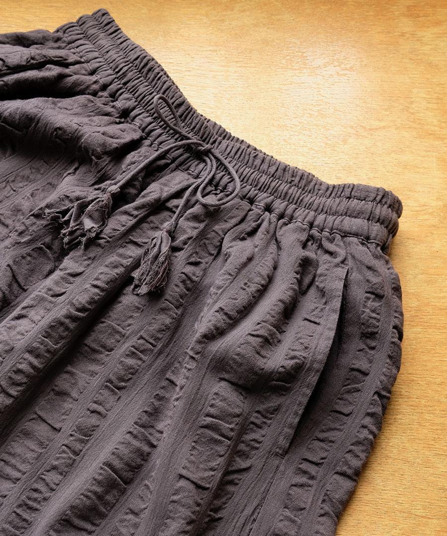 ウェストはゴム仕様でゆったりとしたリラックス感のあるシルエット。