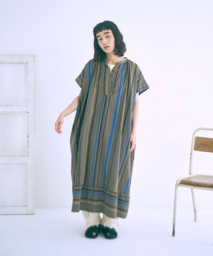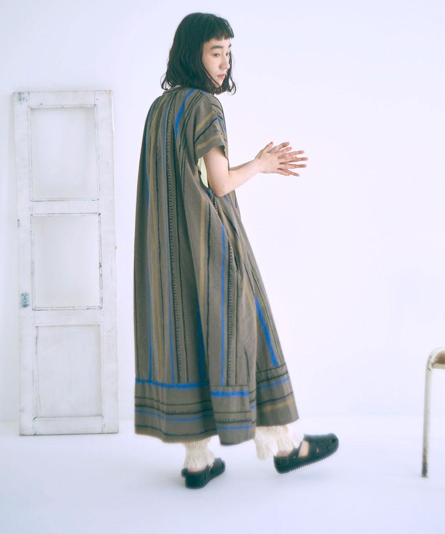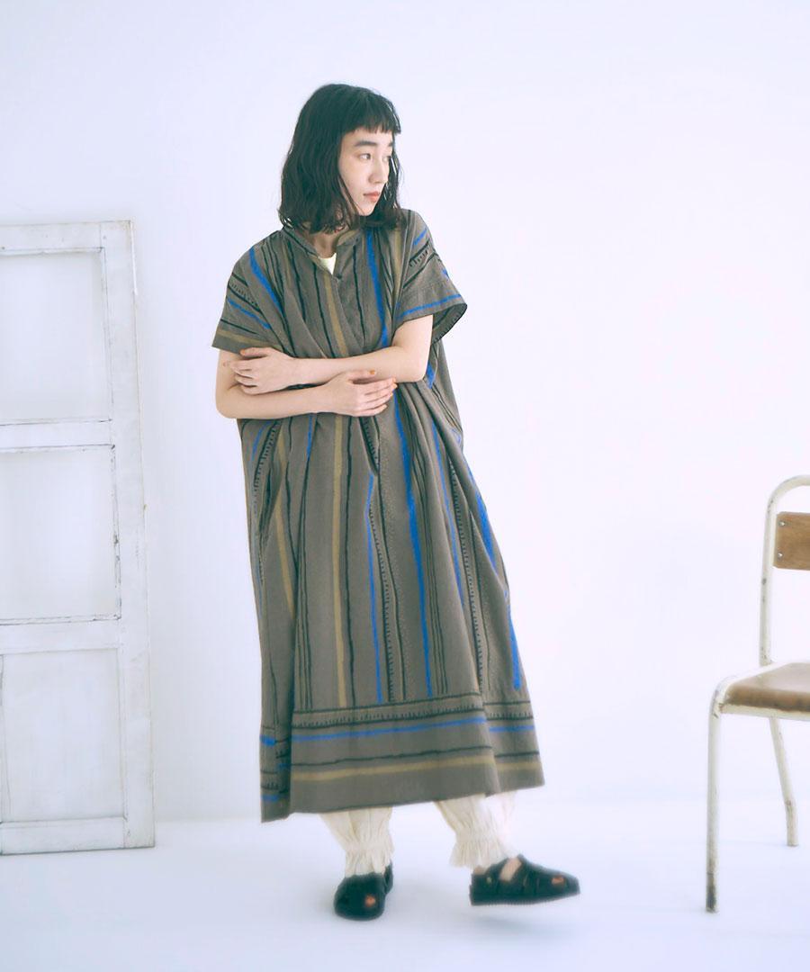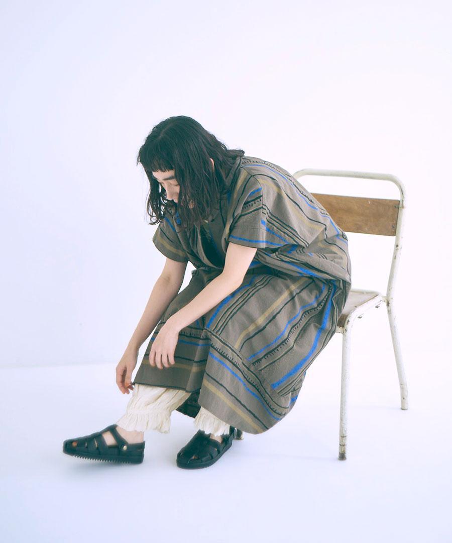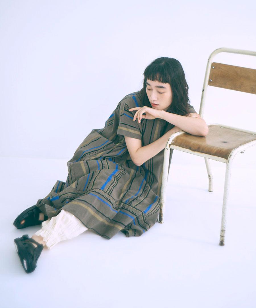 コットンウェービーボイル×コットン天竺 アシメワンピース