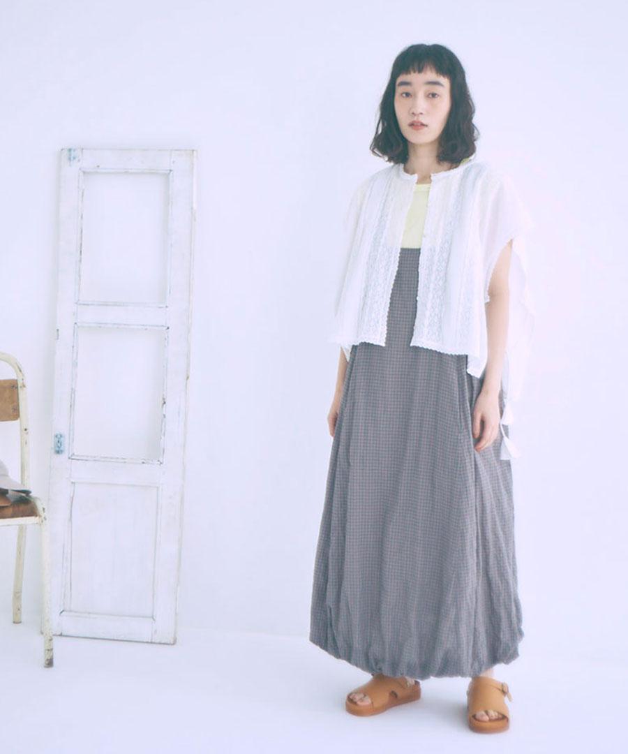 シャーリングチェック バルーンキャミワンピース