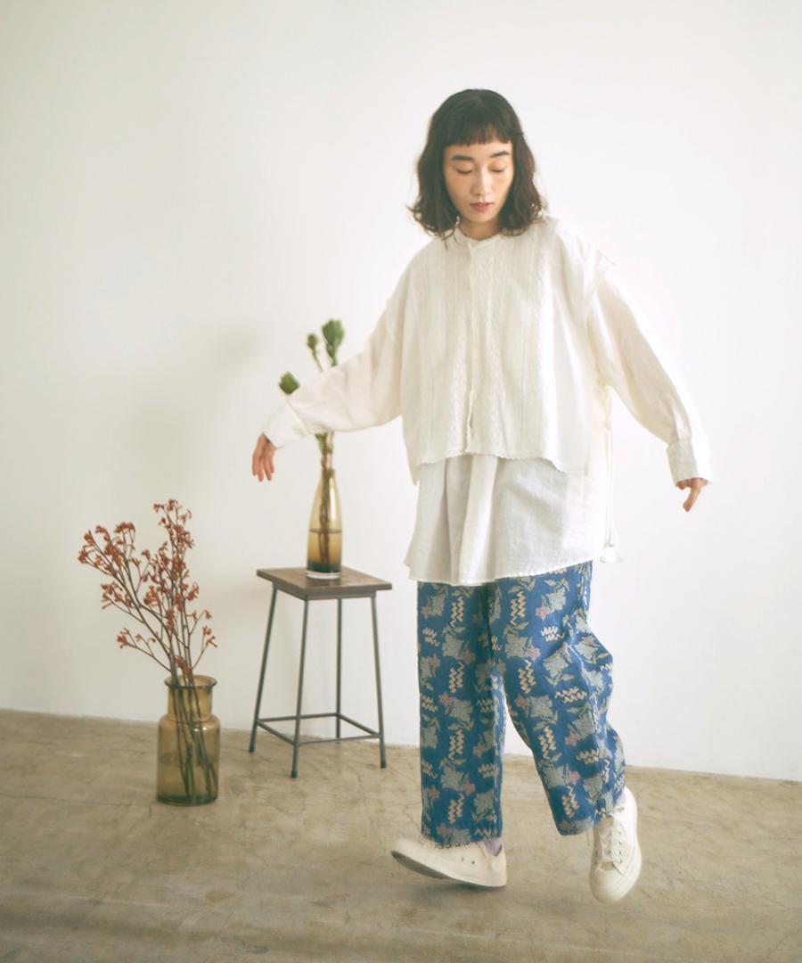 インドの柔らかなリネン混ボイル生地は軽やかで柔らかな肌触りが心地よく、通気性にも優れているため、暑い夏でも快適に着用いただけます。