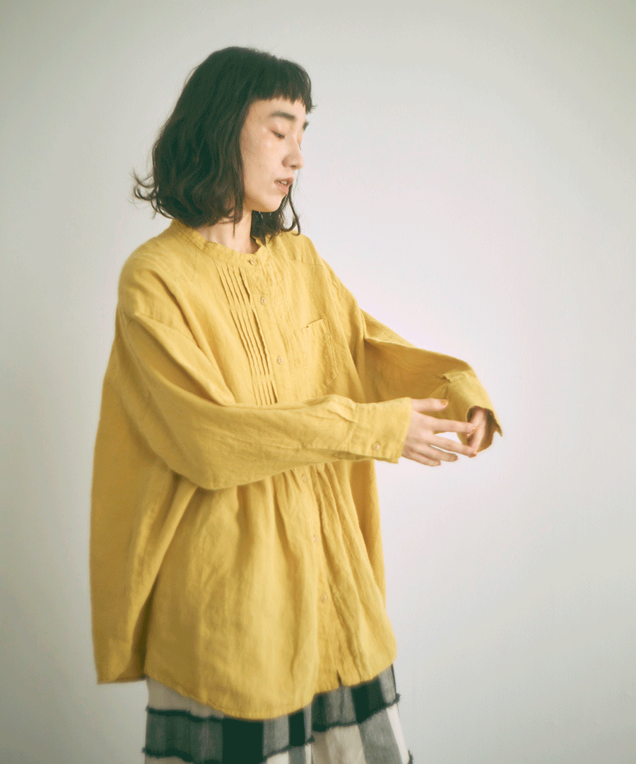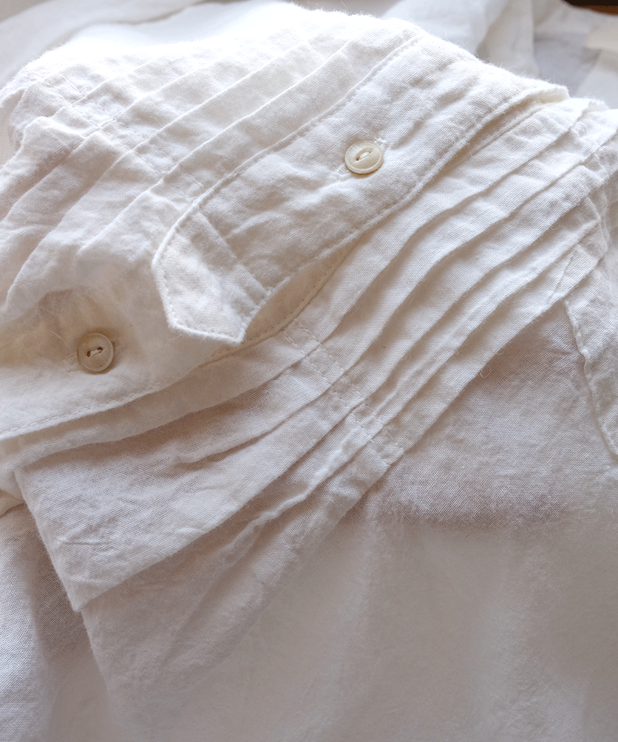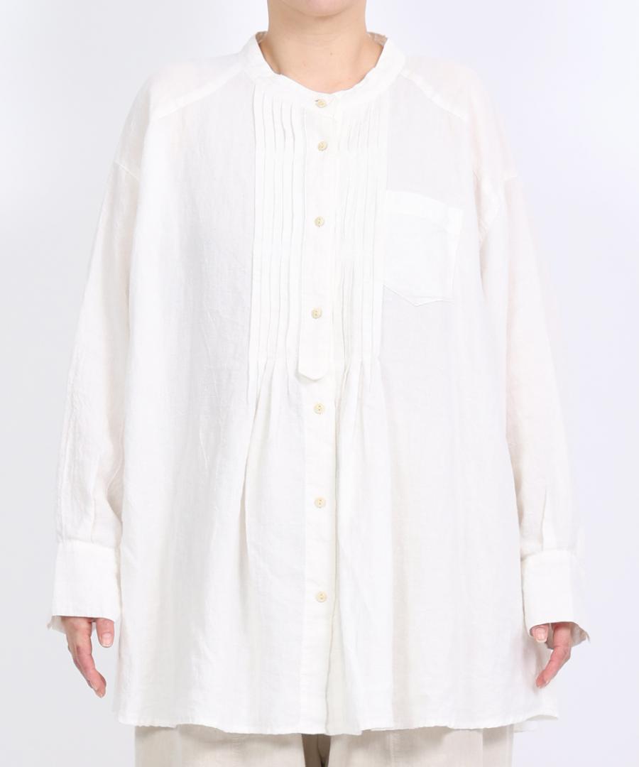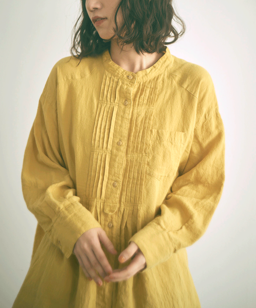 ナチュラルな風合いと、クラシカルなピンタックが魅力のチュニックシャツ。
