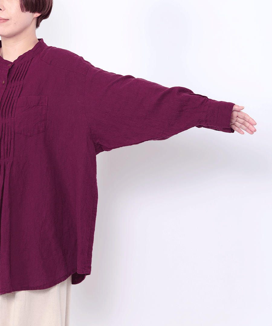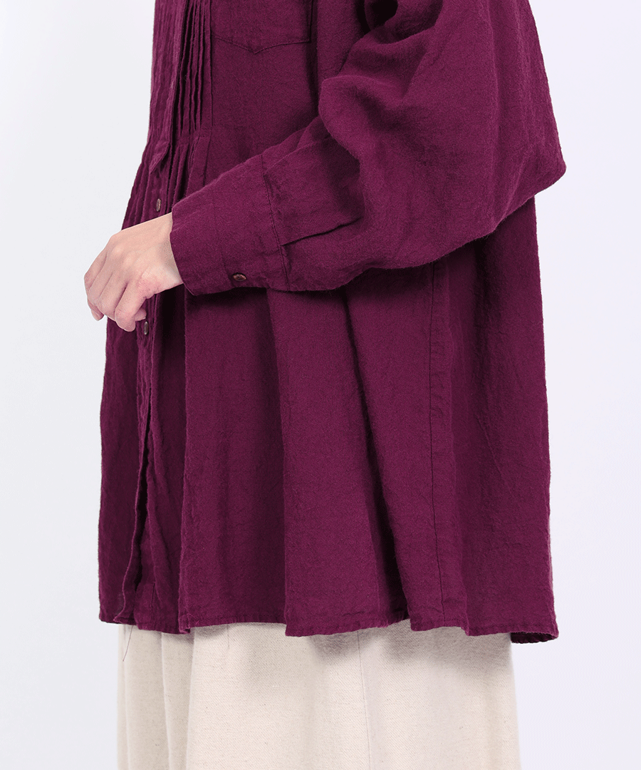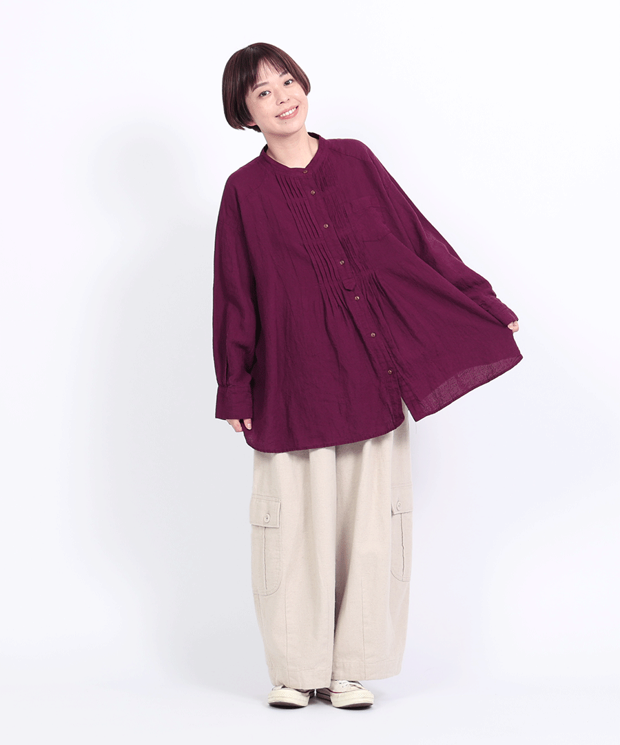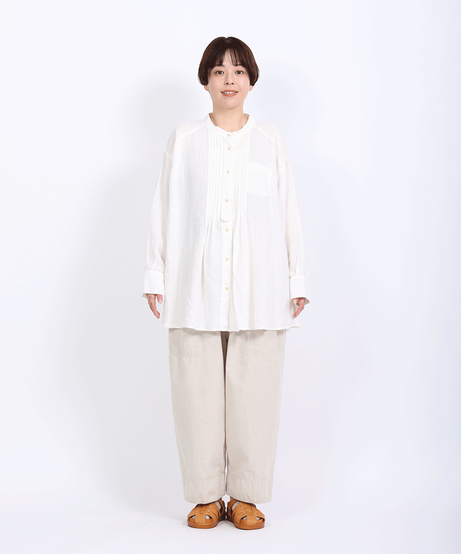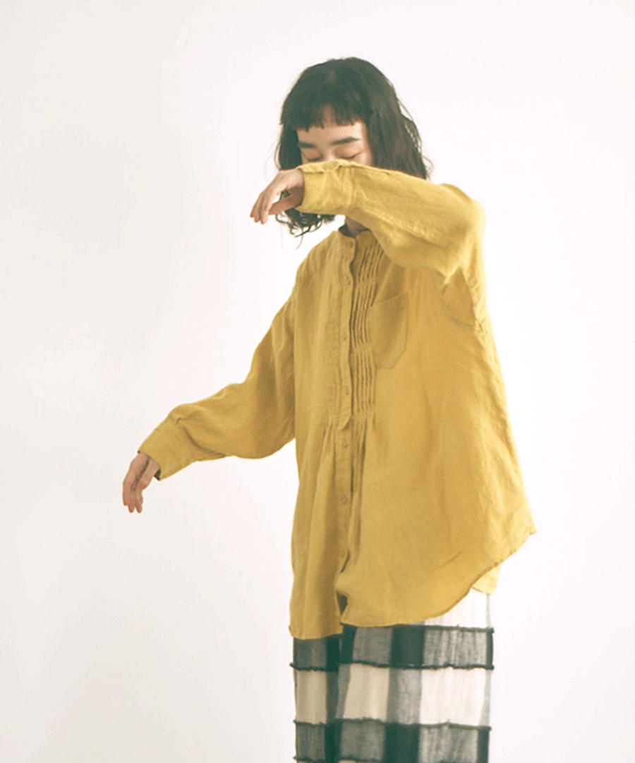 ナチュラルな風合いと、クラシカルなピンタックが魅力のチュニックシャツ。