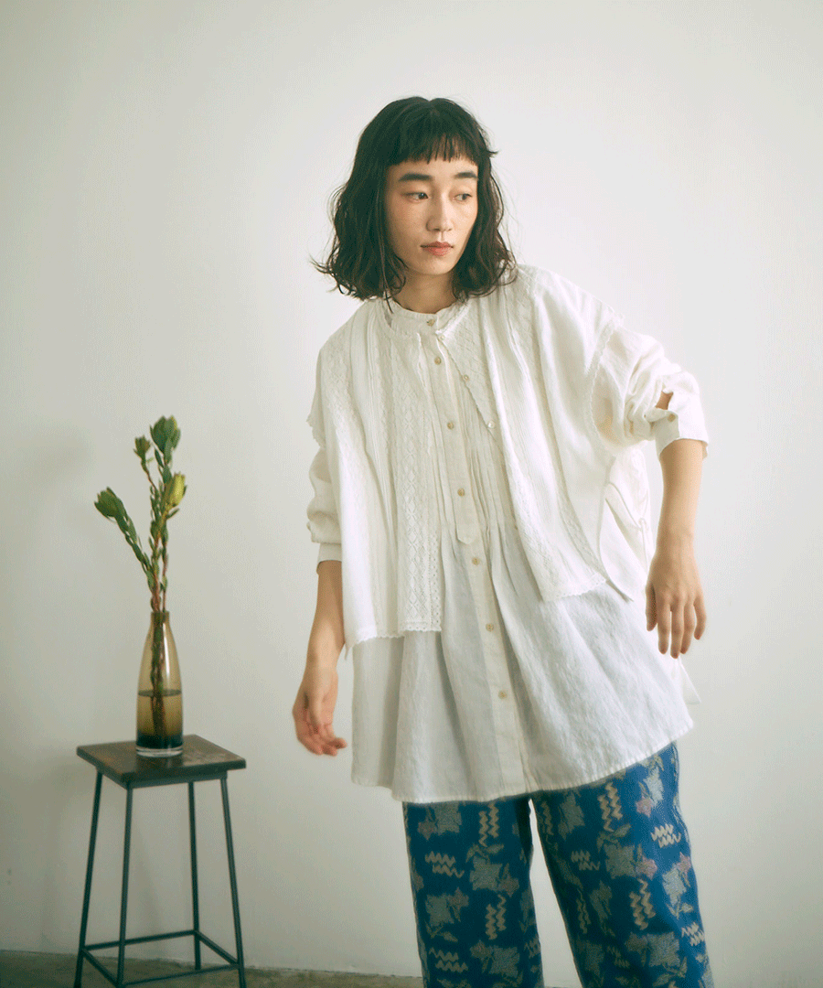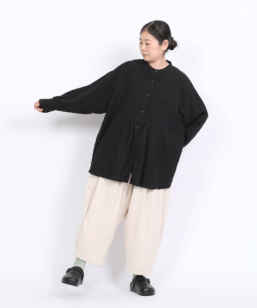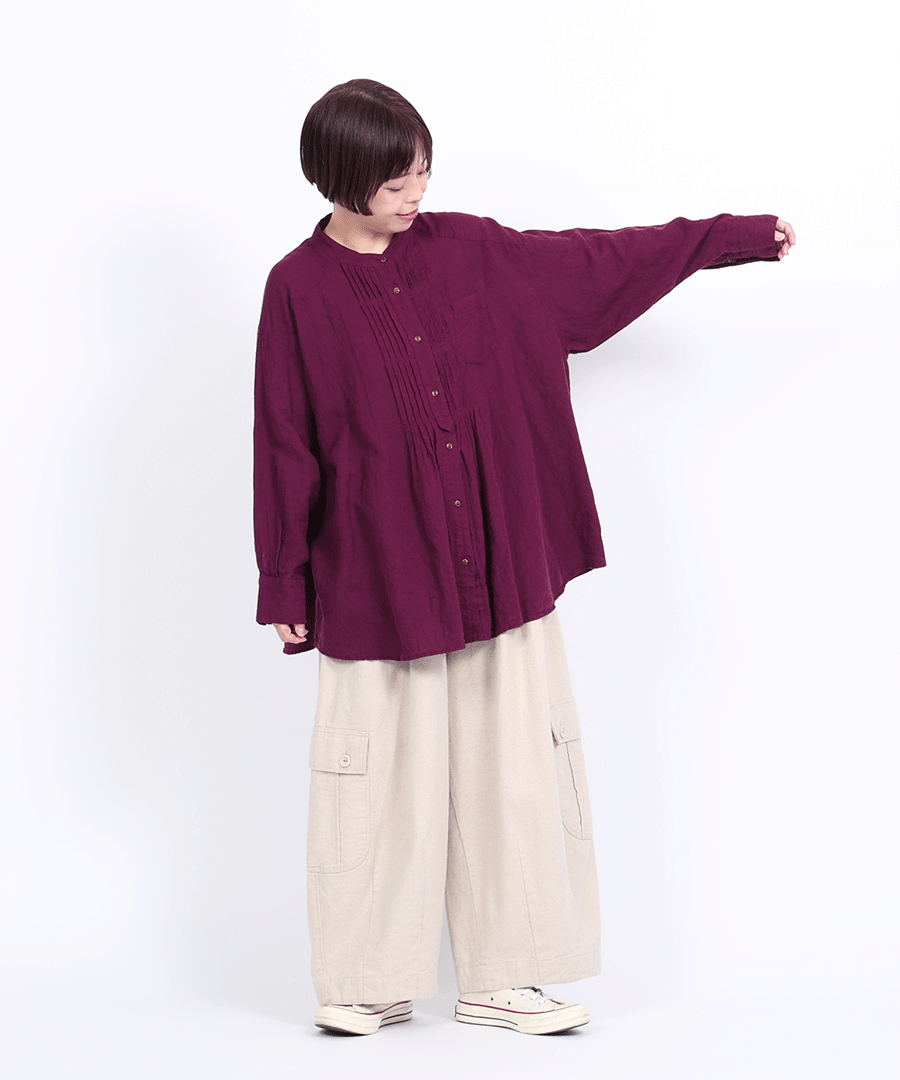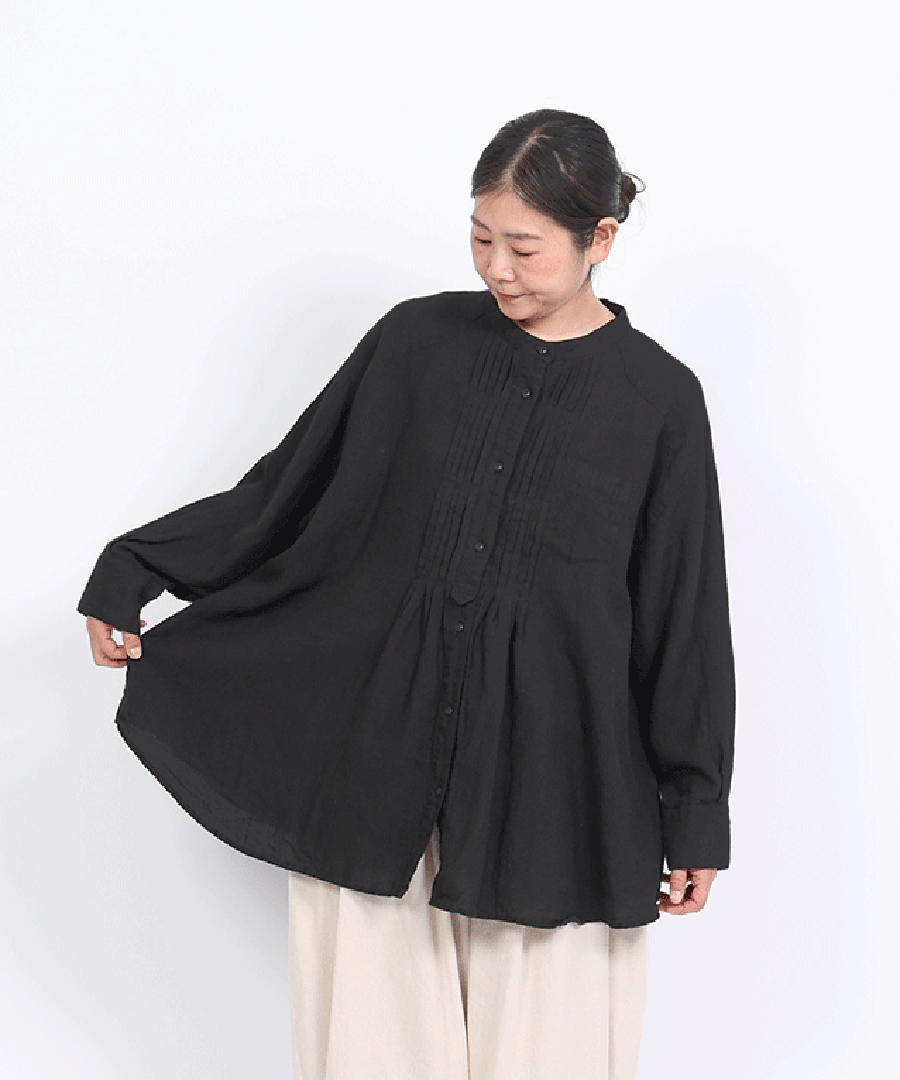 ナチュラルな風合いと、クラシカルなピンタックが魅力のチュニックシャツ。