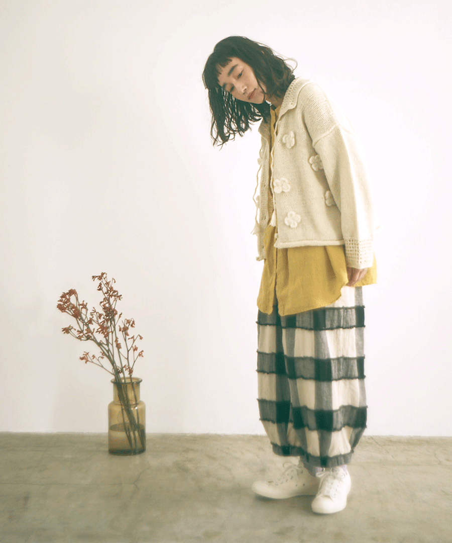 ブロックチェックカットジャガード バルーンパンツ