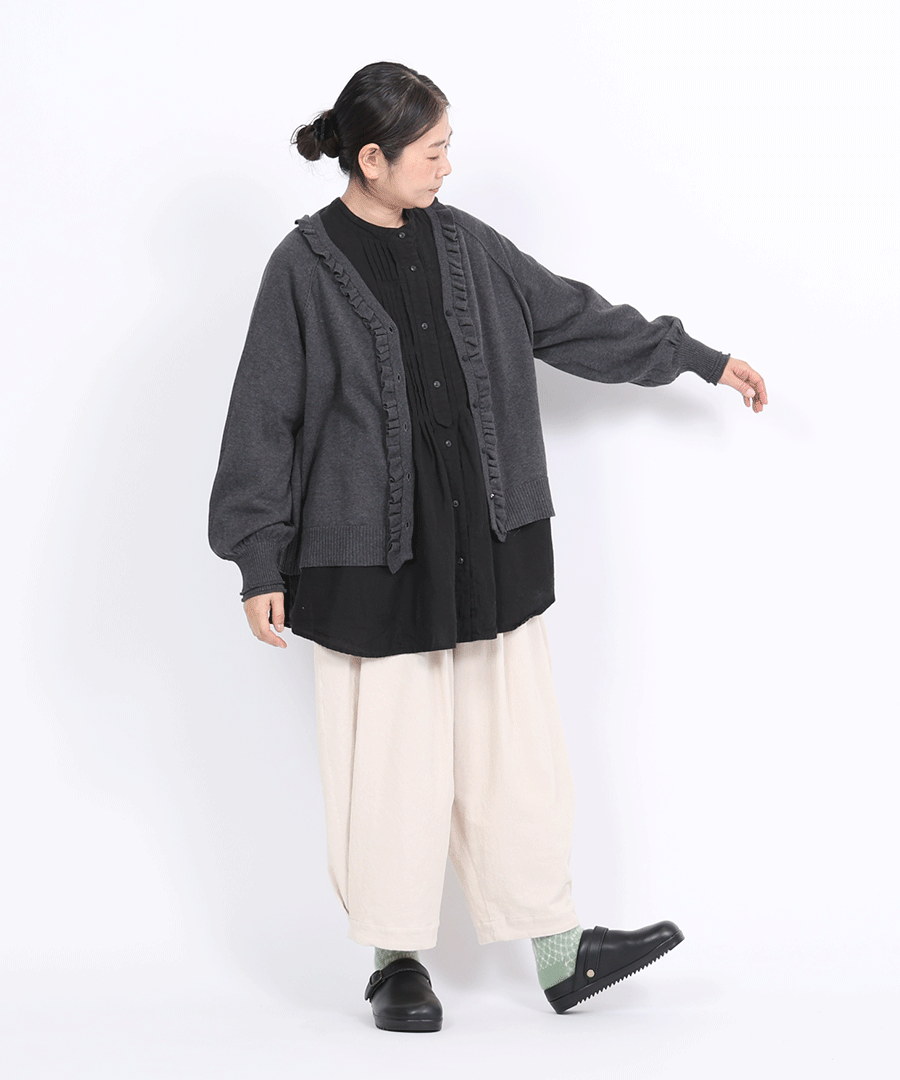ランダムリブニット フリルカーディガン