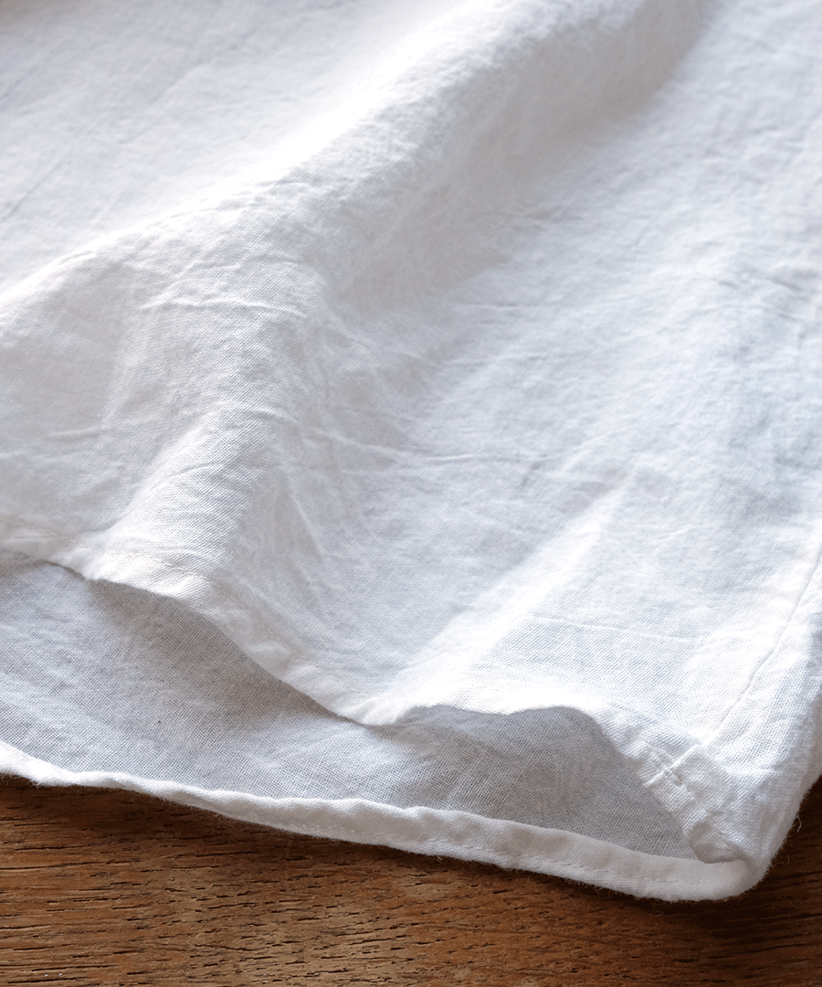 洗いをかけたような自然なシワ感や、素材本来の凹凸が、着こなしに豊かな表情を与えます。