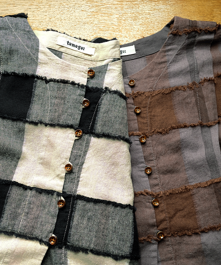 「カットジャガード」という特殊な技法を施したtumuguのオリジナル生地で作りました。