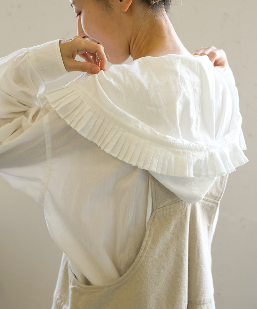 ナチュラル派にぴったりの、大人可愛いディテールが魅力のフリルプルオーバー。