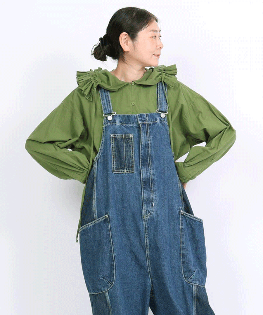 キナリヘリンボンオックス/10ozデニム サロペット