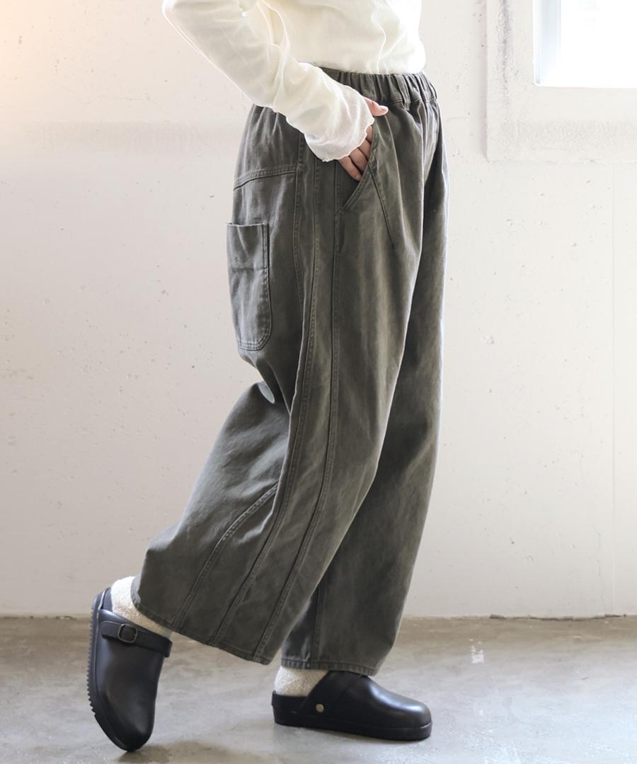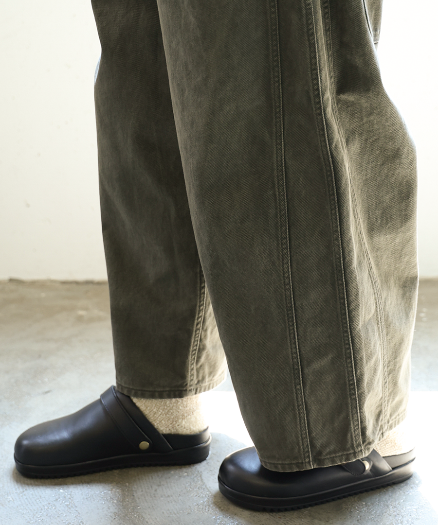 バイオウィッシュ加工を施しヴィンテージライクに仕上げたワイドパンツ。