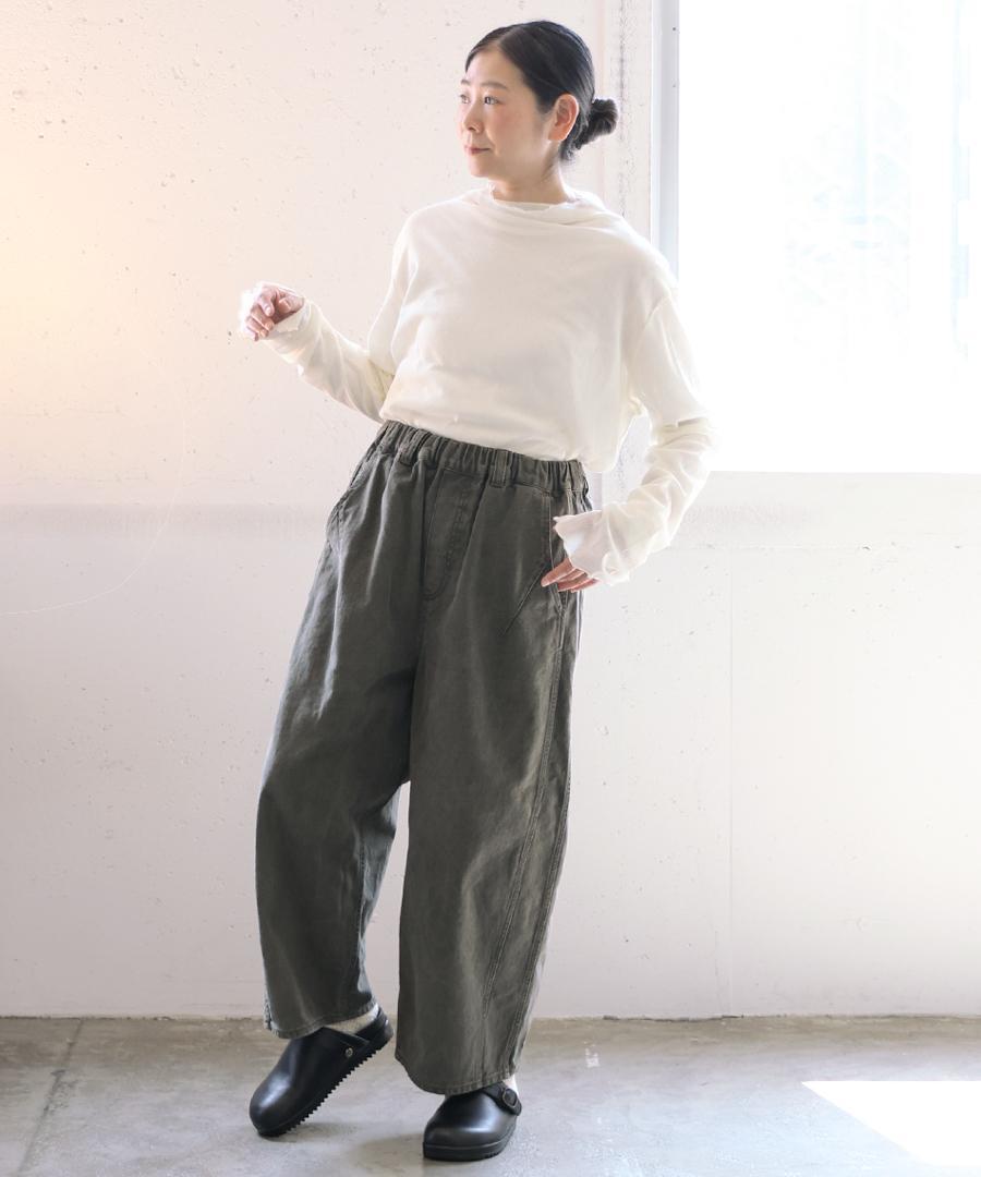 ゆったりとしたワイドなシルエットでカラダのラインを拾いにくいのも嬉しいポイント。