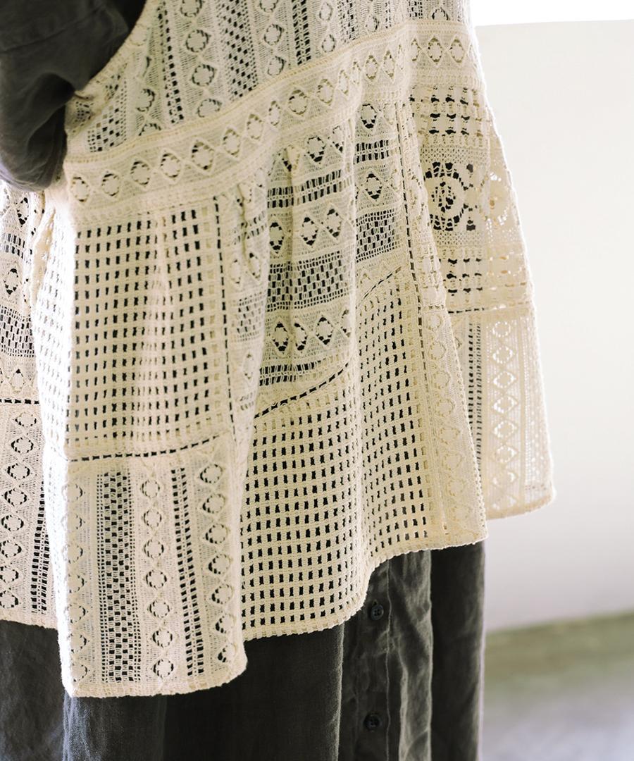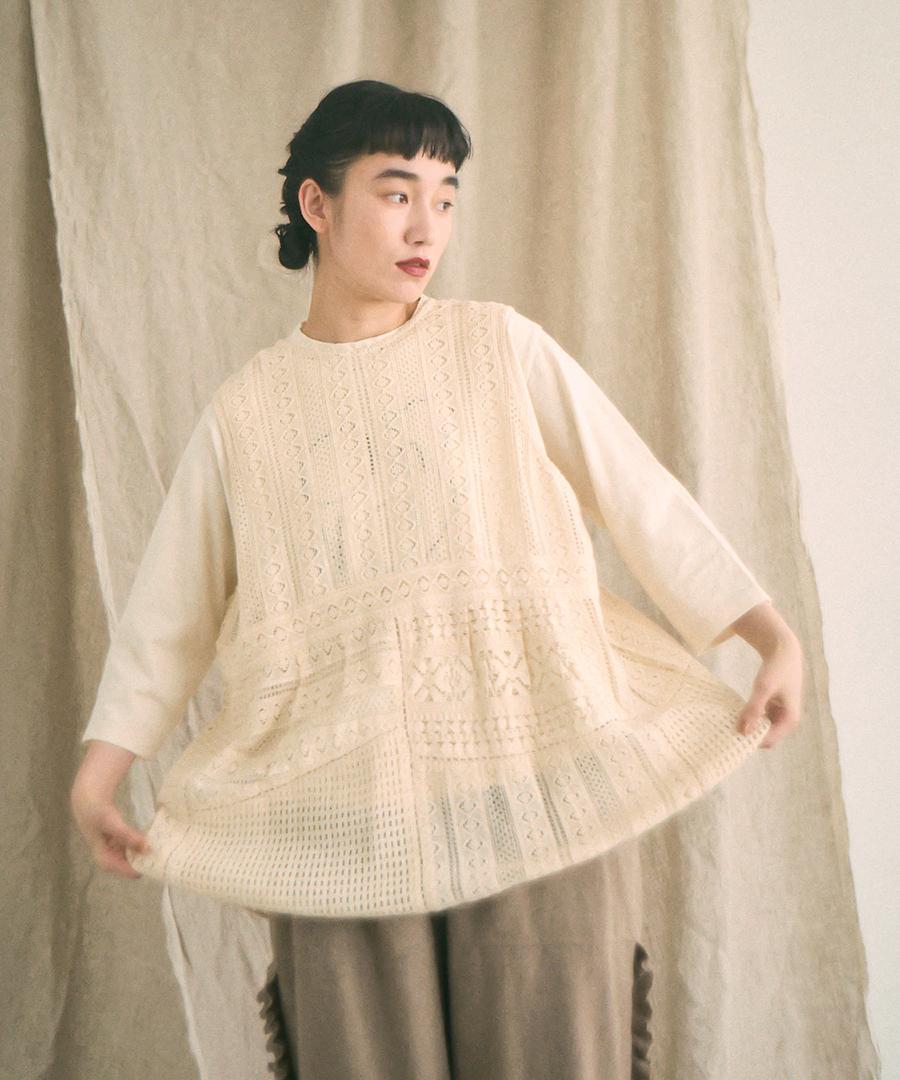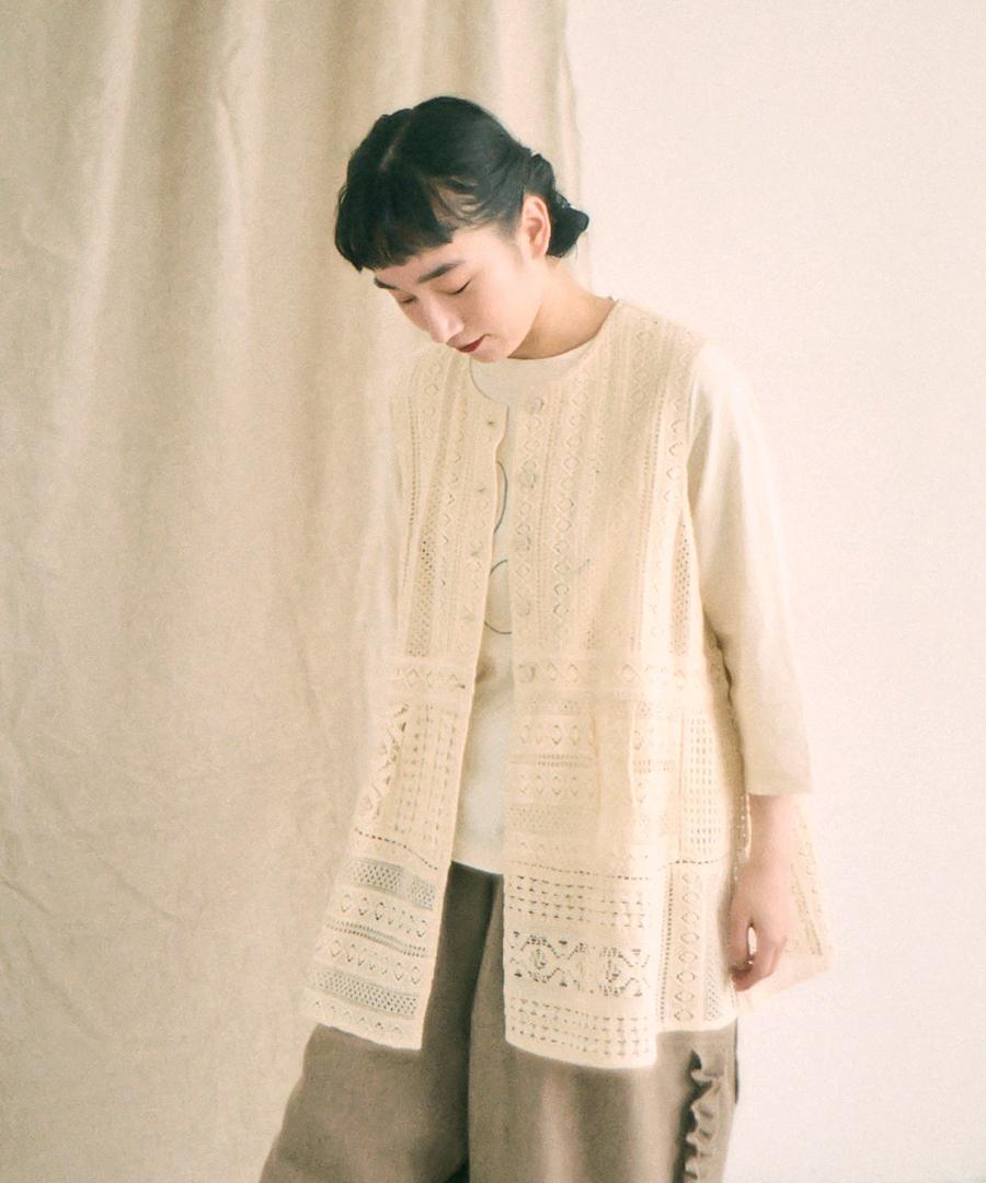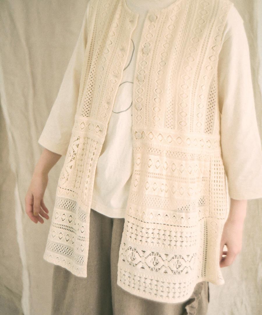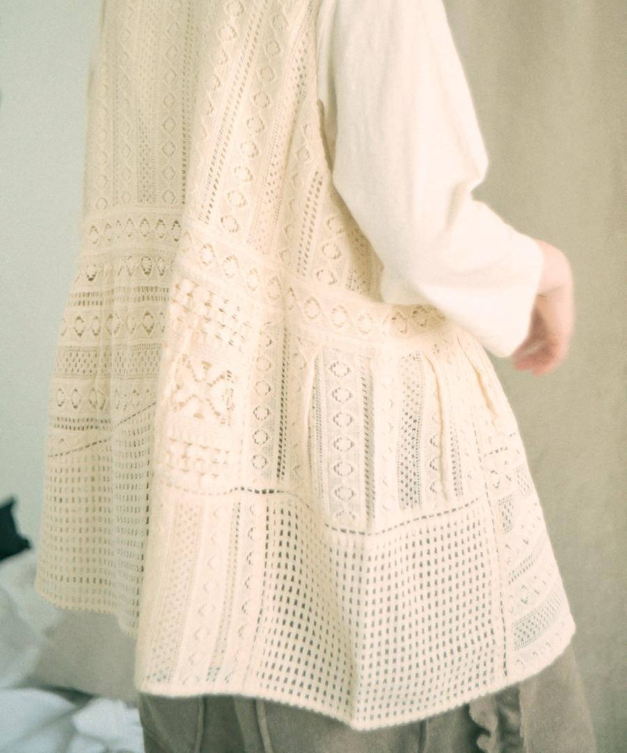 細やかで美しい透かし編みが特徴の、クロシェレースの2wayベスト。