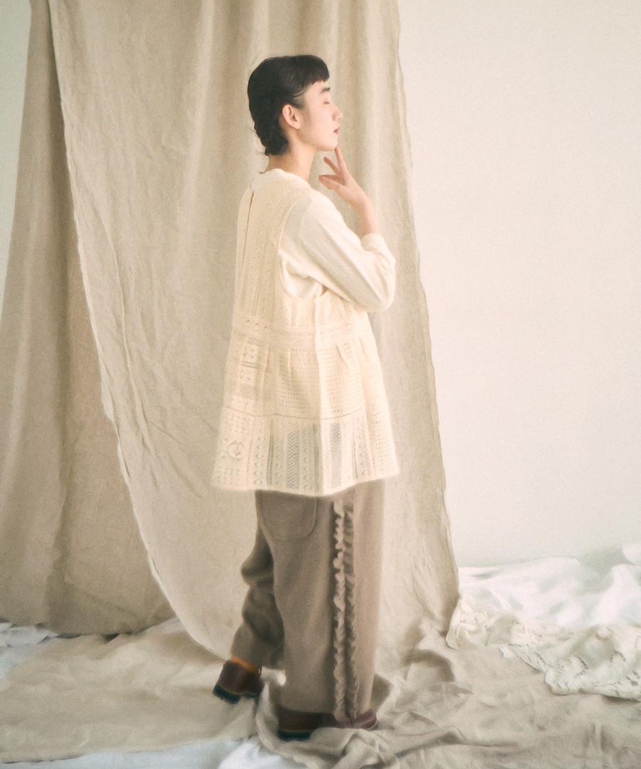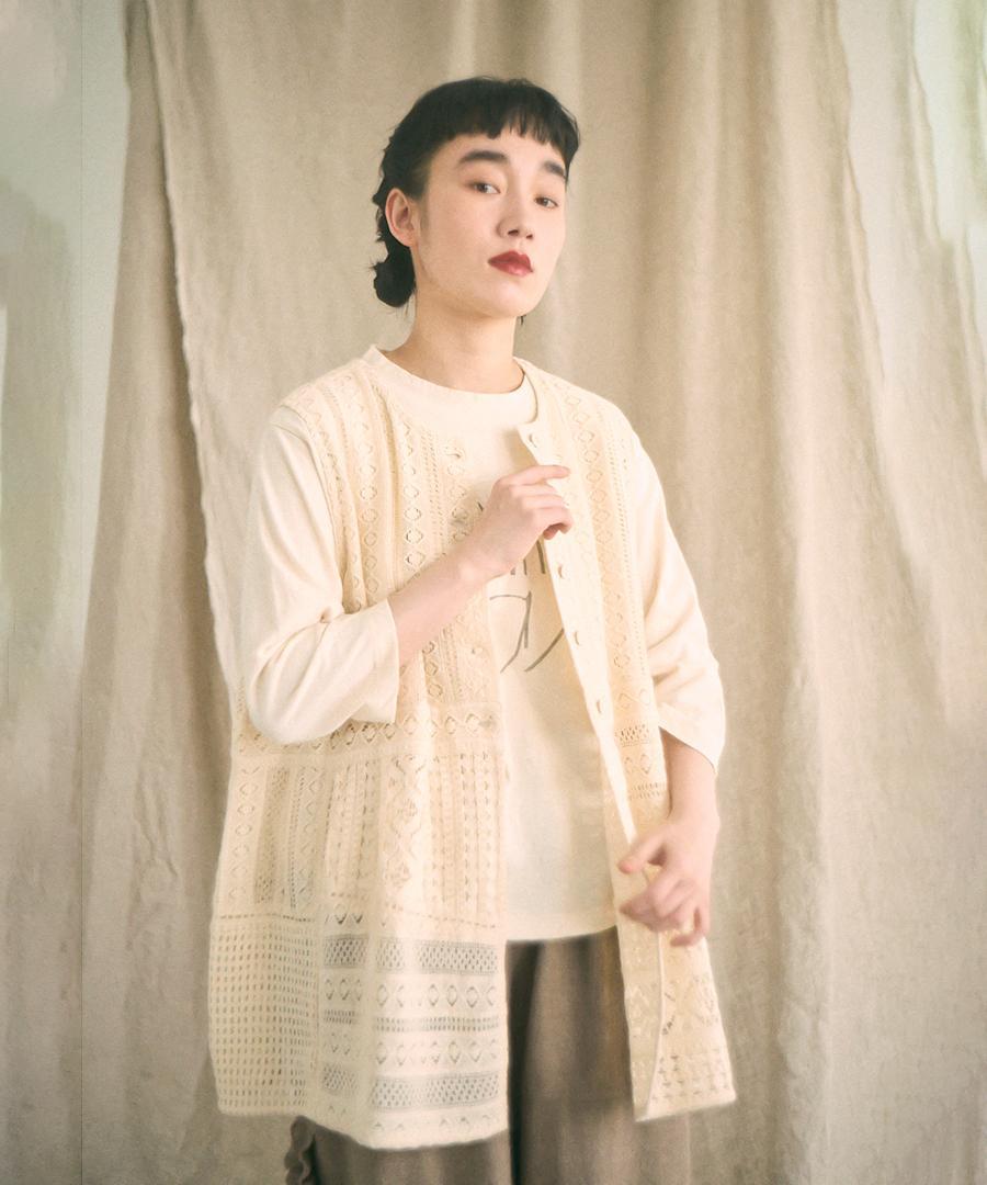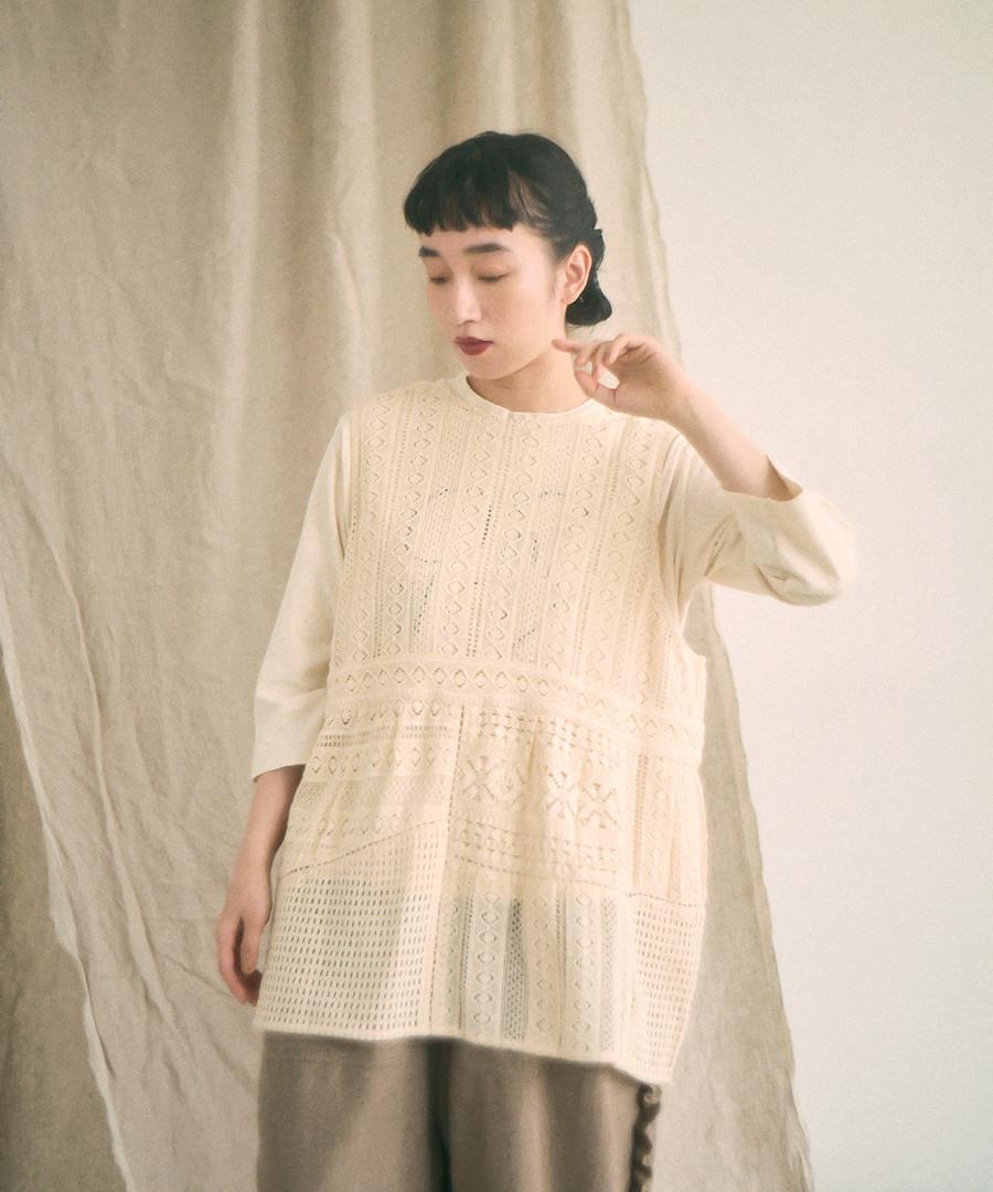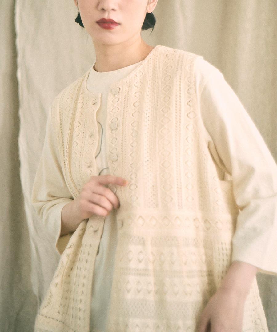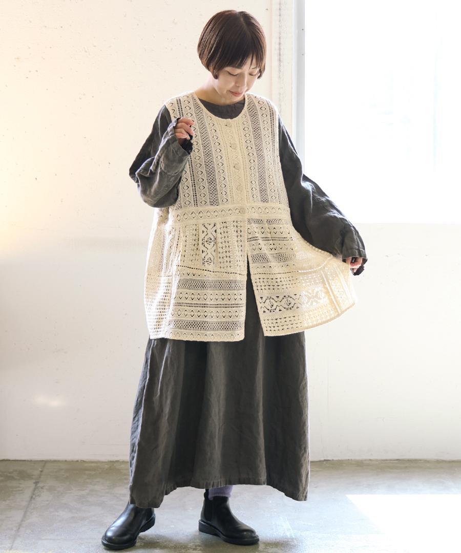 細やかで美しい透かし編みが特徴の、クロシェレースの2wayベスト。