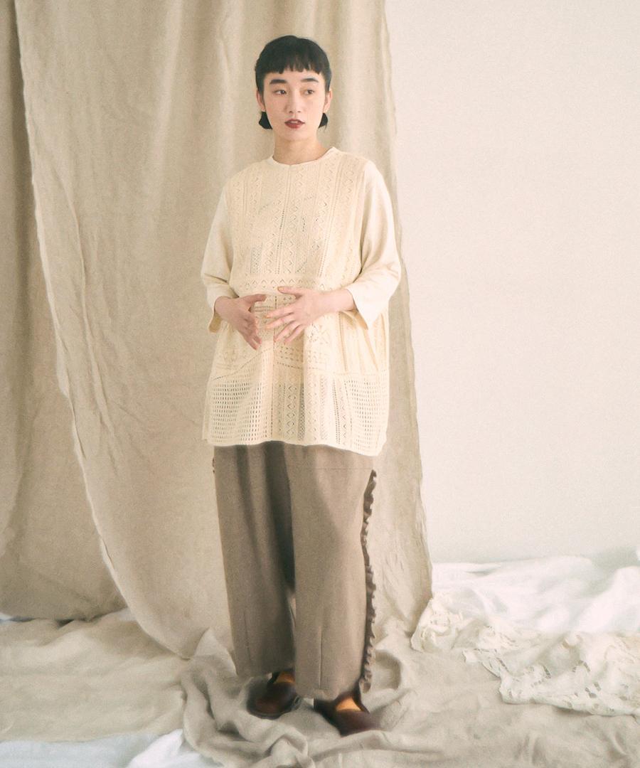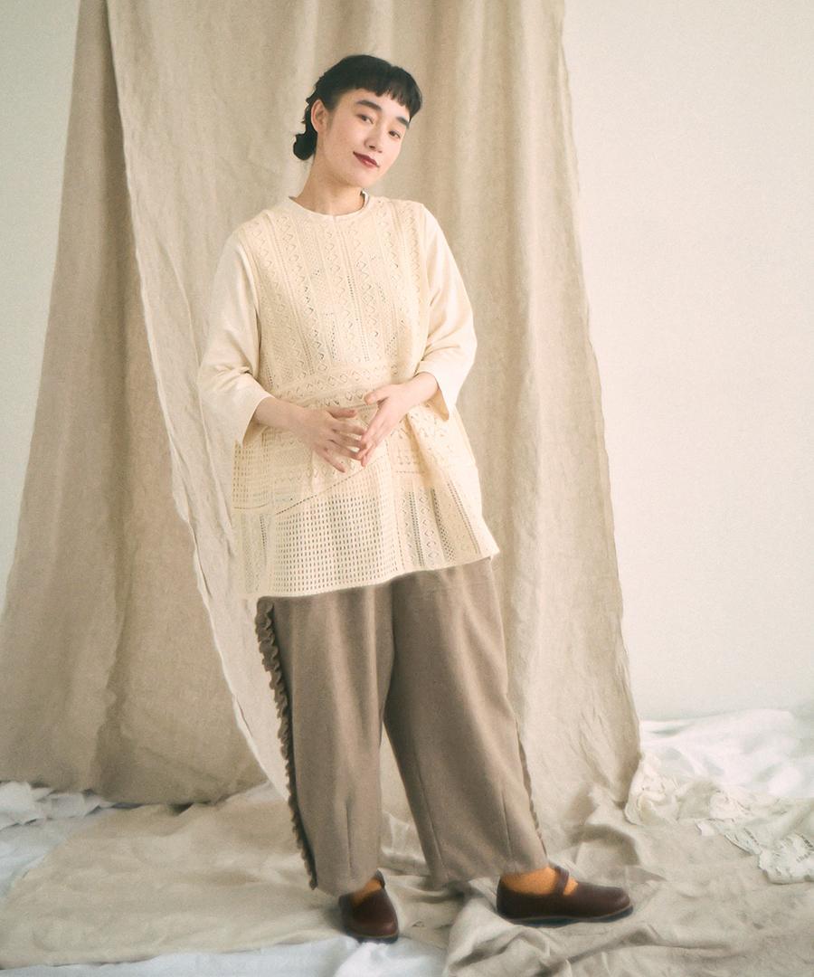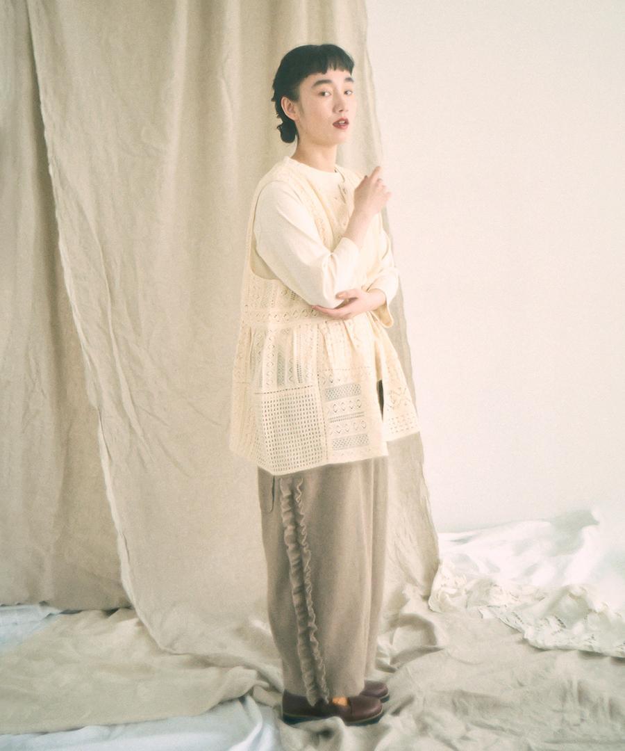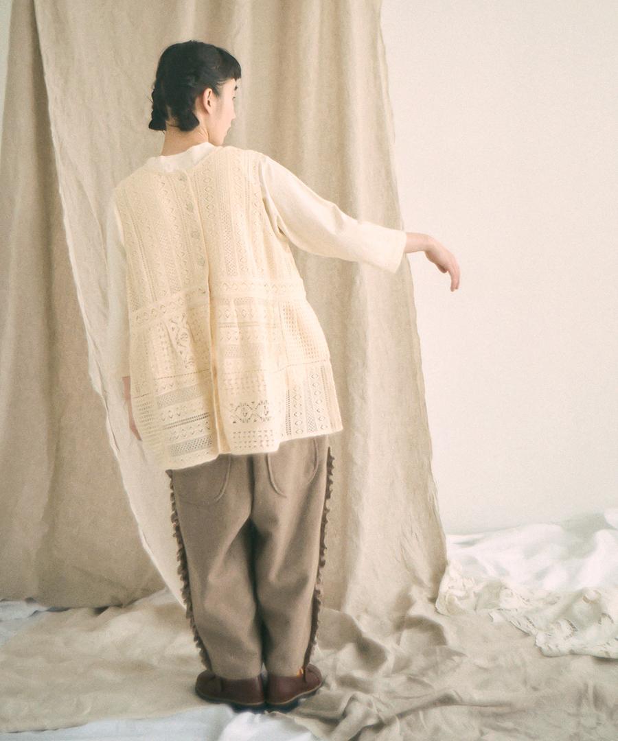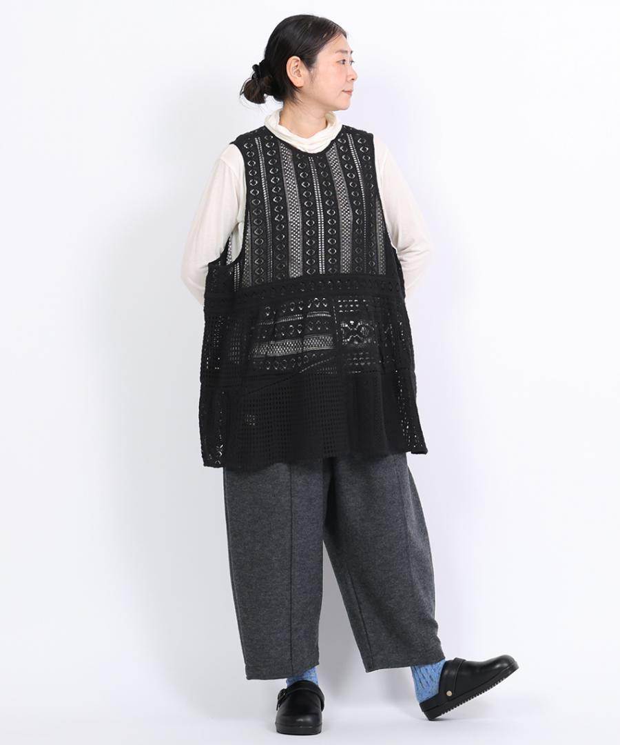 細やかで美しい透かし編みが特徴の、クロシェレースの2wayベスト。