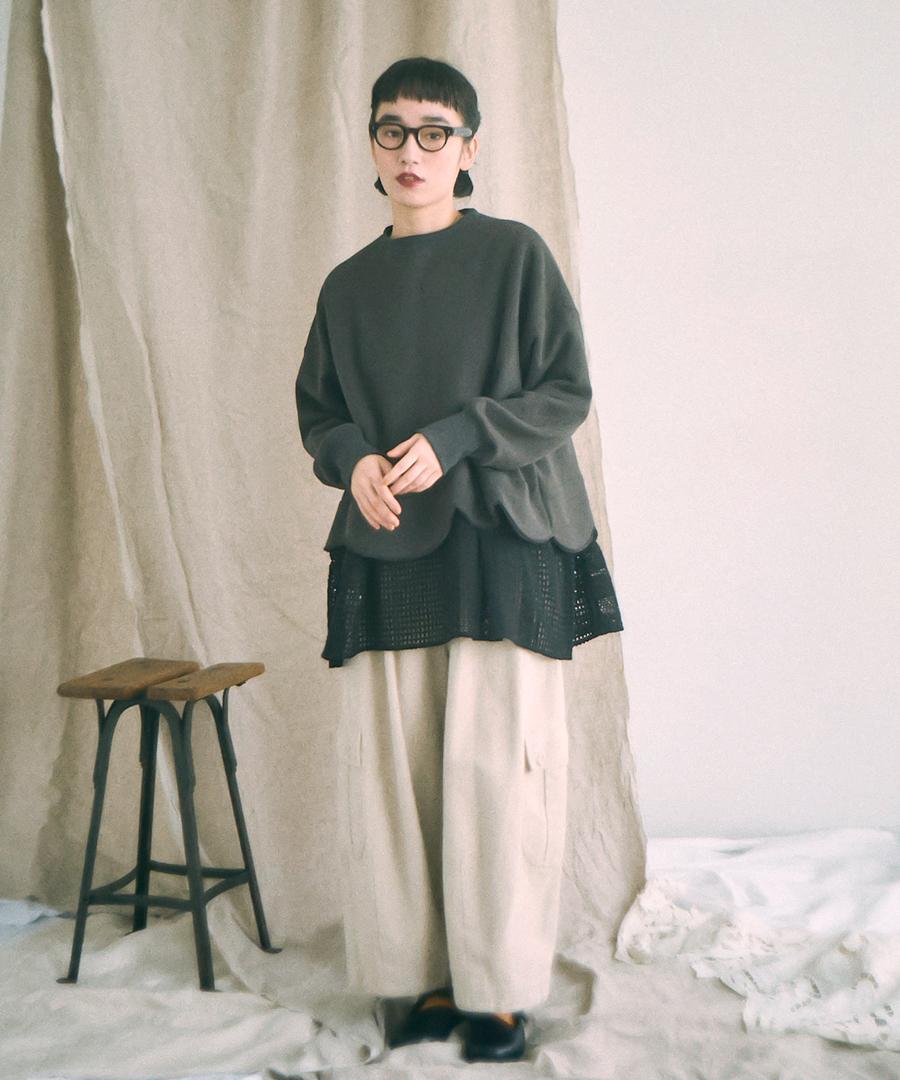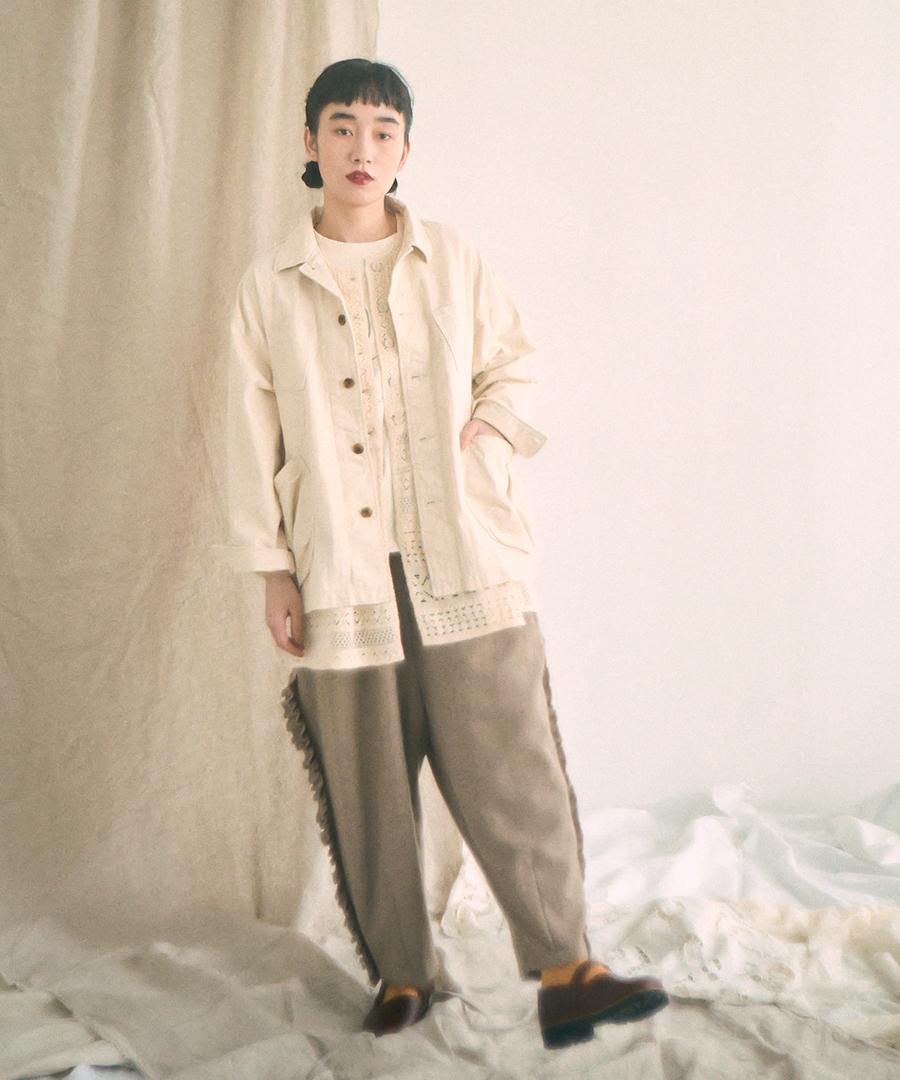 Tシャツの上に羽織ったり、スウェットやニットの下にインしたり、重ね着をしても重たくならず、程よい抜け感を加えてくれます。