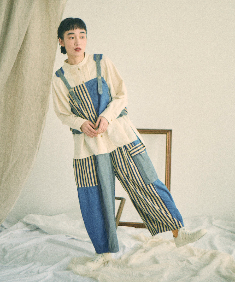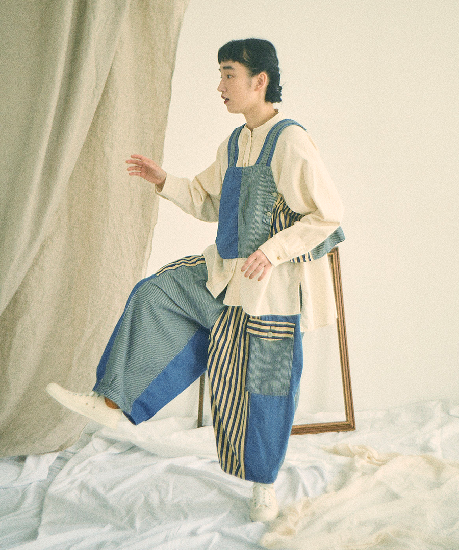 程よいハリ感のあるコットンデニム×ヒッコリーストライプ生地で、年間を通して万能素材です。