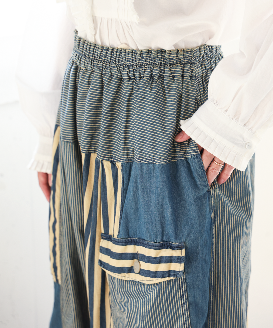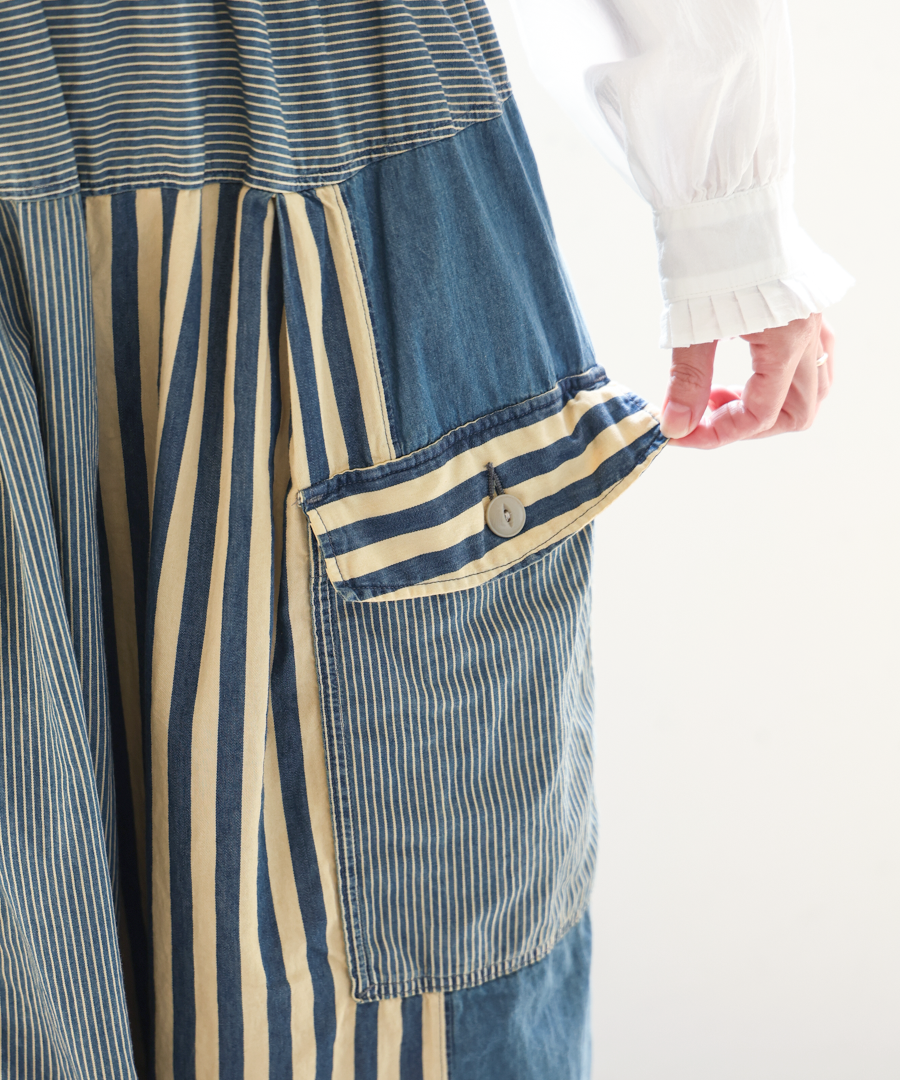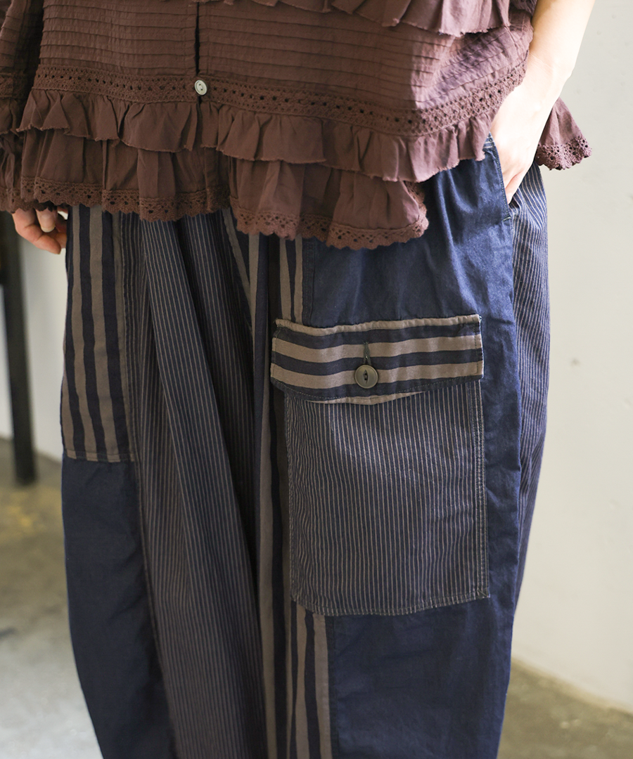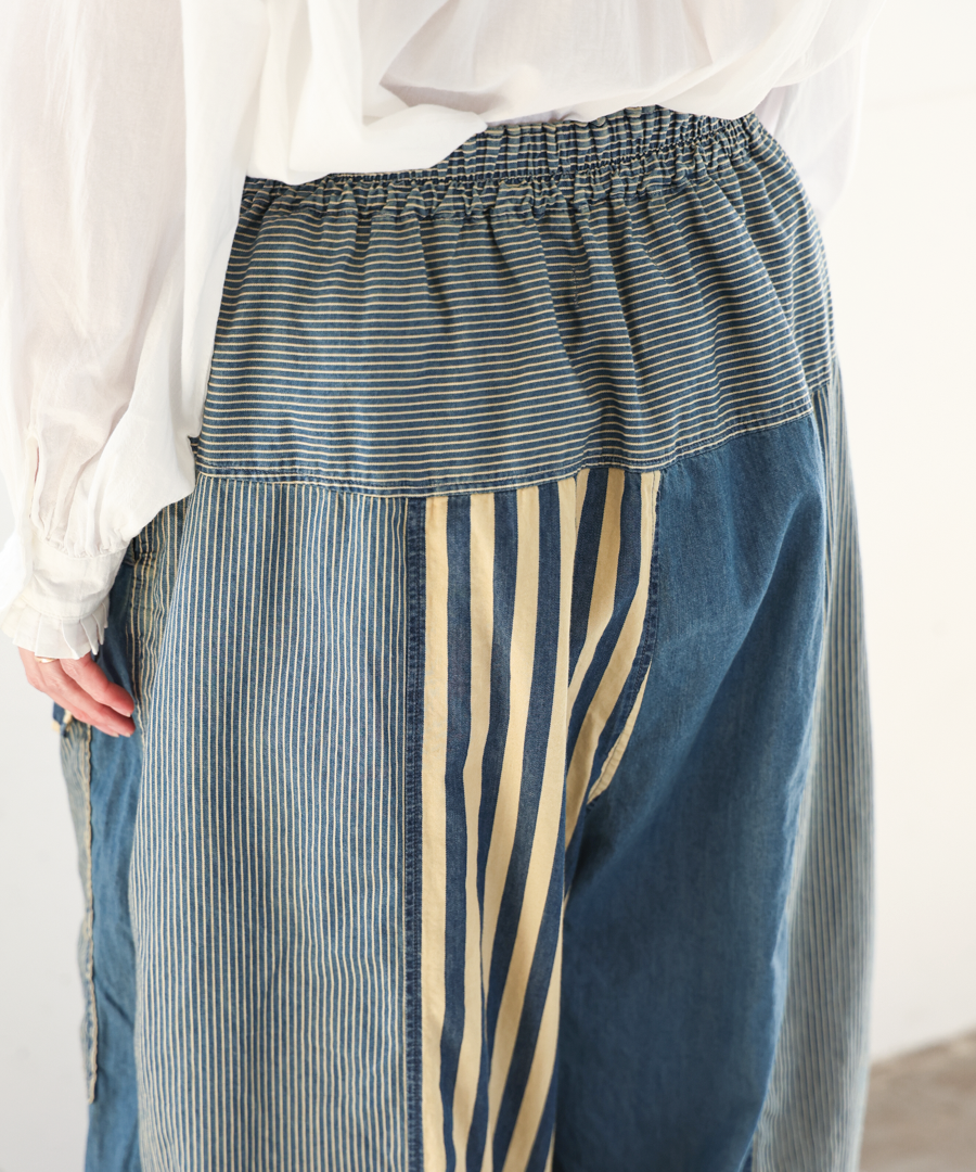 デニム×ヒッコリーストライプ パンツ