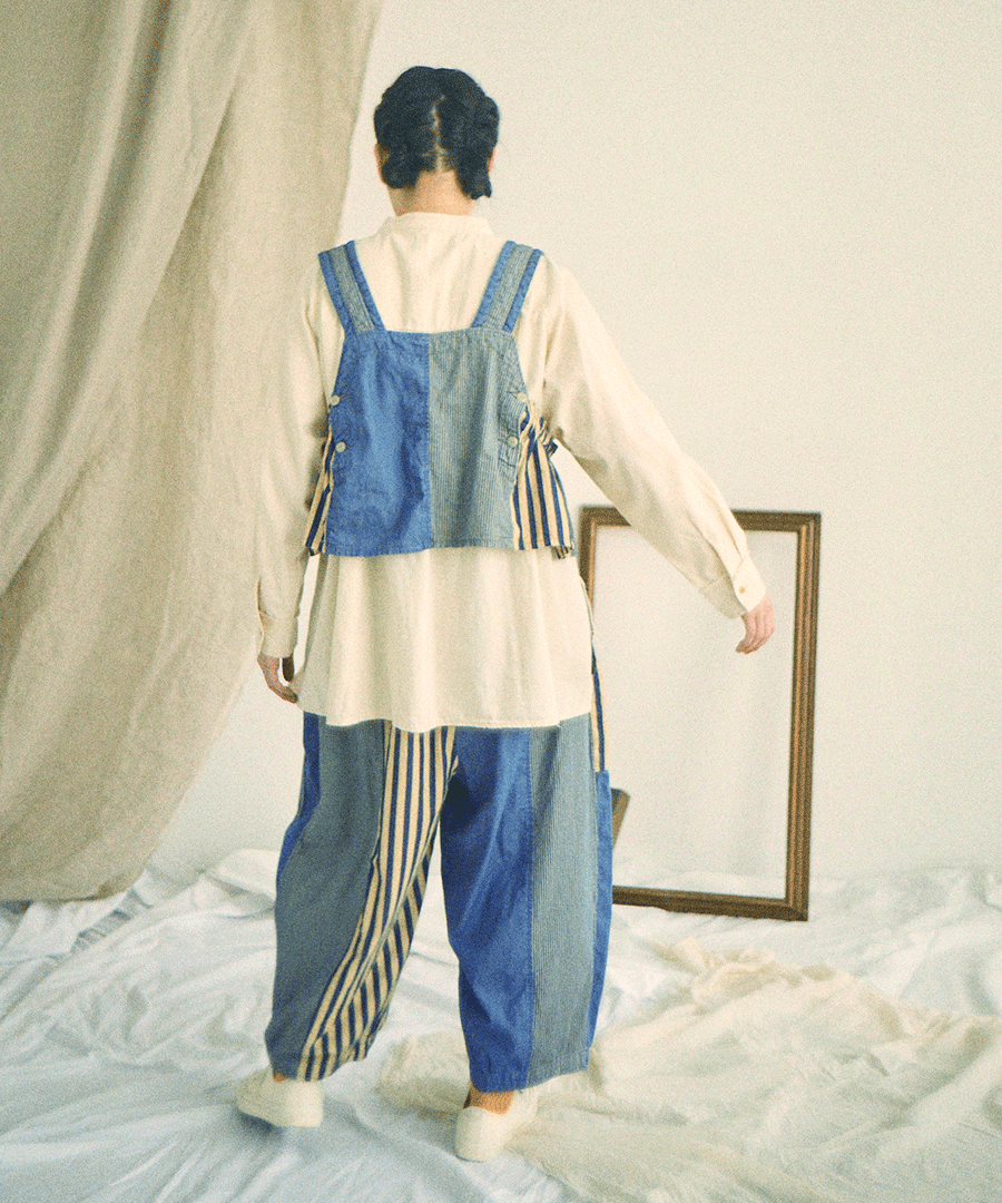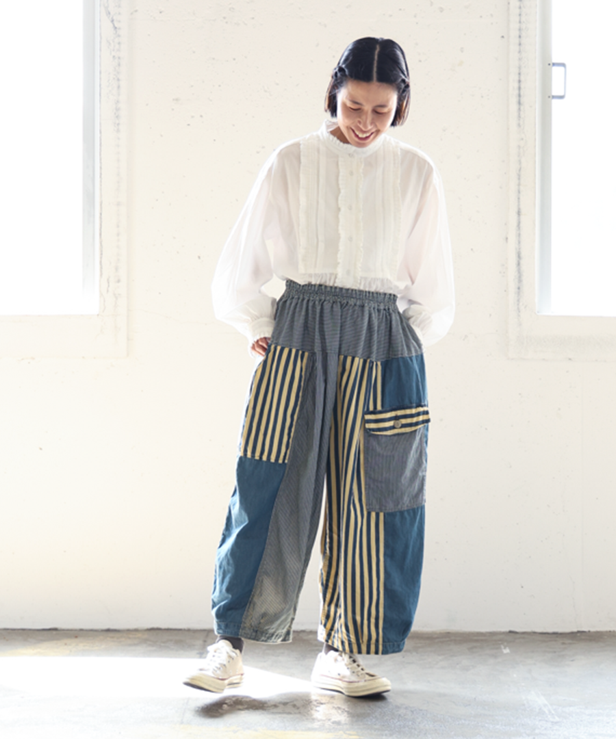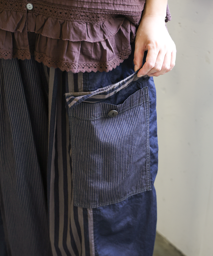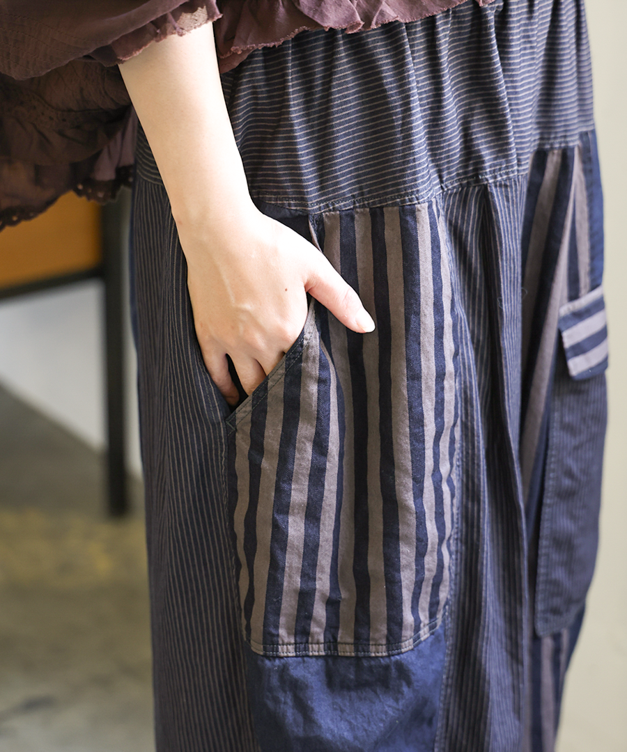 デニム×ヒッコリーストライプ パンツ