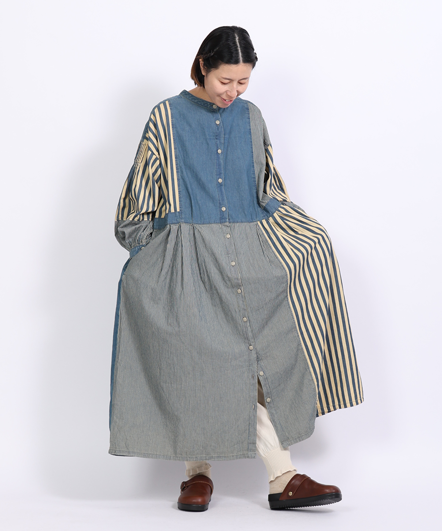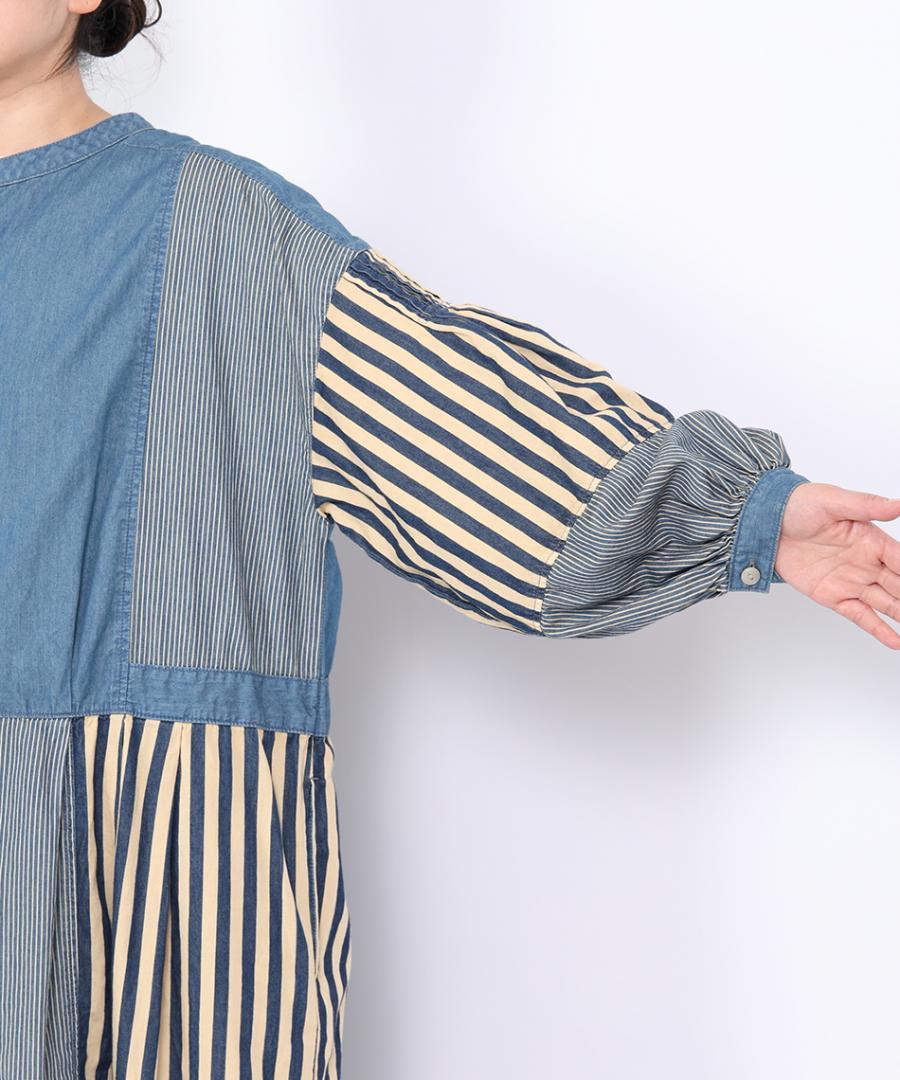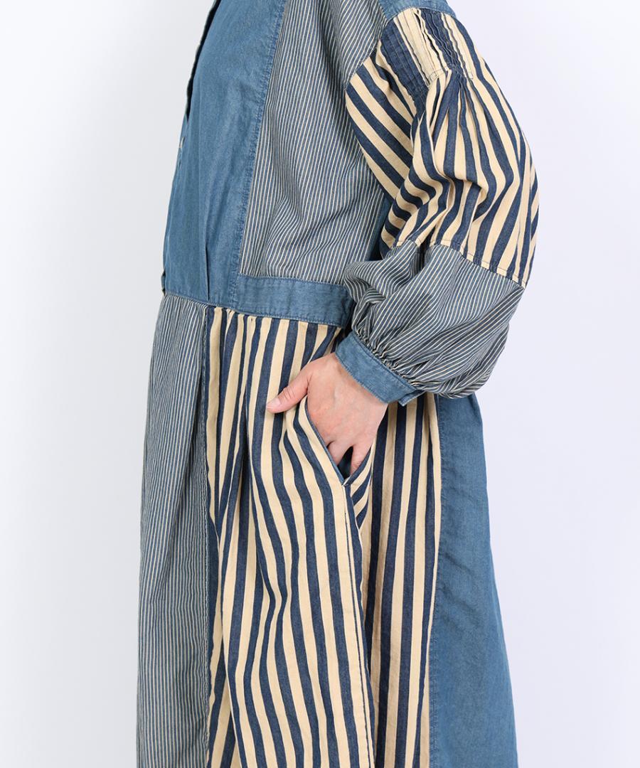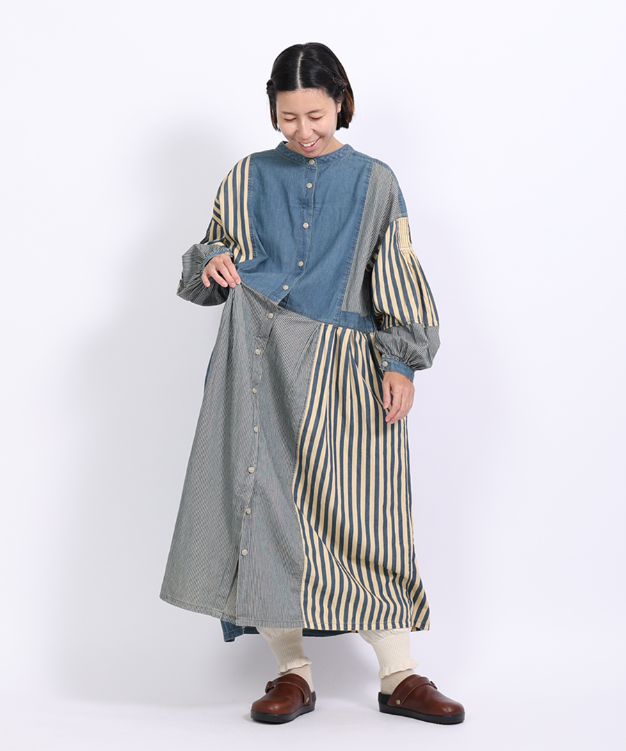 デニム×ヒッコリーストライプ 2wayワンピース