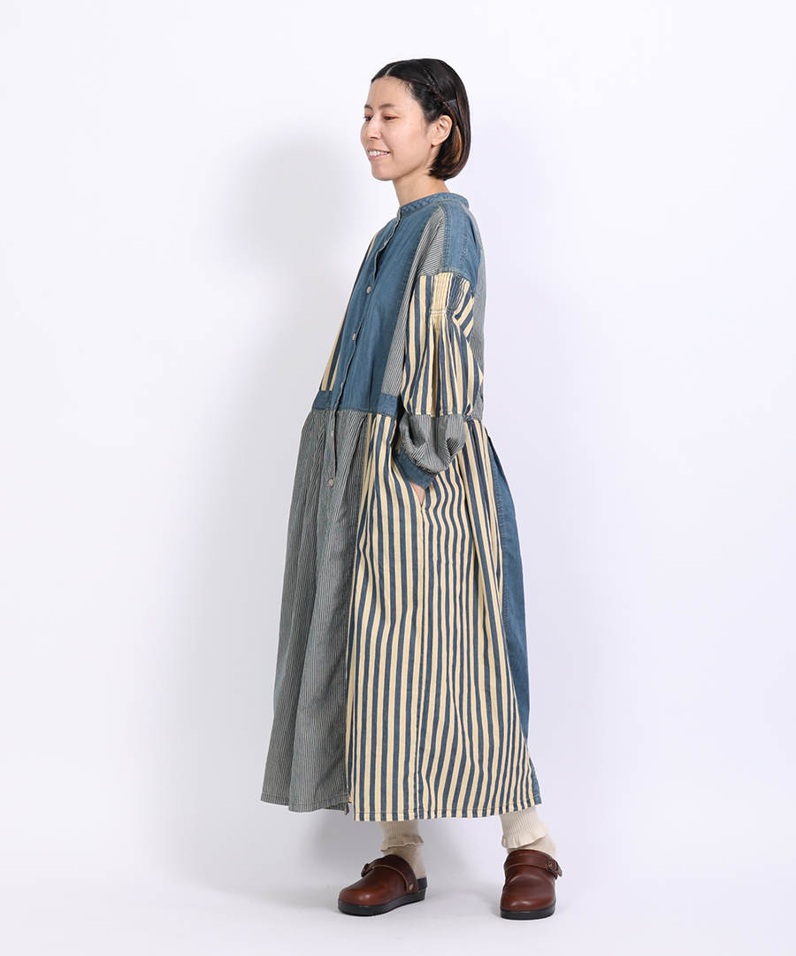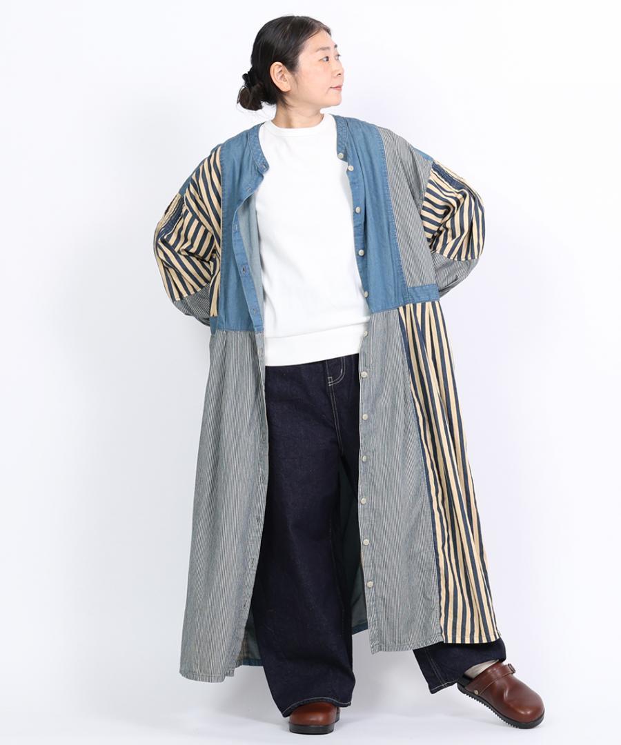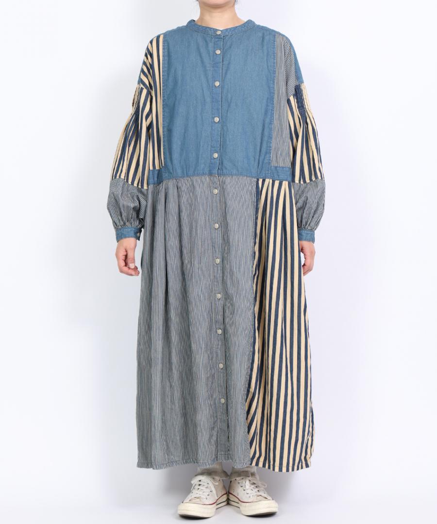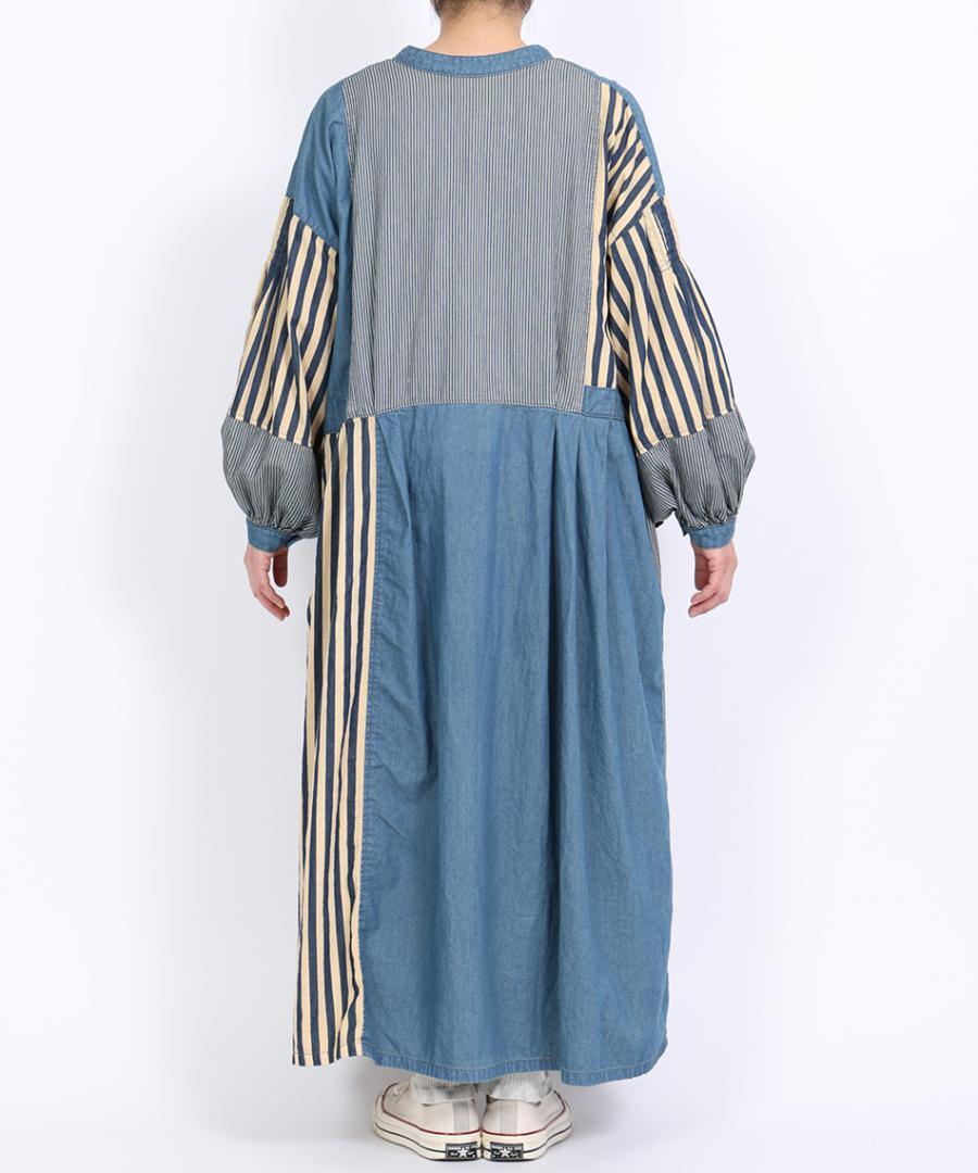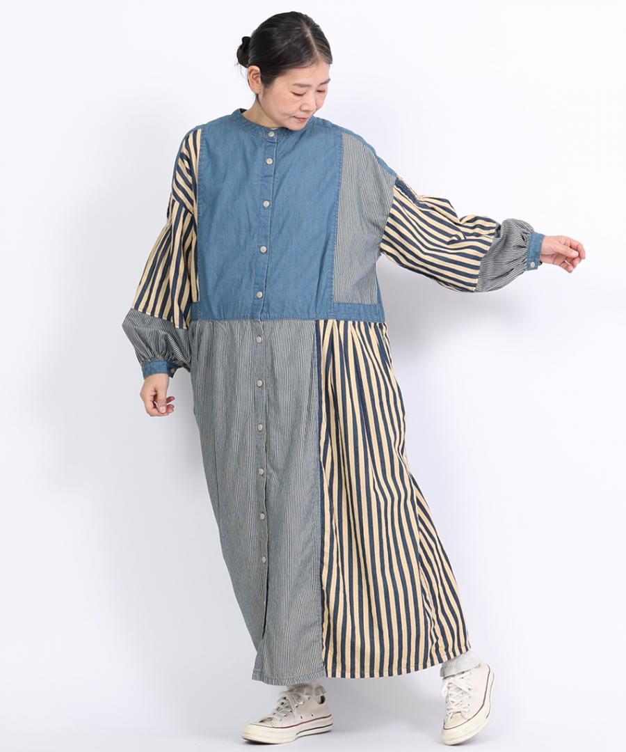 デニム×ヒッコリーストライプ 2wayワンピース