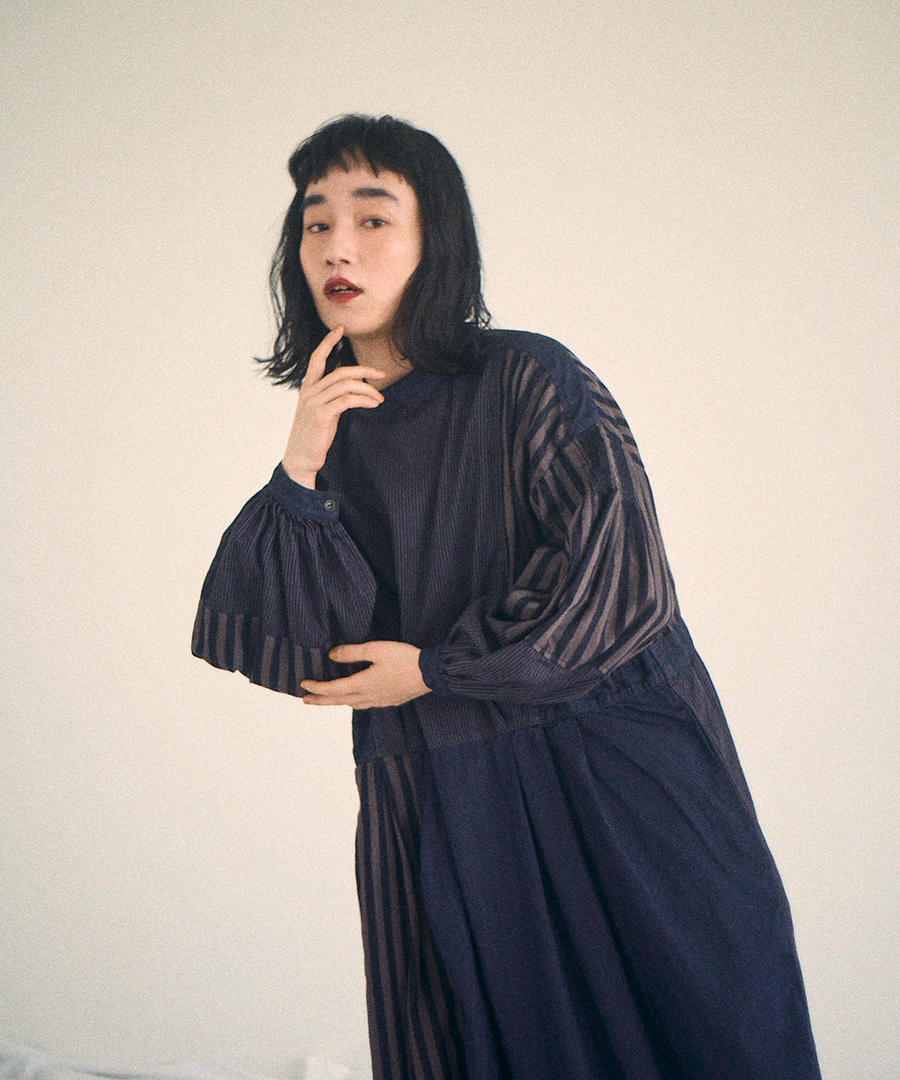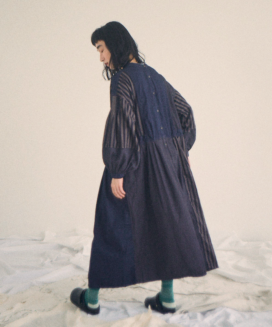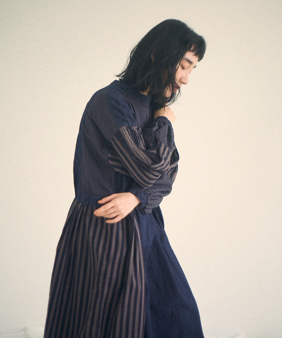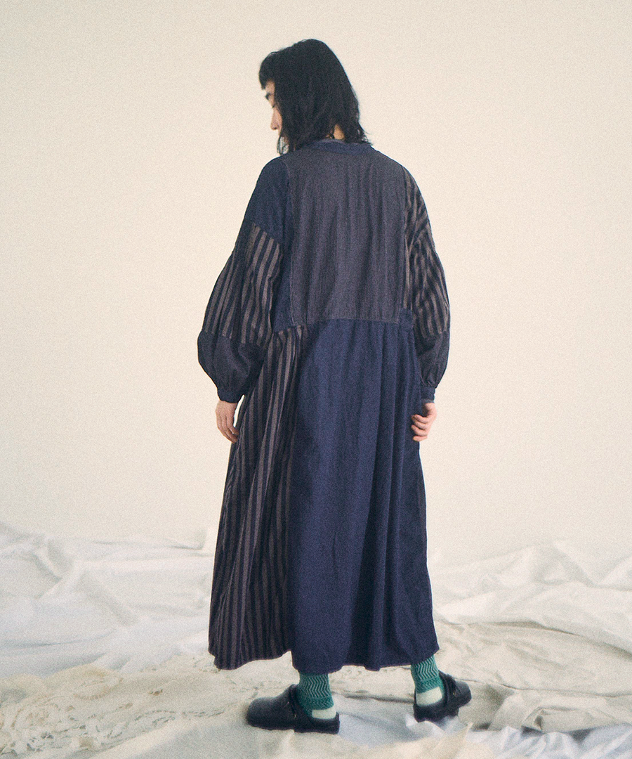 デニム×ヒッコリーストライプ 2wayワンピース
