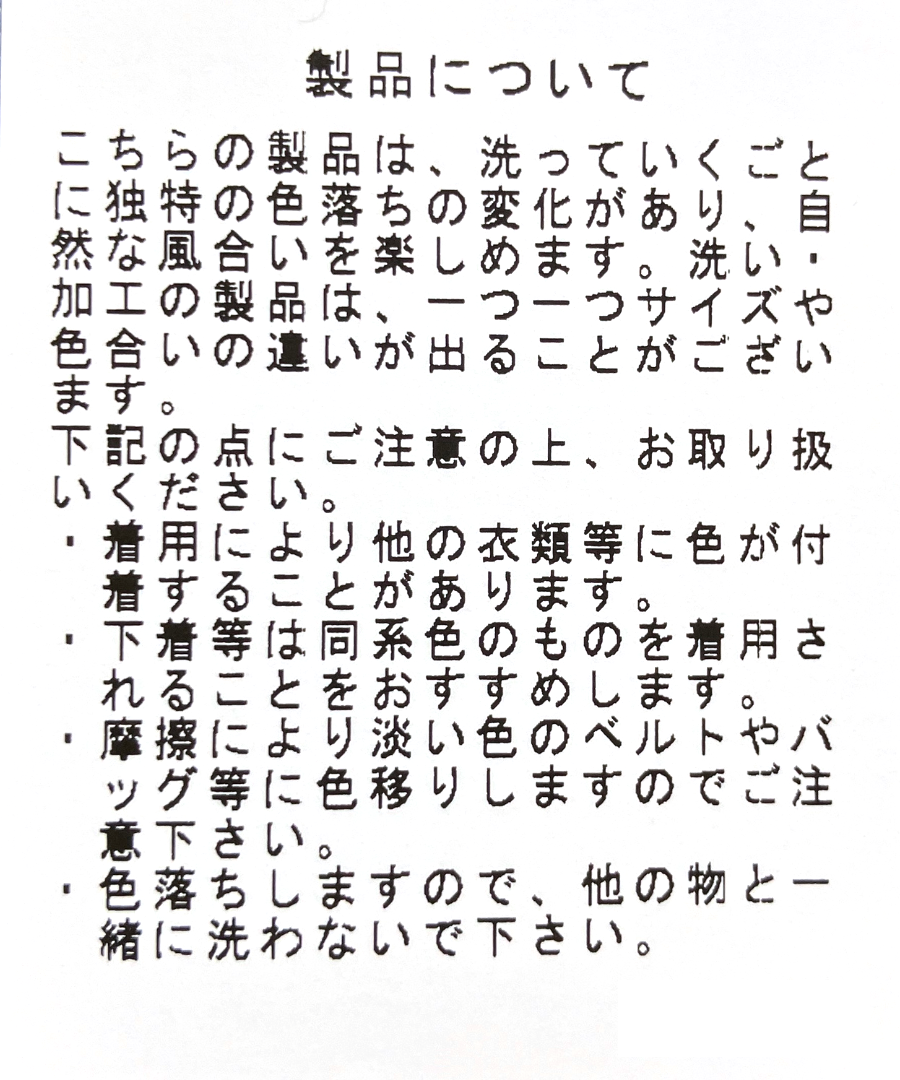 お洗濯の際は単品洗いをして移染にご注意ください。