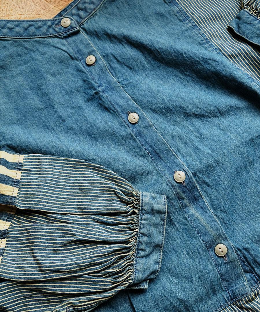 程よいハリ感のあるコットンデニム×ヒッコリーストライプ生地で、年間を通して万能素材です。