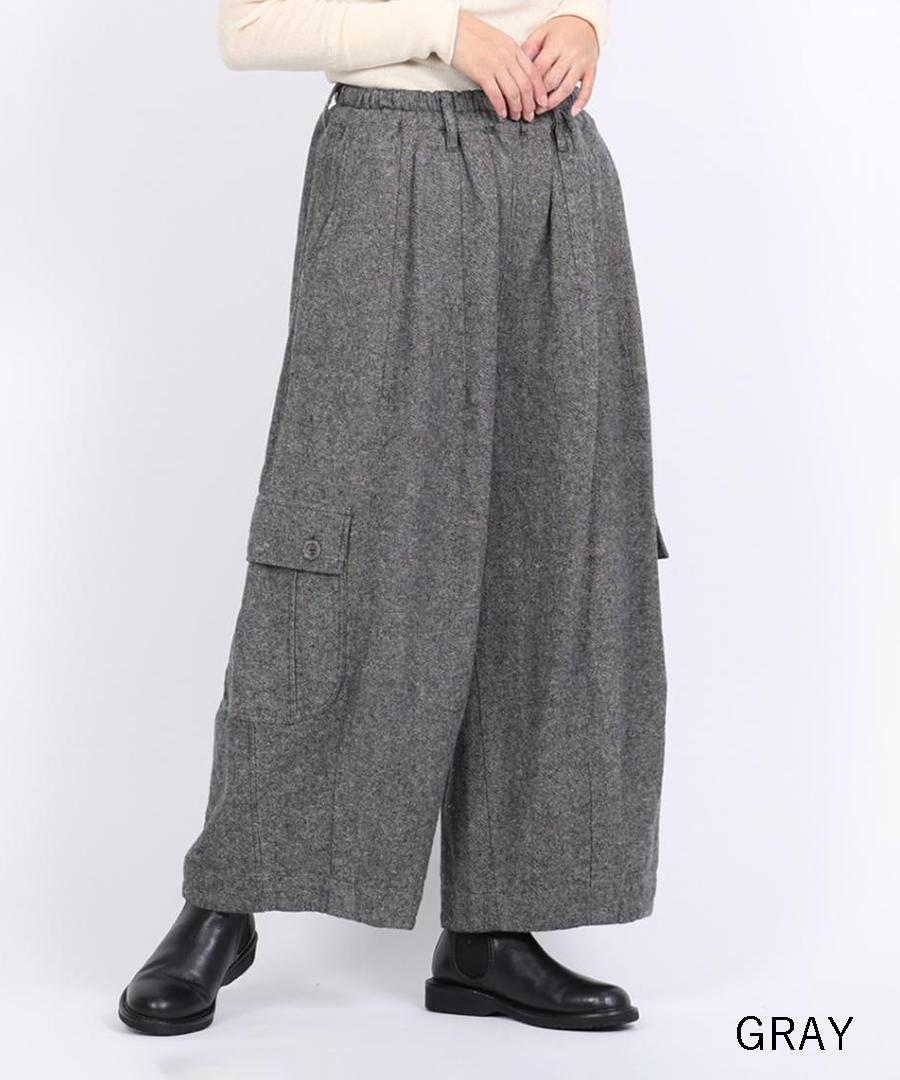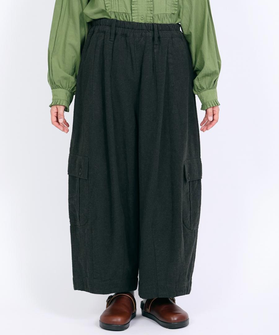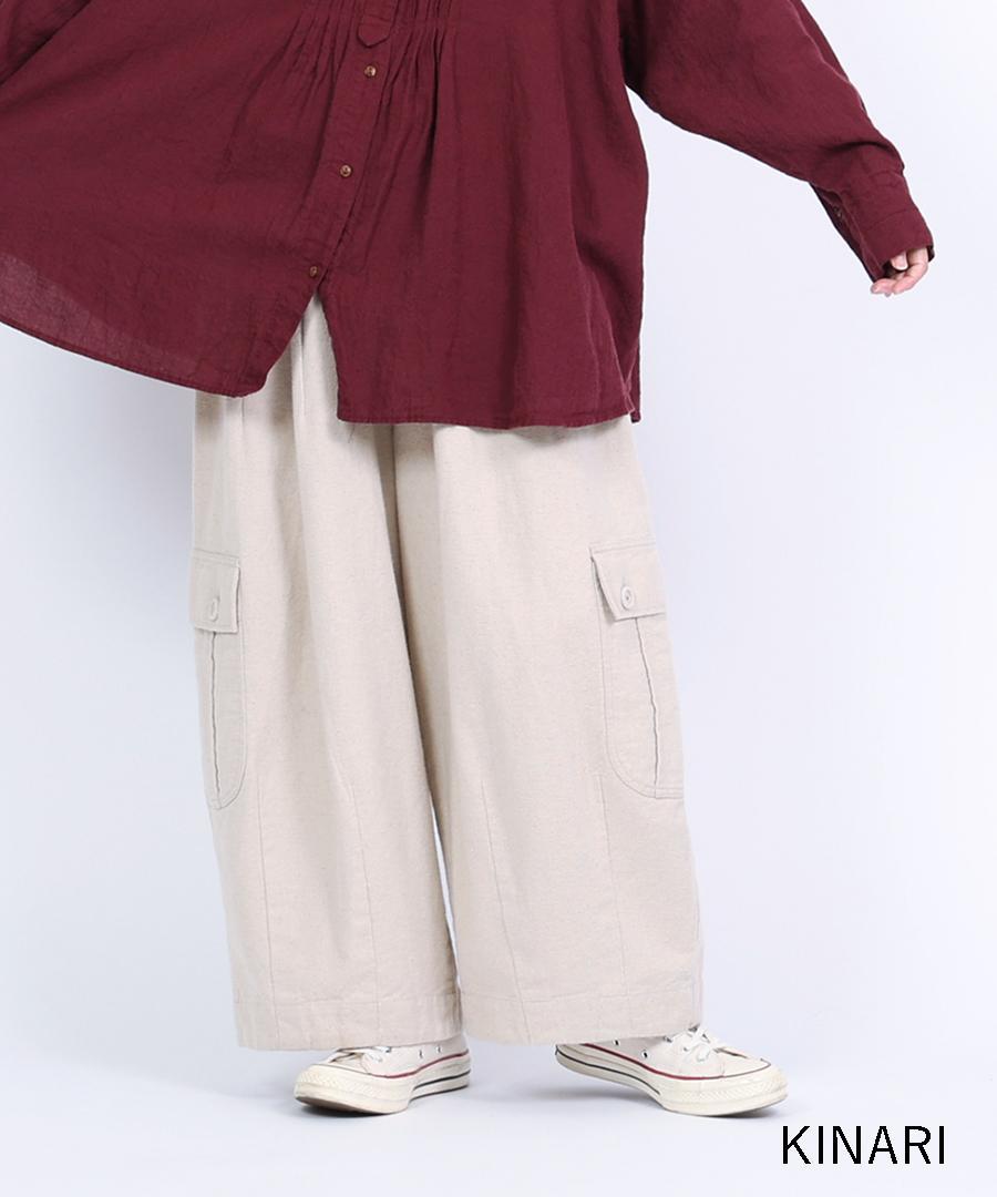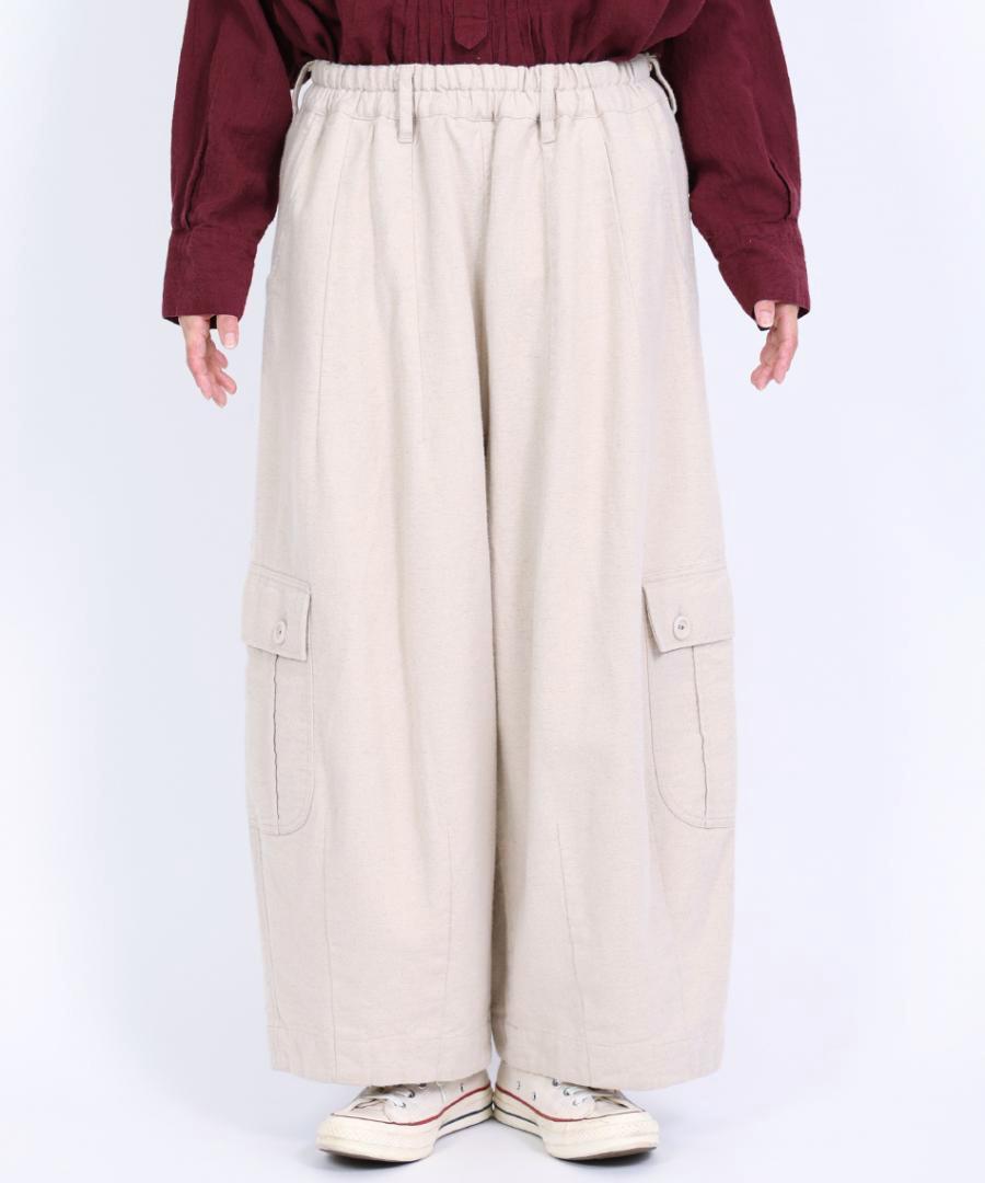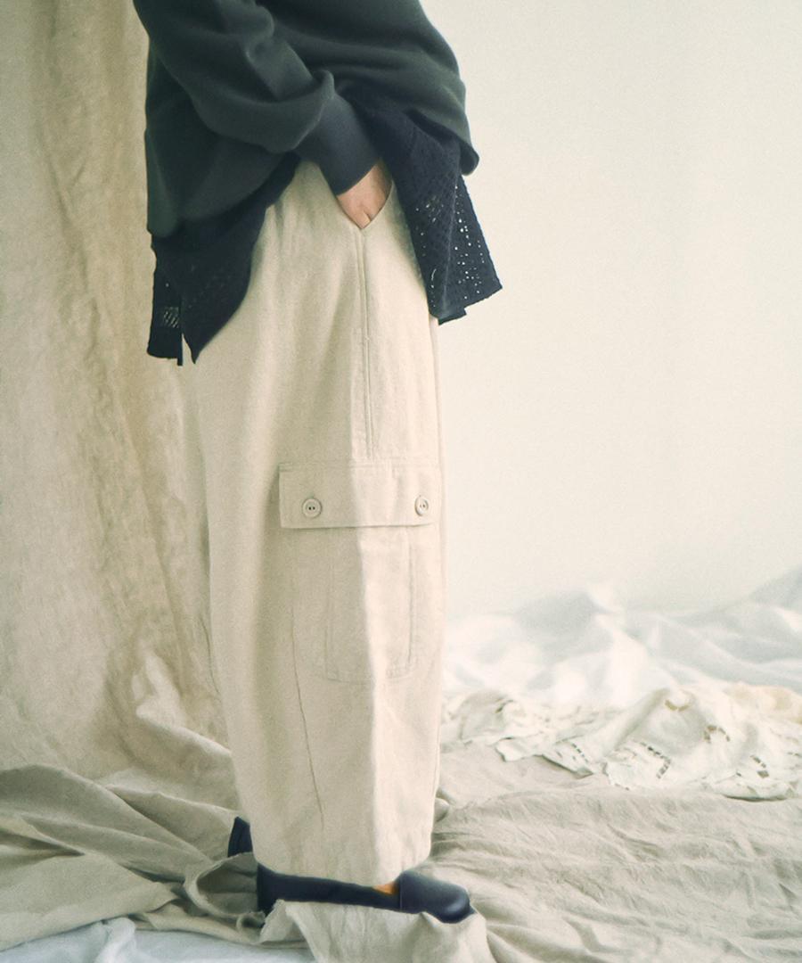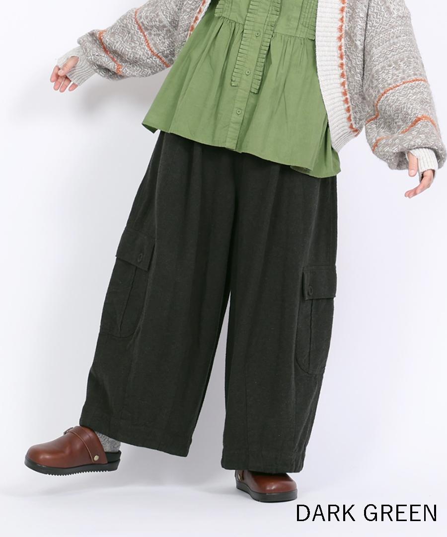コットンリネン起毛ツイル カーゴワイドパンツ