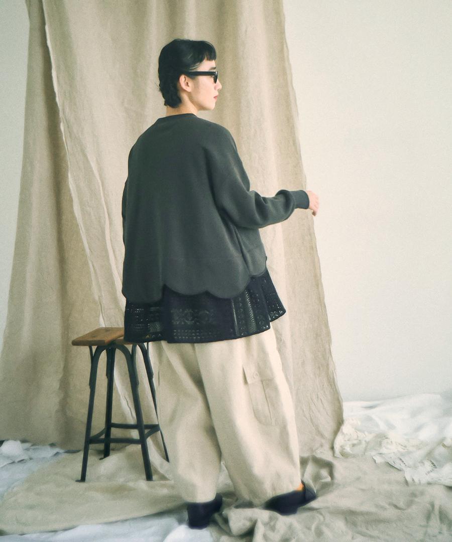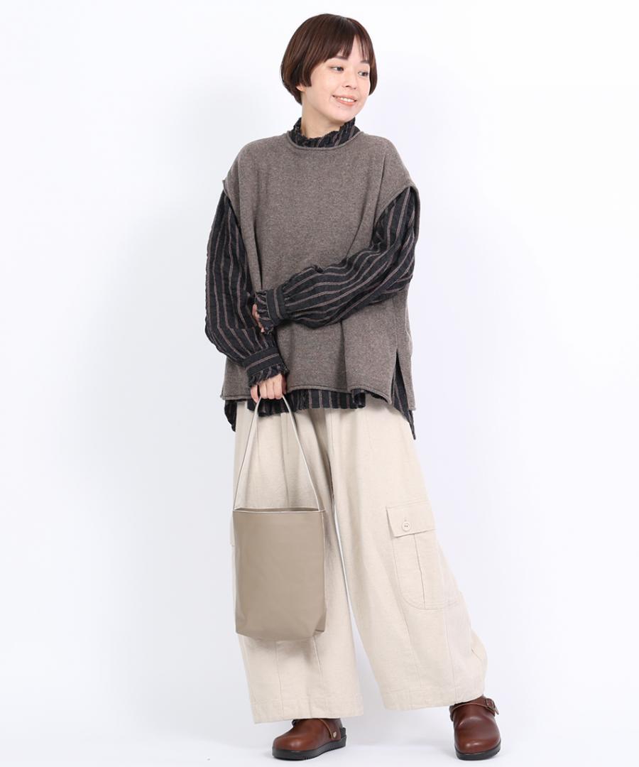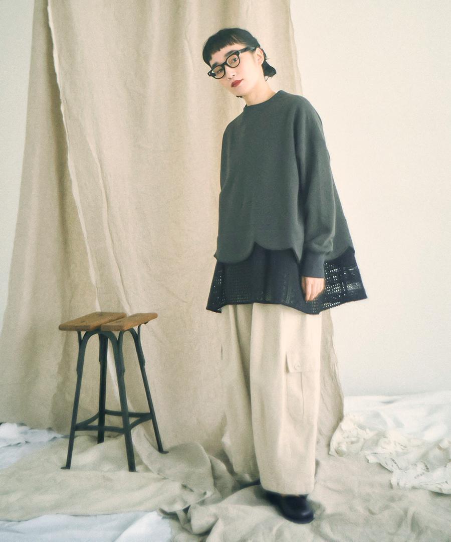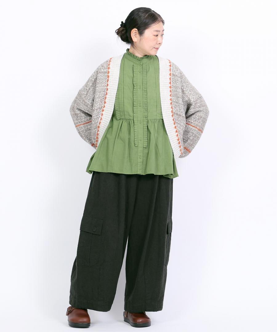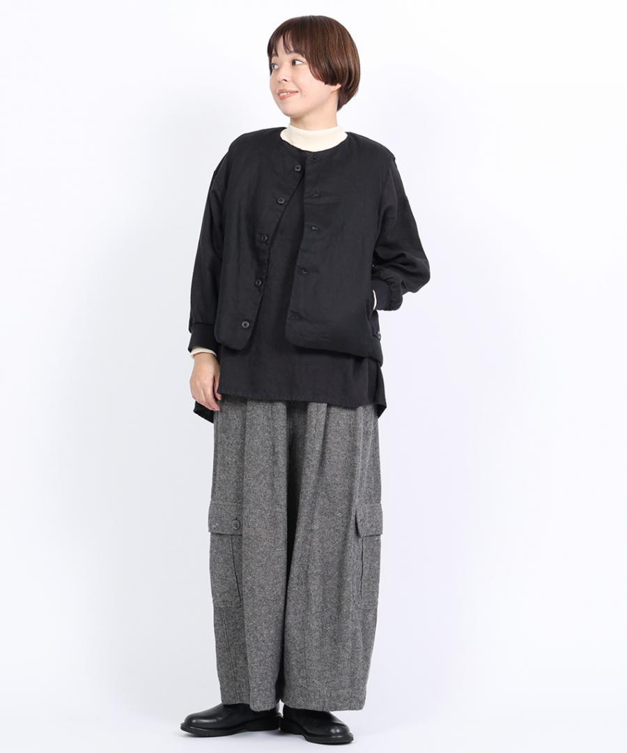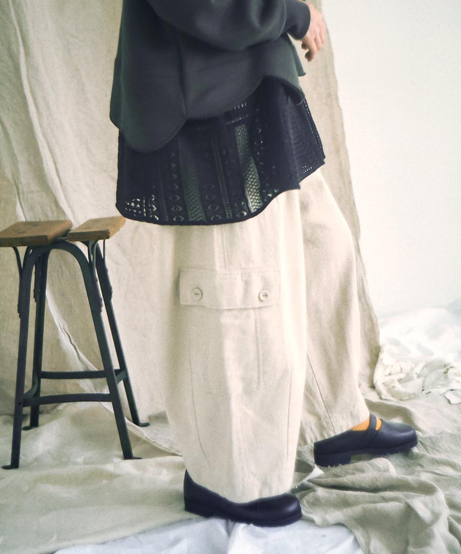 コットンリネン起毛ツイル カーゴワイドパンツ