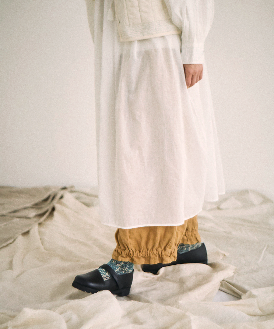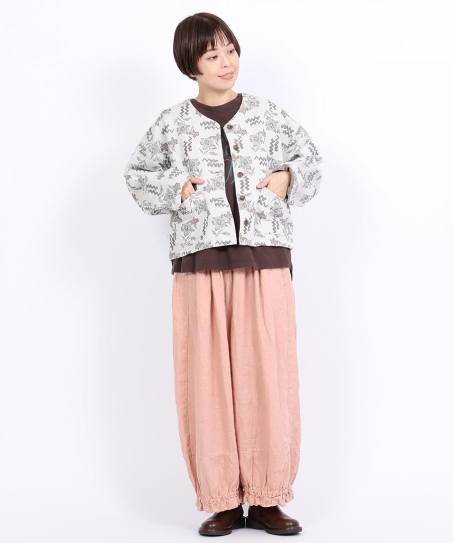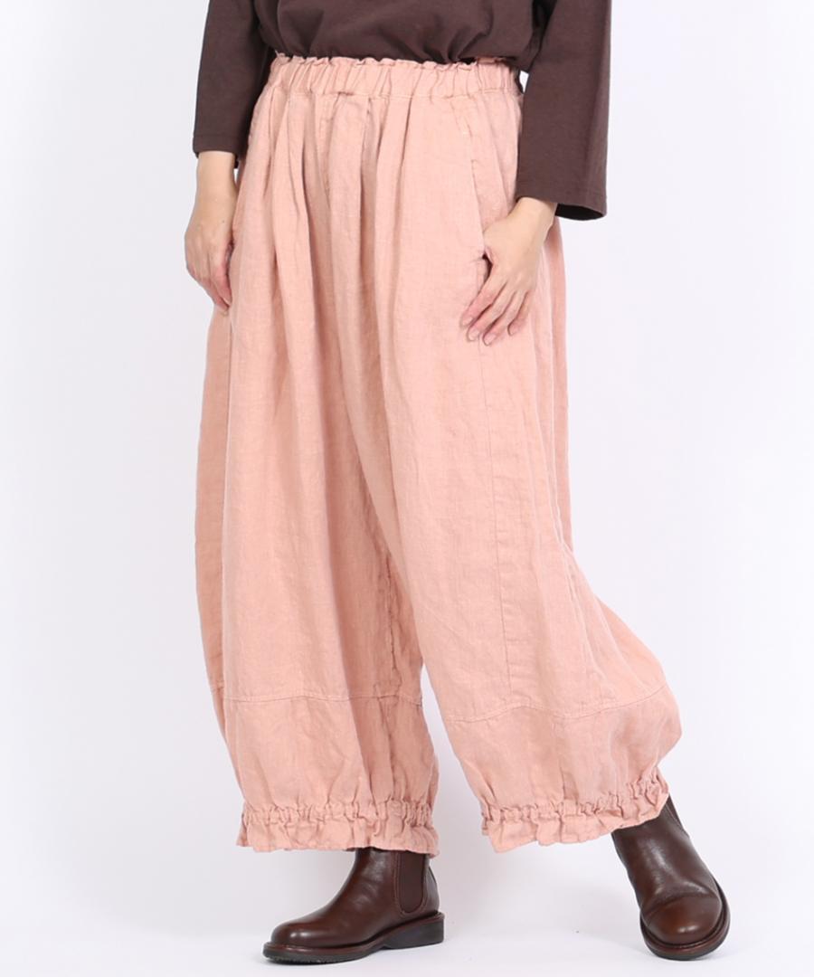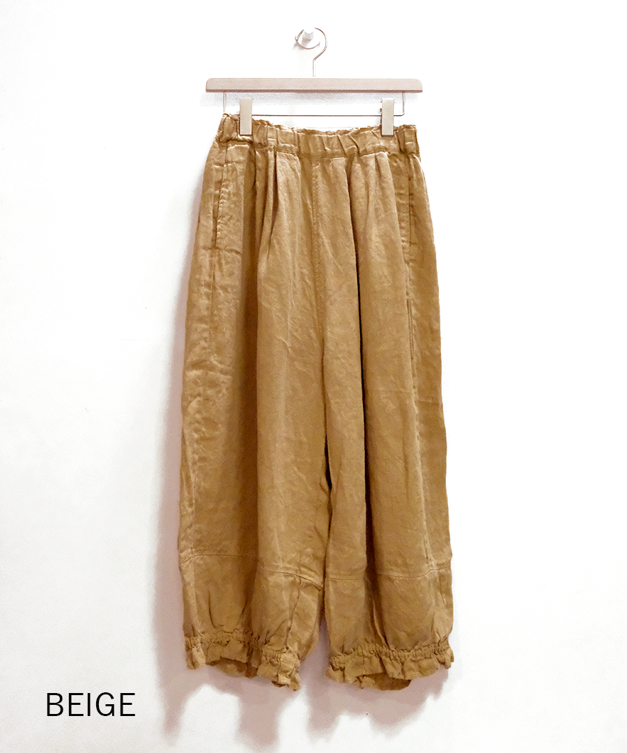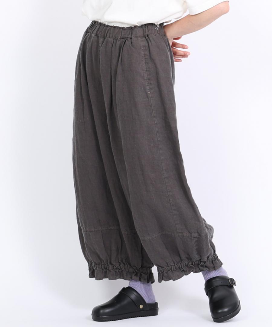 股上深めのワイドでゆったりとした着心地とウエストはゴム仕様で締め付け感がなく、ストレスフリーな履き心地です。