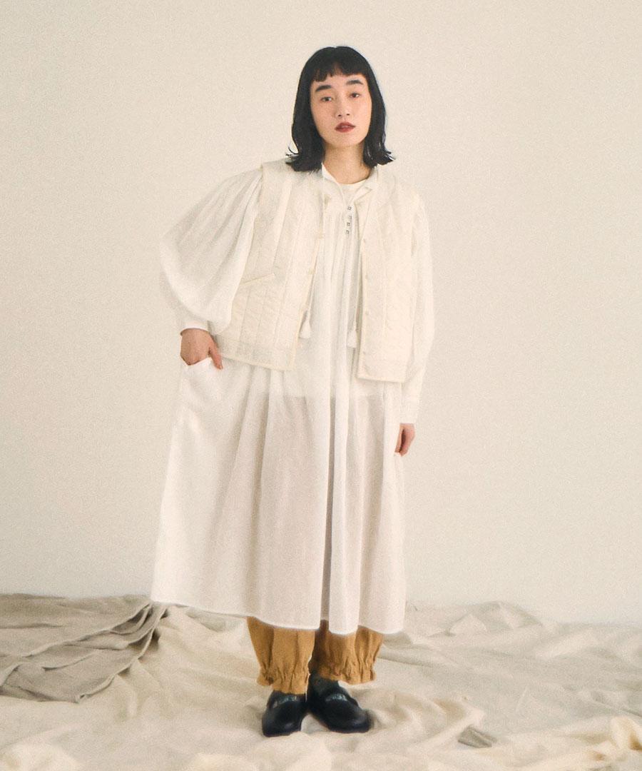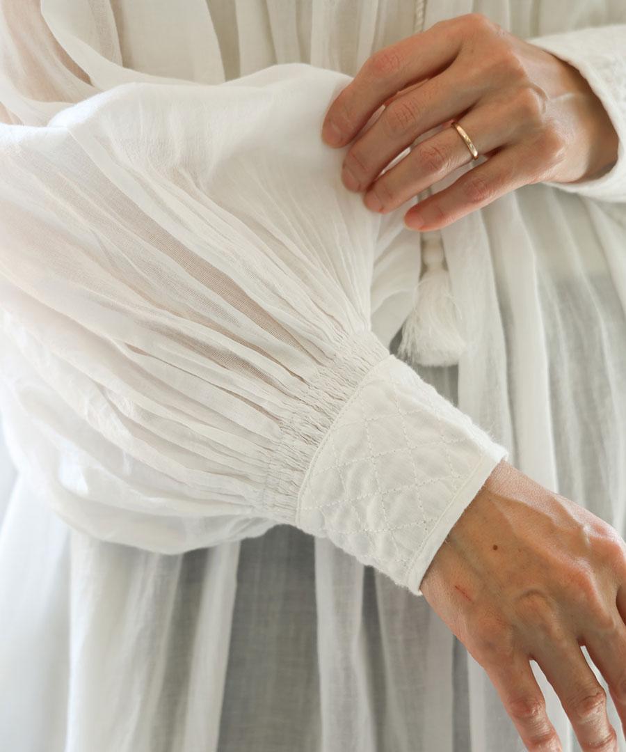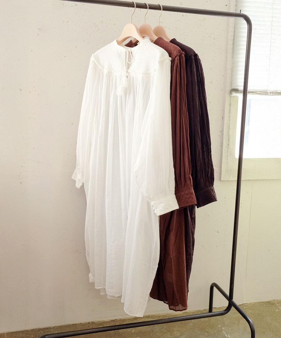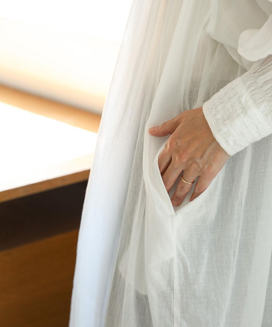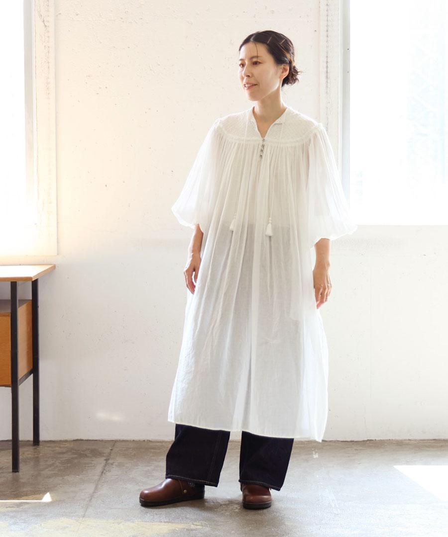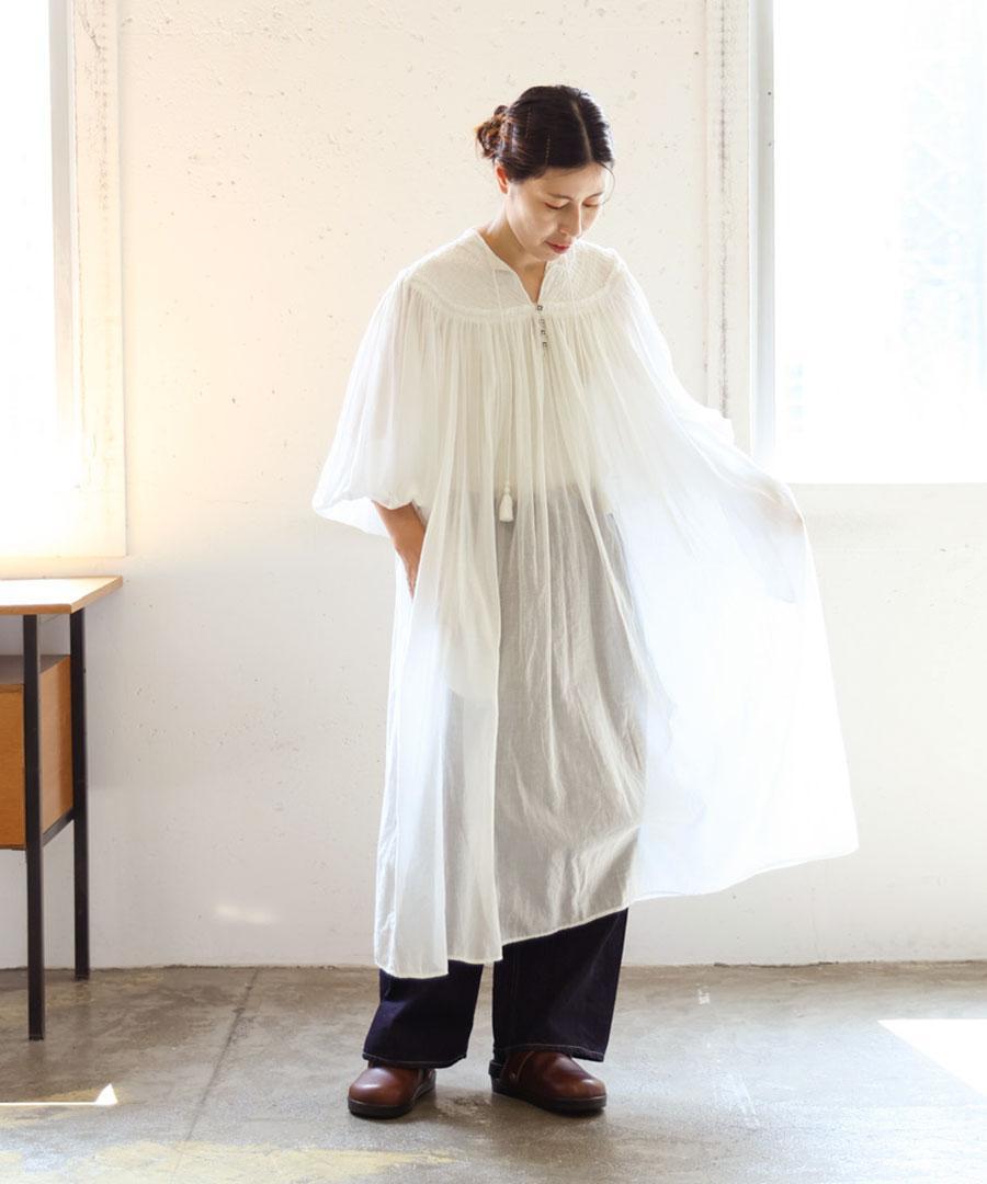 上質なインド製カディコットンを贅沢に使用した、ボリュームたっぷりのワンピース。
