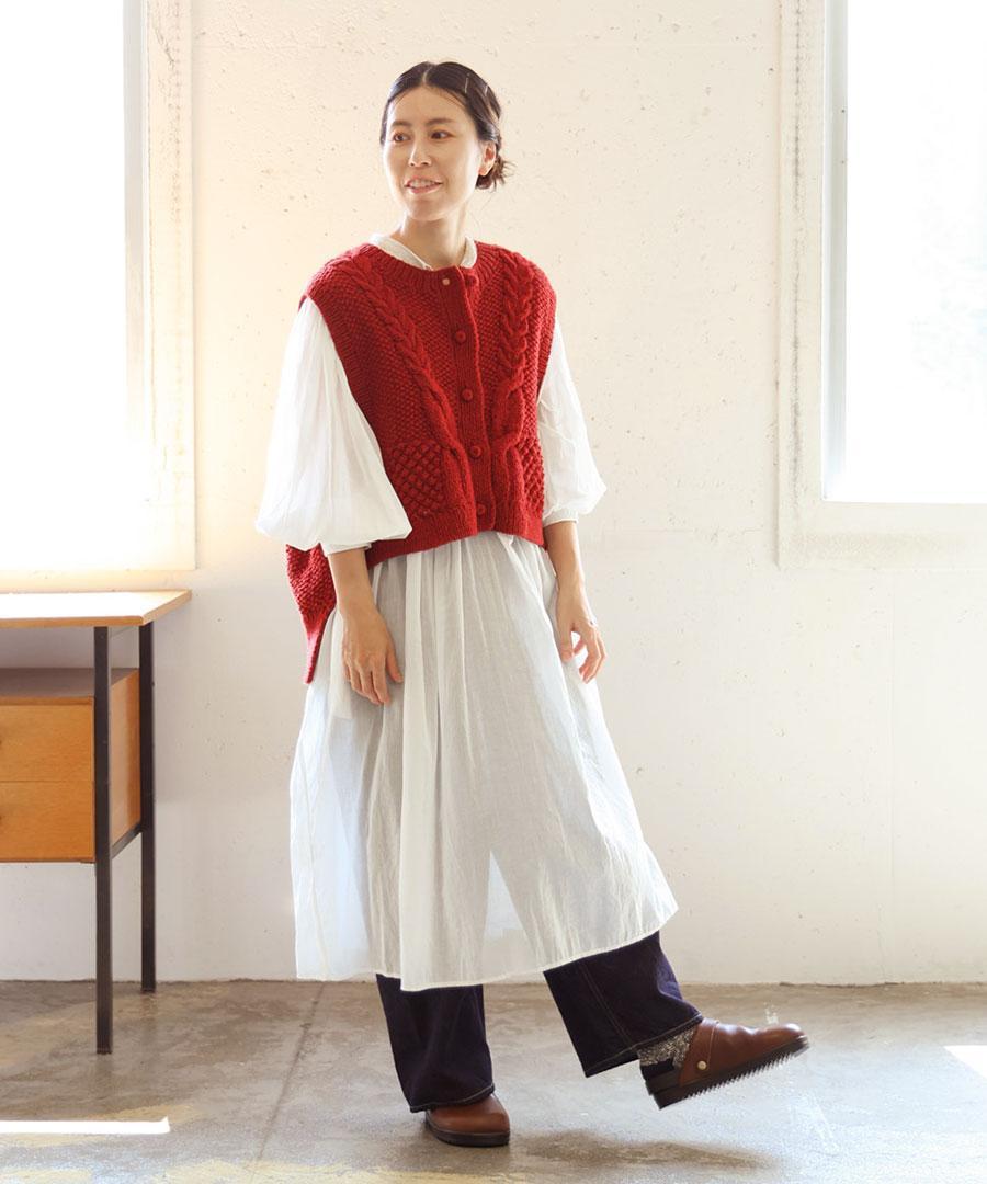 ロービングウールケーブルニット ベスト