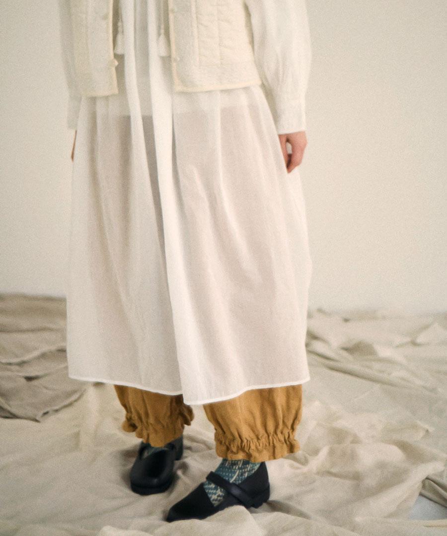 細やかに入れたギャザーからふんわり広がるエアリーなシルエットが魅力です。