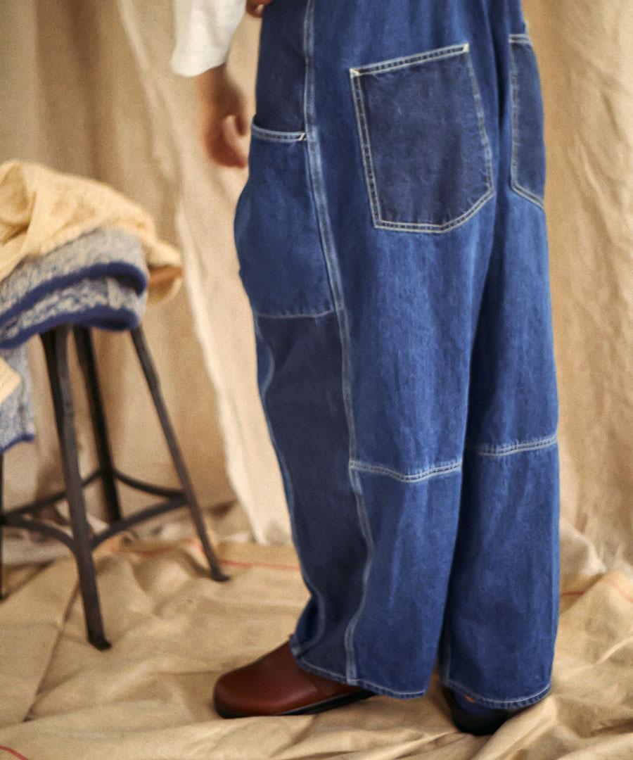 キナリヘリンボンオックス/10ozデニム サロペット