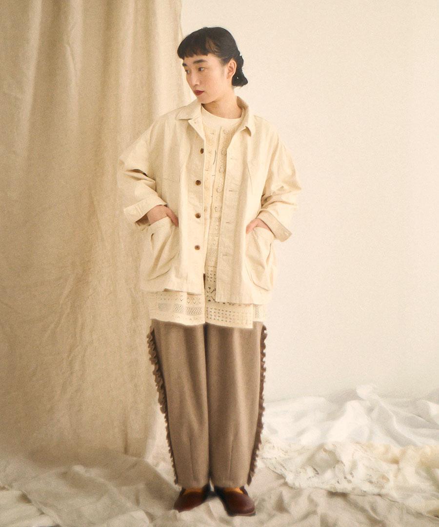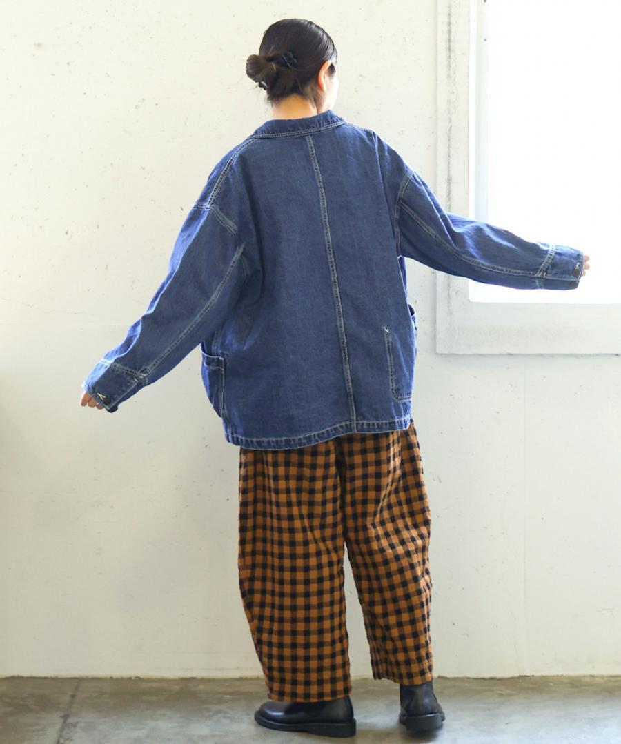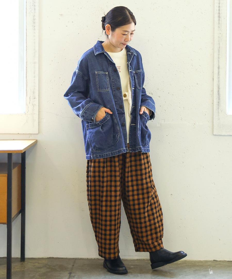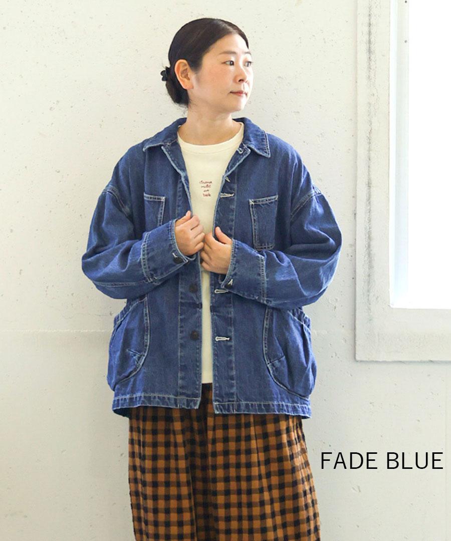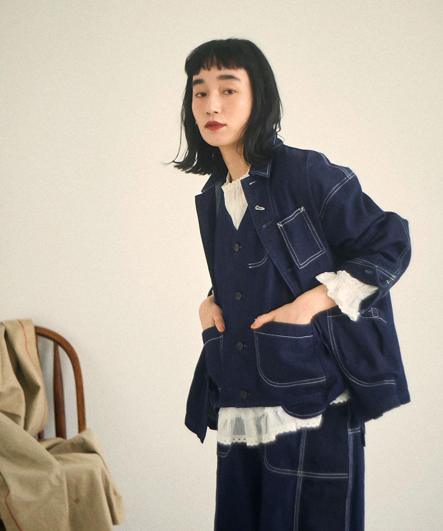 ・INDIGO / FADE BLUEカラーは、程よい厚みの10オンスデニム生地を使用。コントラストの効いた白いステッチを随所に施し、ワークウェア特有のタフさとデザイン性を両立。丈夫で着るほどに馴染み、経年変化も楽しめます。