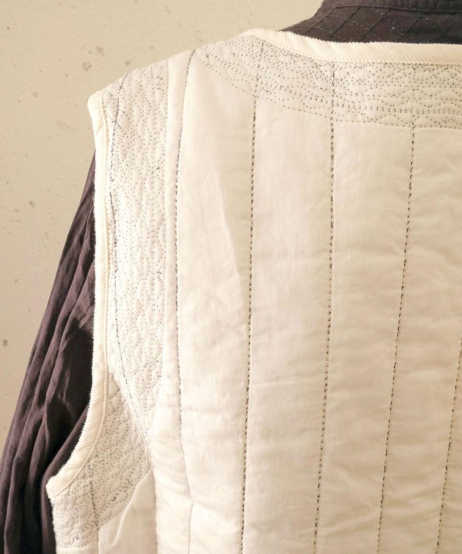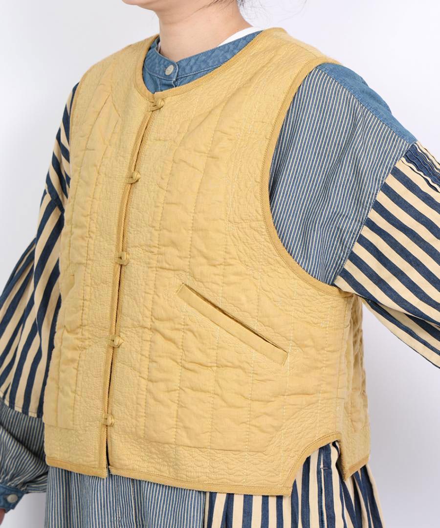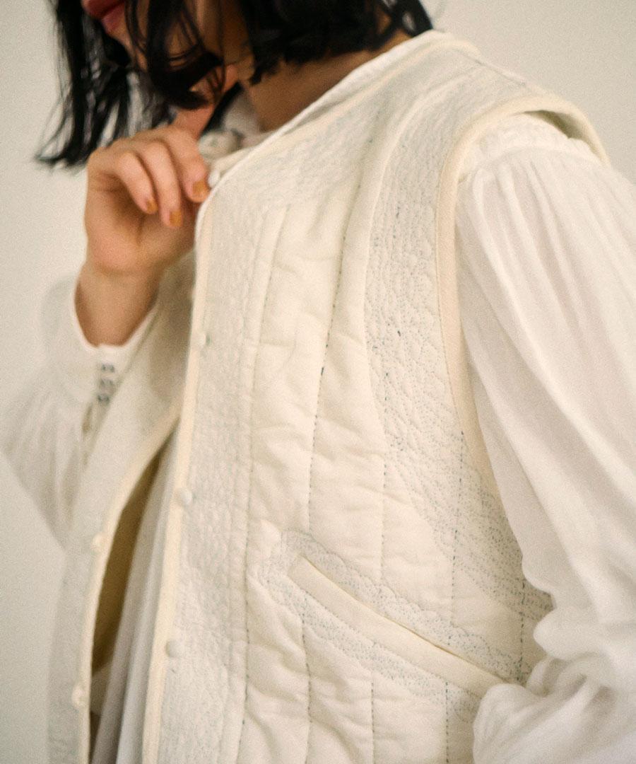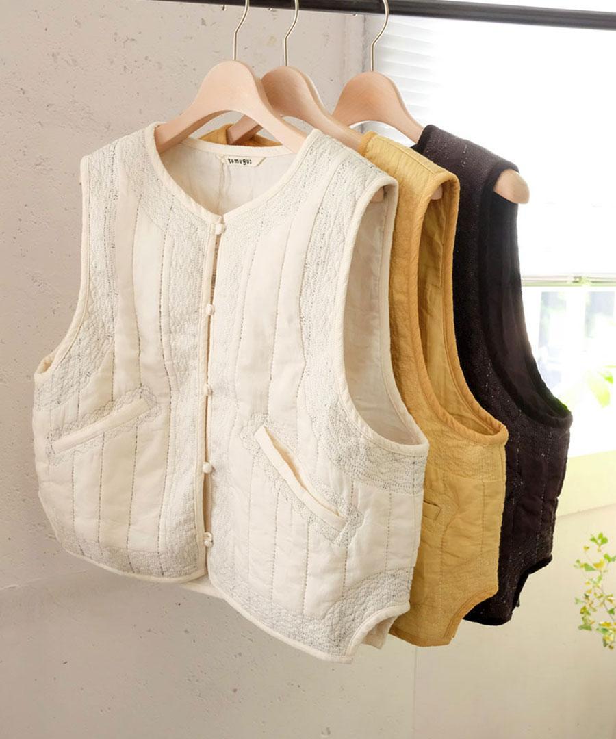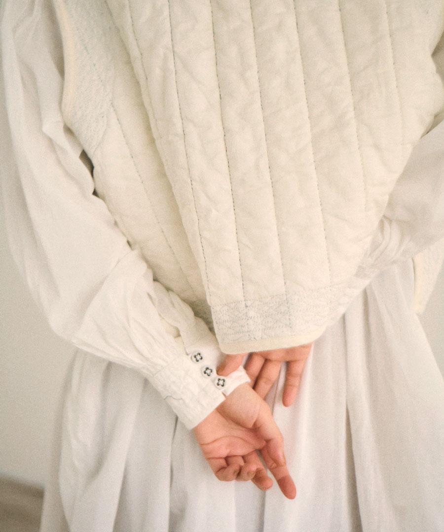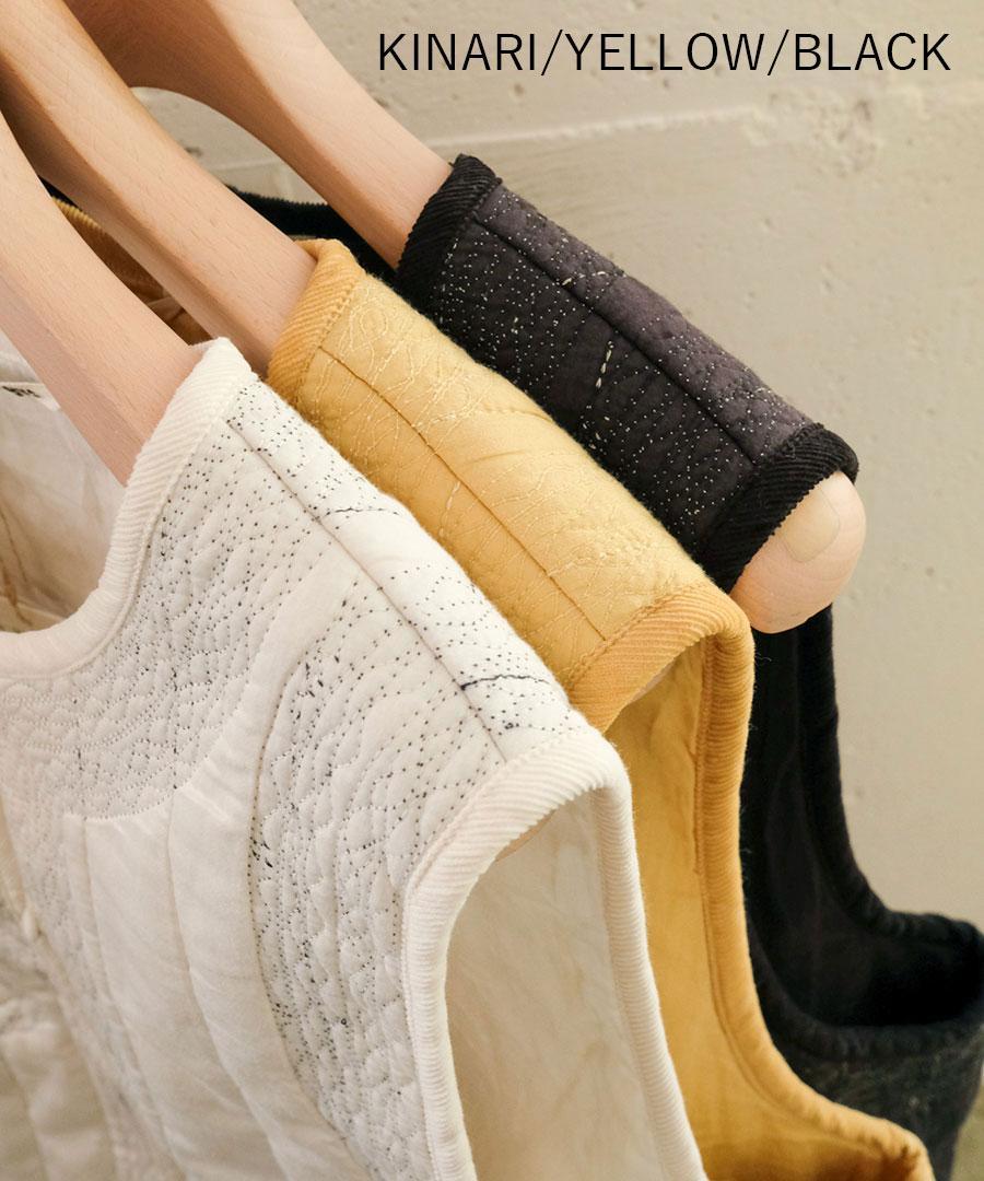 中綿入りのキルティング仕様で軽量ながらも暖かく、季節の変わり目のライトアウターとして役立ちます。