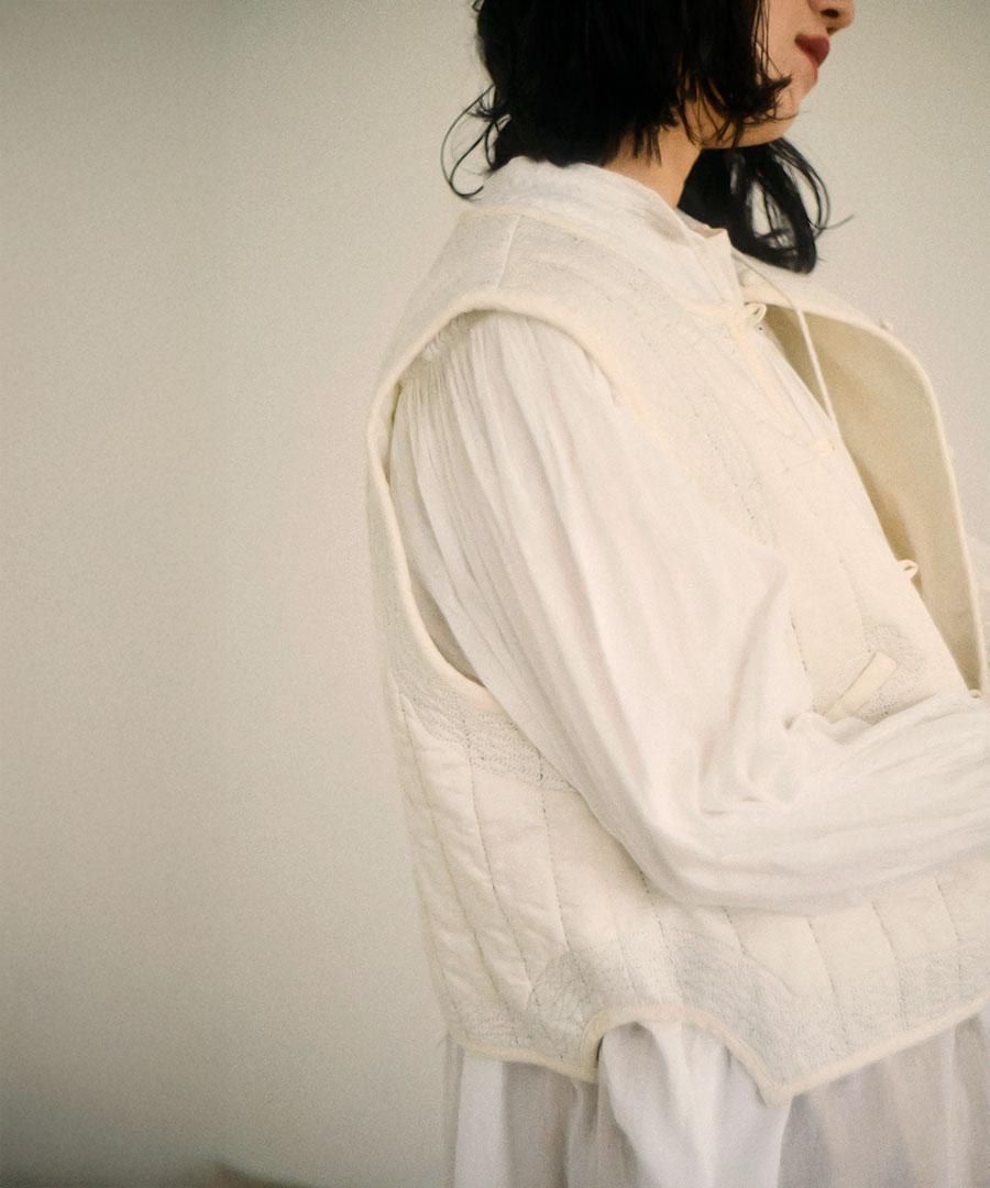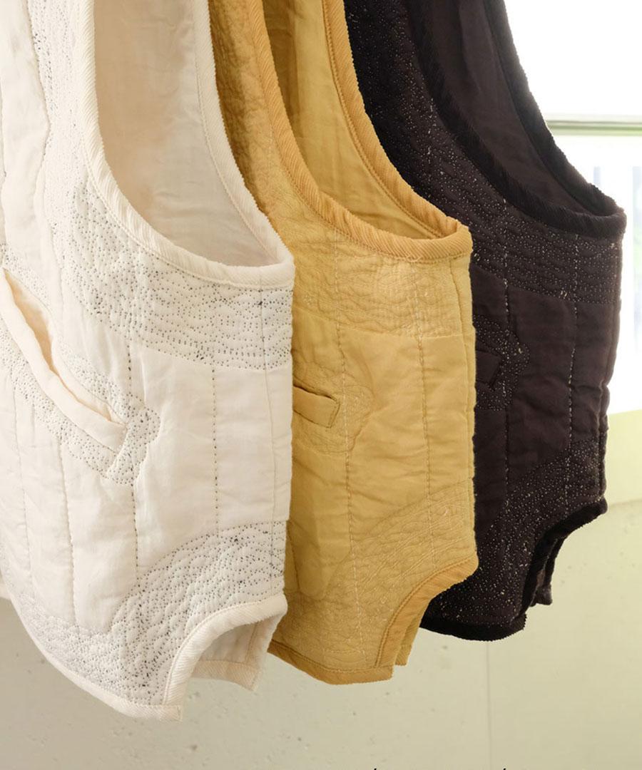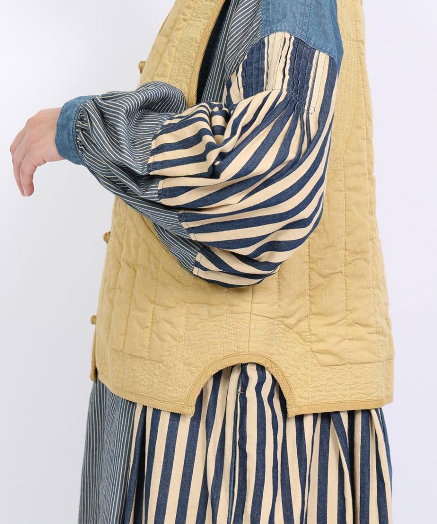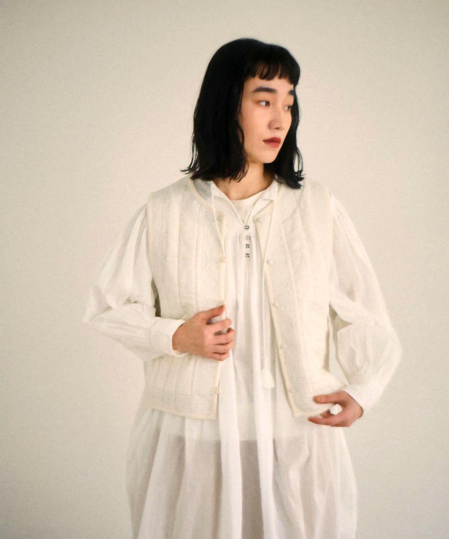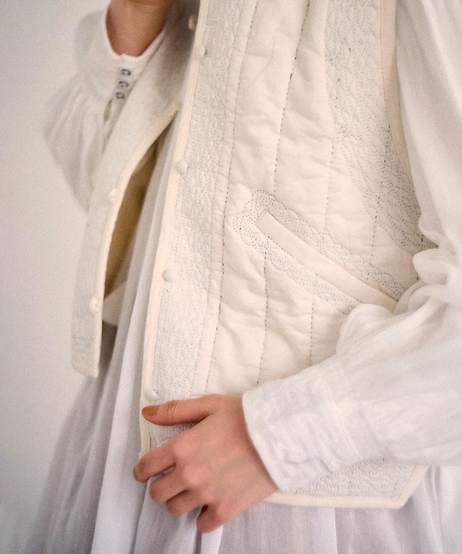 中綿入りのキルティング仕様で軽量ながらも暖かく、季節の変わり目のライトアウターとして役立ちます。