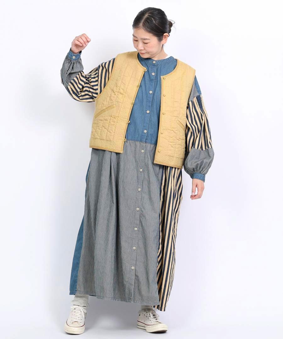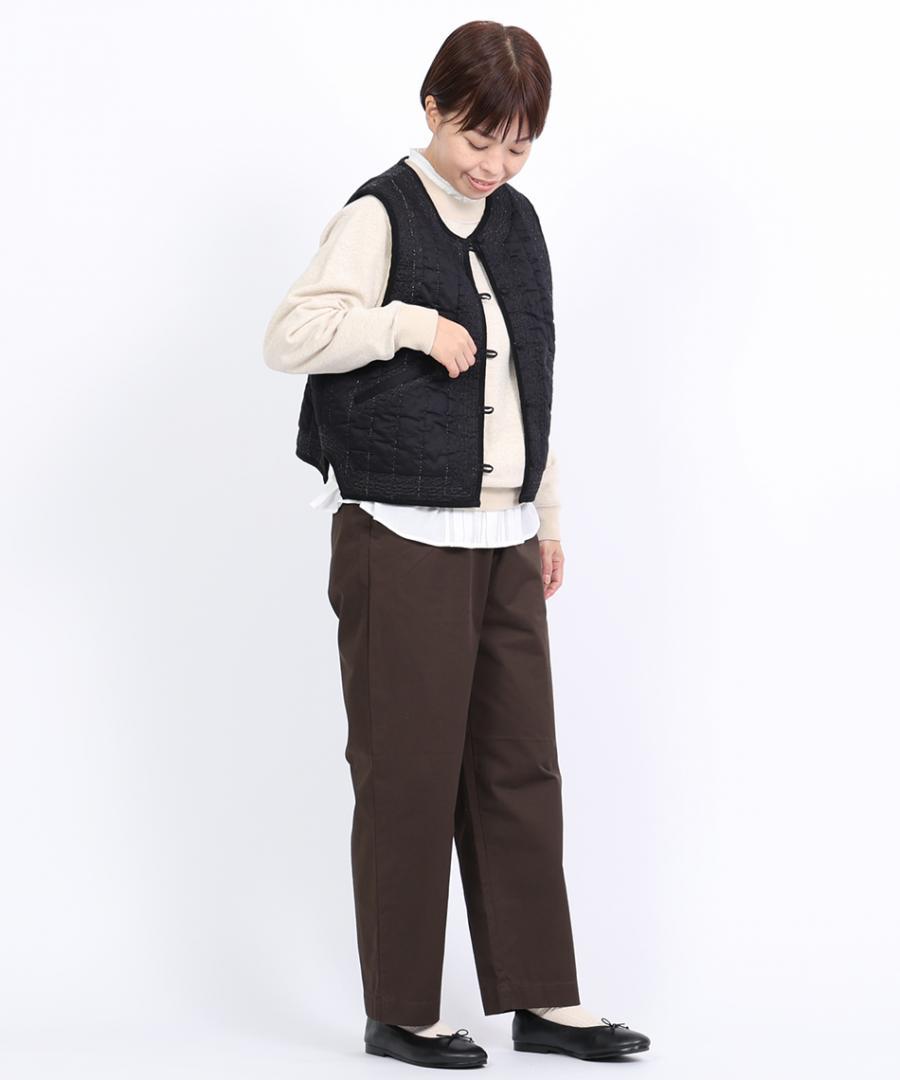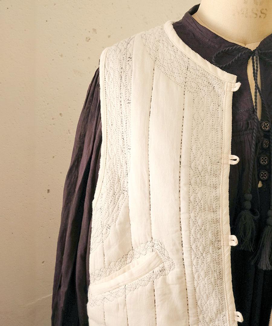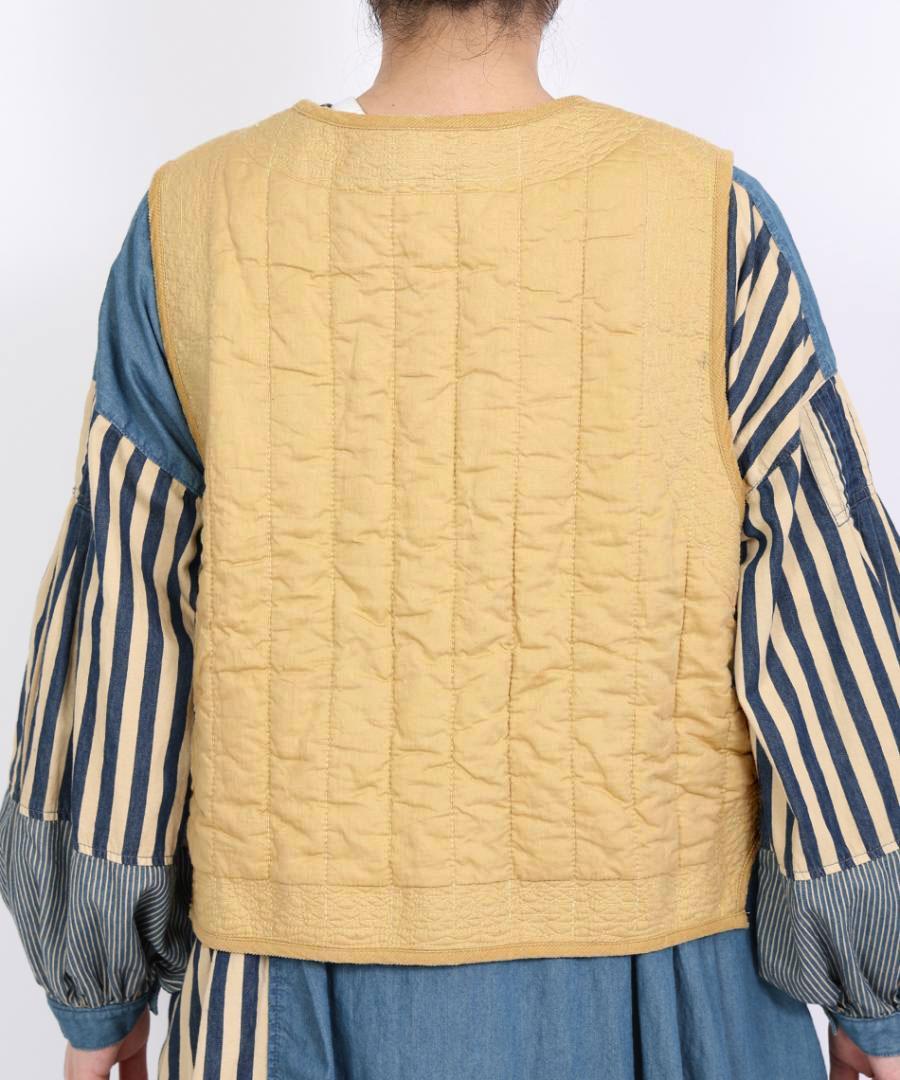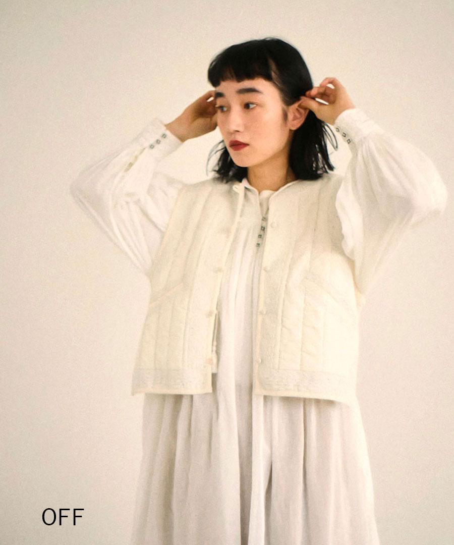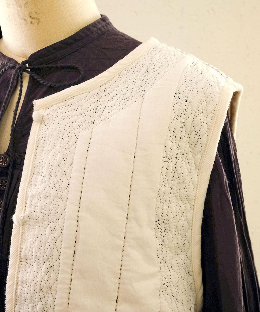 中綿入りのキルティング仕様で軽量ながらも暖かく、季節の変わり目のライトアウターとして役立ちます。