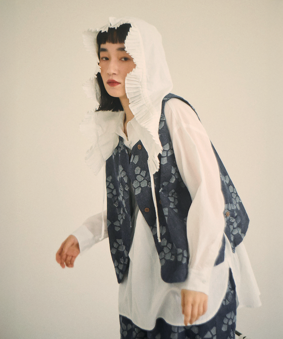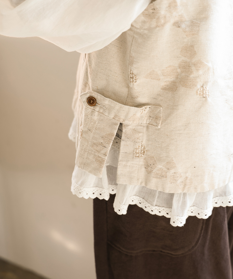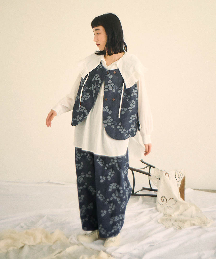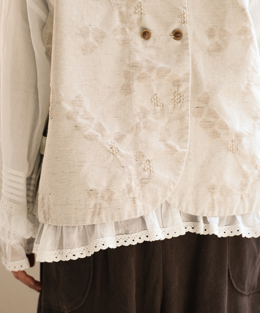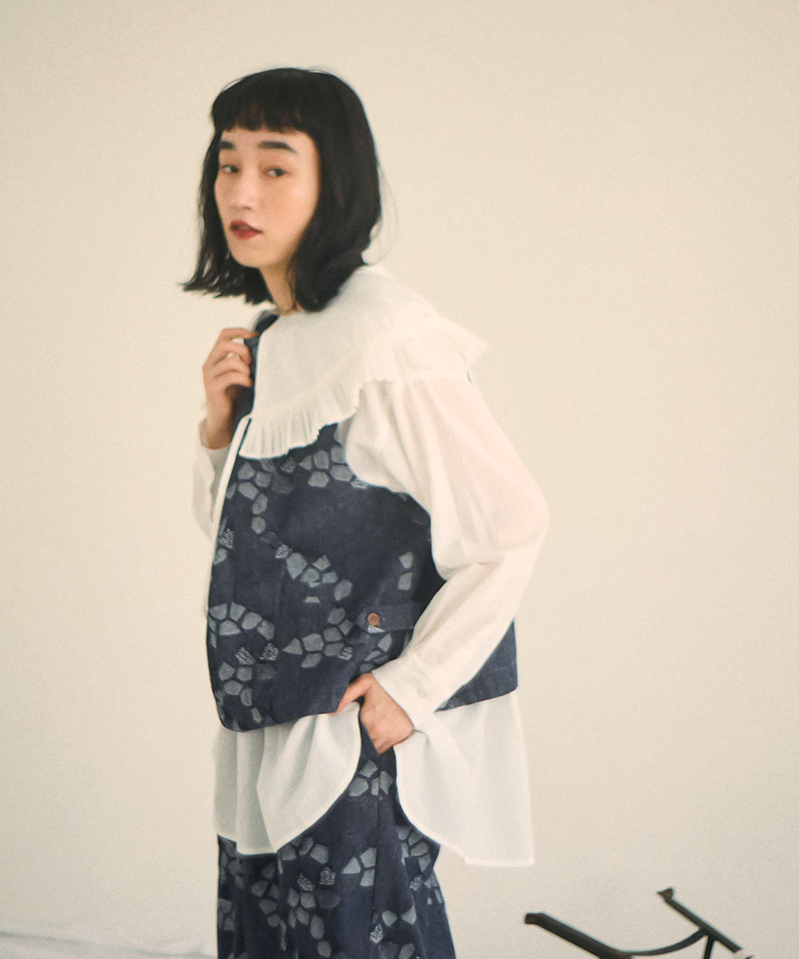 3種の織り柄を組み合わせ、ジャガード織りで幾何学柄を表現したデザインベスト。